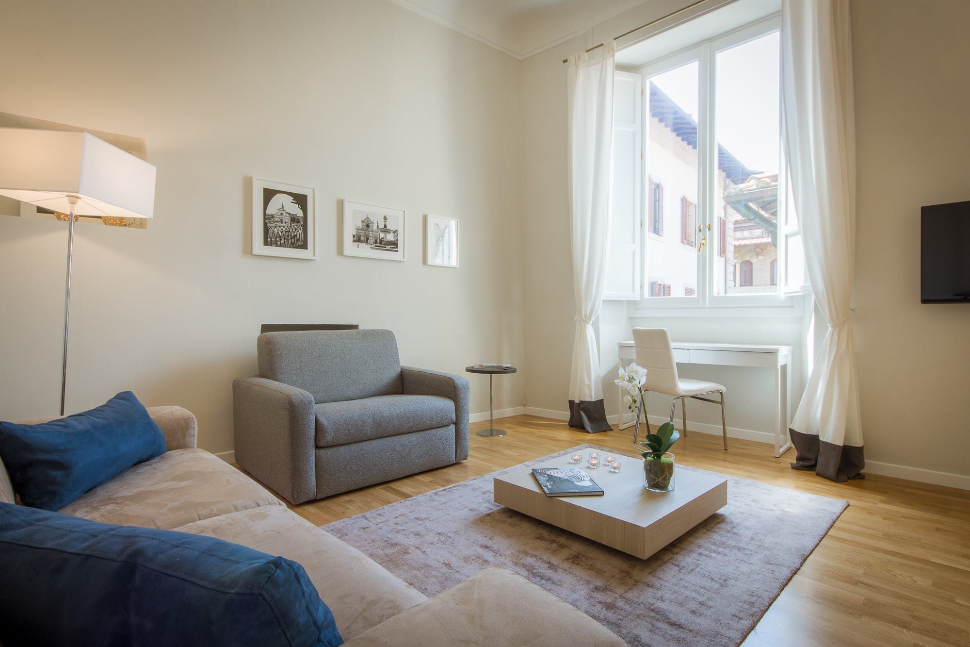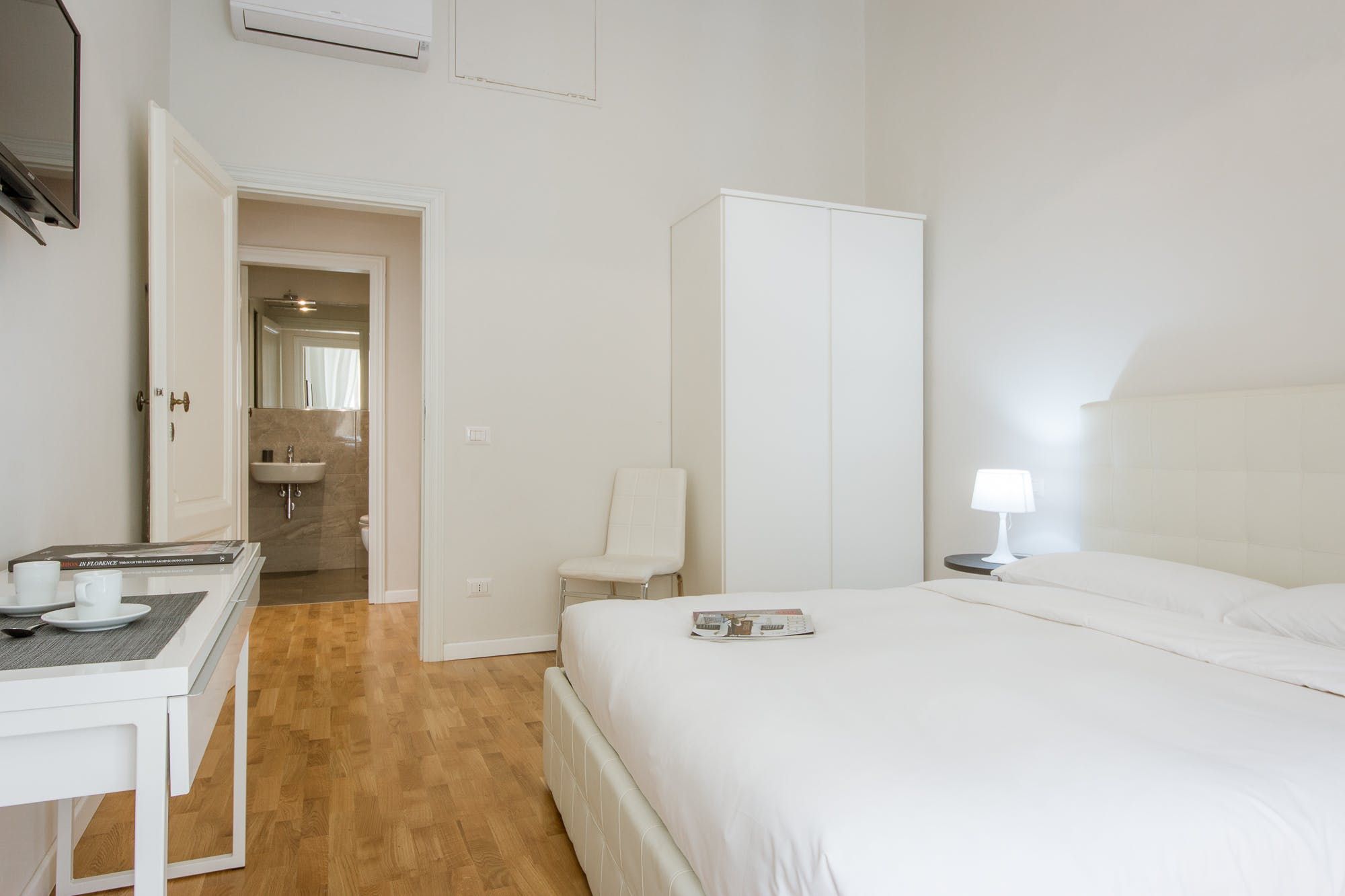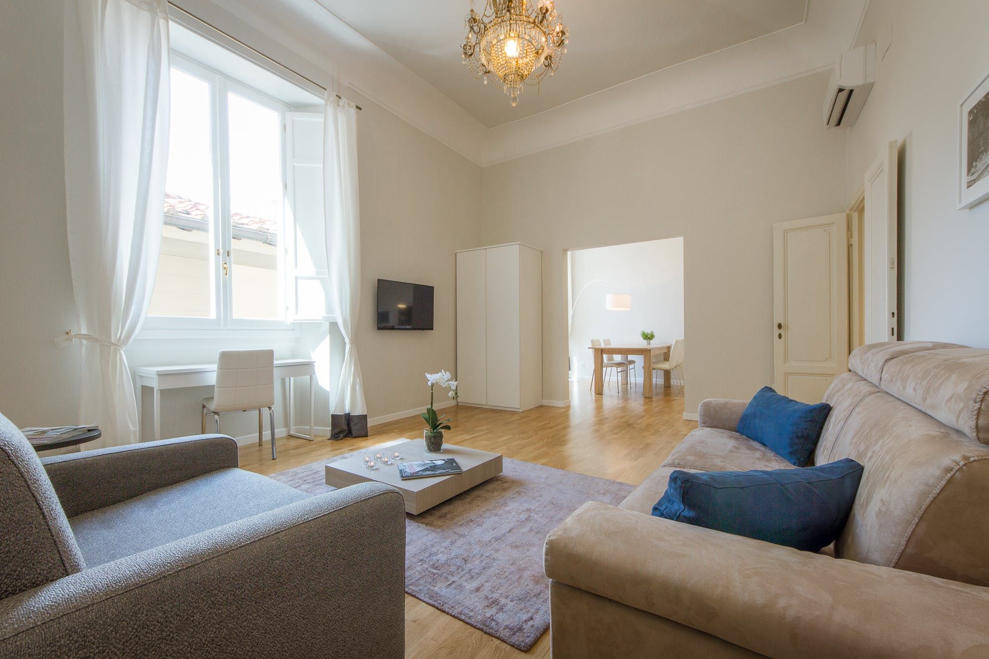 What this light-filled apartment lacks in character more than makes up for with location. Set in a prestigious building along Piazza della Repubblica, you're just steps from the Duomo, Uffizi Gallery, and Ponte Vecchio. It's worth noting that while the living room with lofty high ceilings is spacious, it needs to be as the last three guests will be sleeping on a single and double sofa bed here. The kitchenette could do with some more prepping space, too. But there's plenty of room to spill out around the dining table for breakfasts of flaky cornettos picked up from the nearby pasticceria.