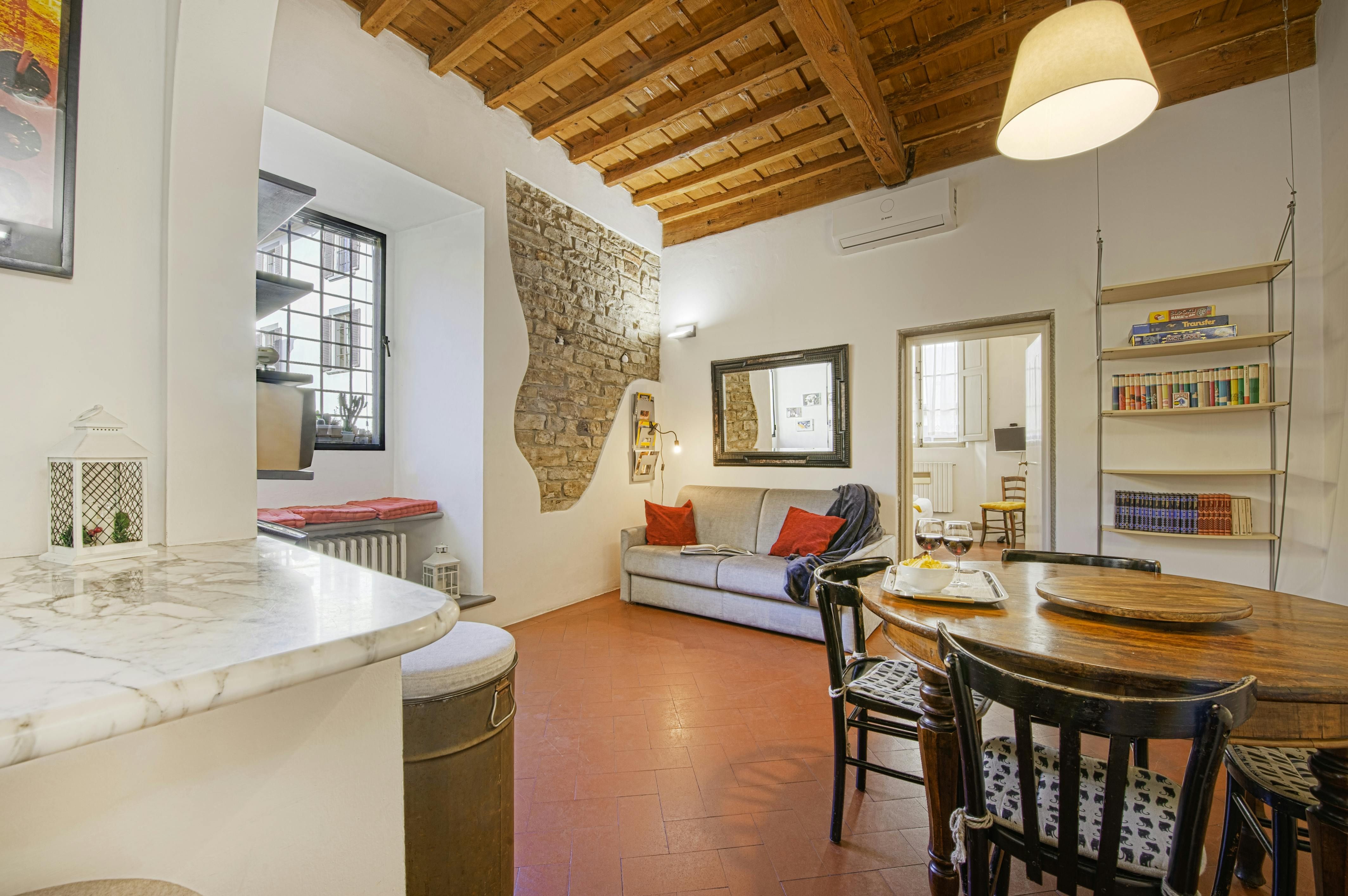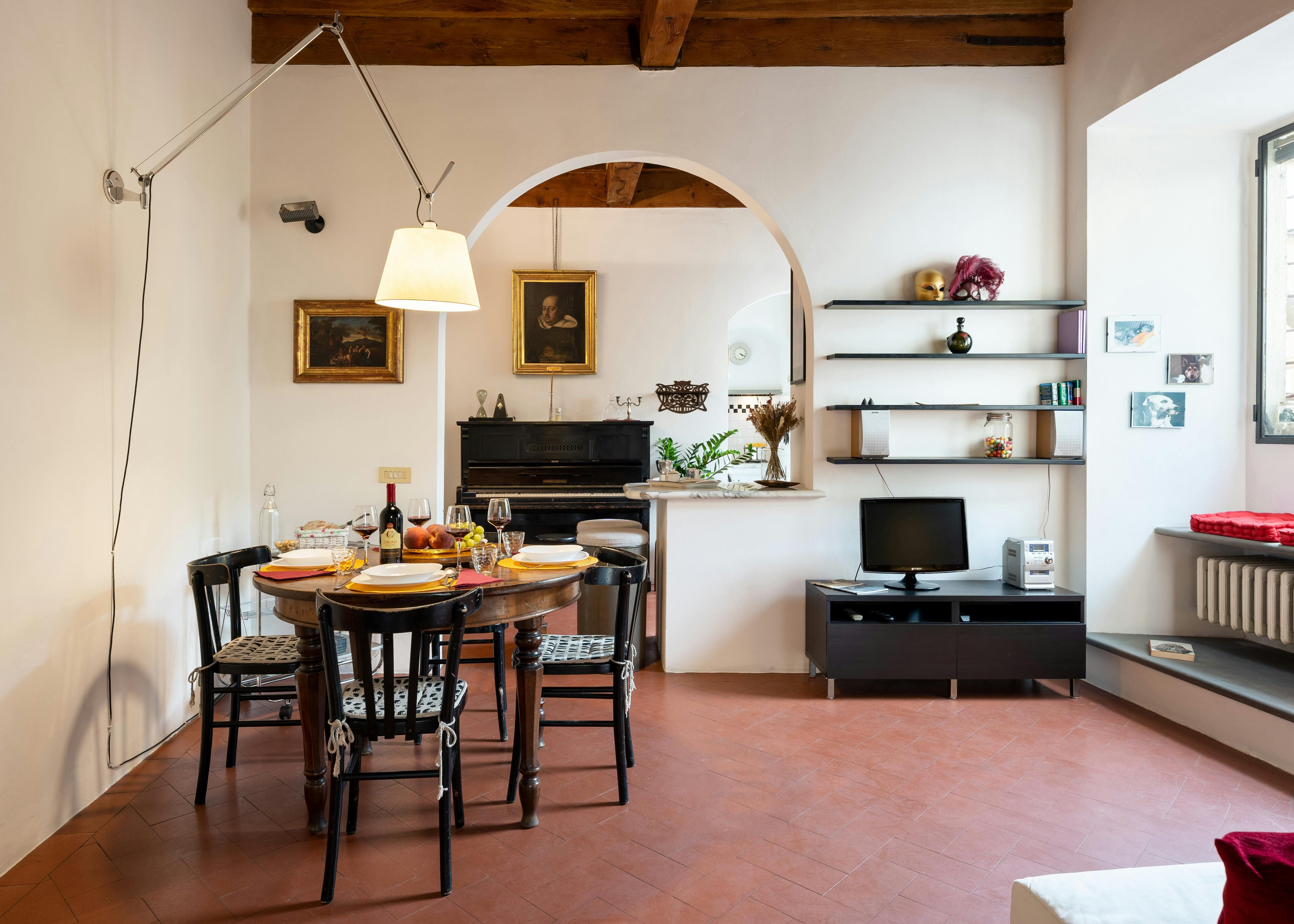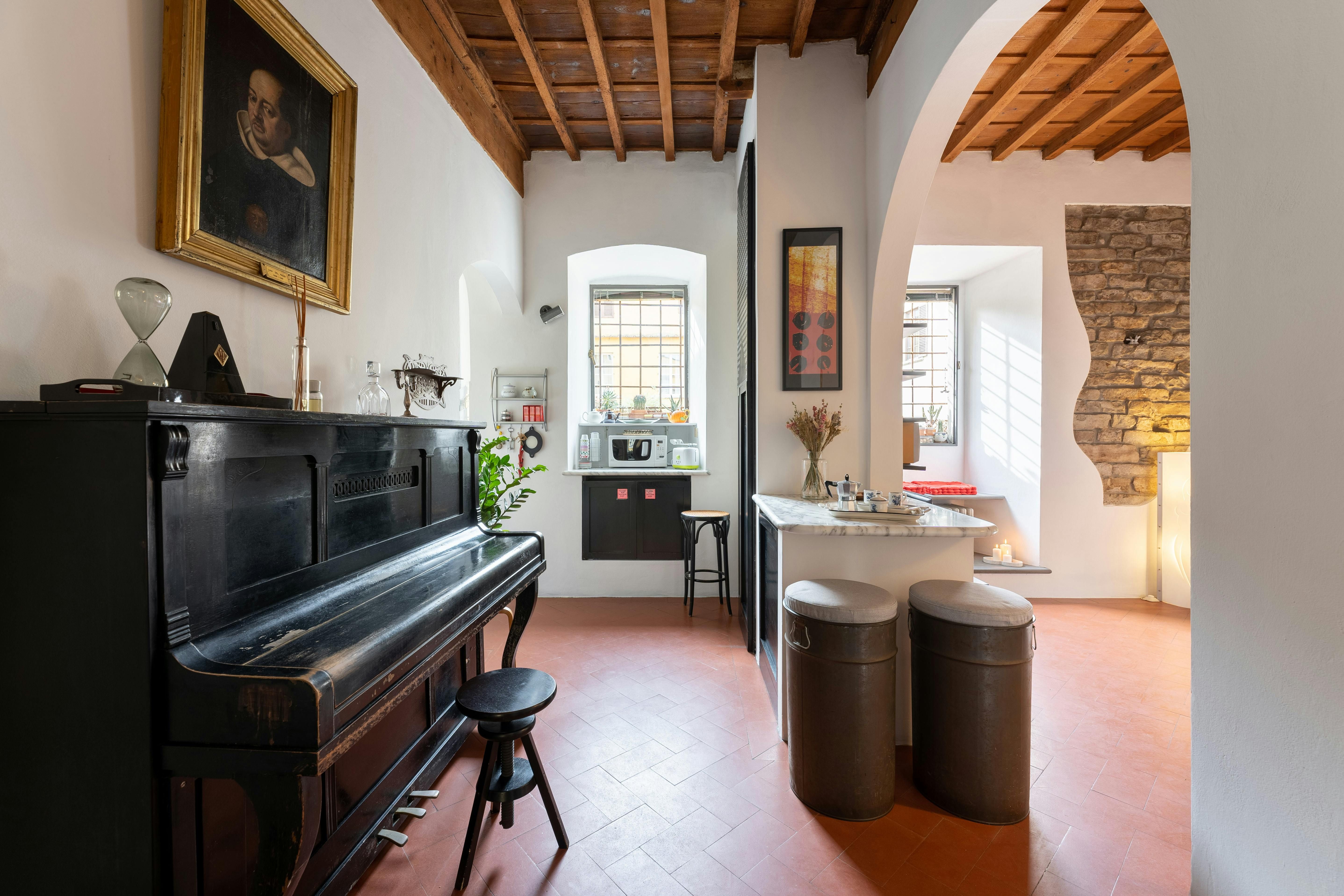 Character, charm and a fantastic location – this apartment welcomes you to enjoy it all from the heart of Florence. There are a few steps to climb to reach the entrance but once inside you’ll find it easy to settle in and unwind. There’s a piano for music lovers and a desk for remote workers. If you’re travelling as a group of five, it’s worth noting two guests will be sleeping on the sofa bed but this is a handy option for families travelling with kids. Outside, it’s just a short stroll to Via Tornabuoni, Piazza Santa Trinita and the Duomo.