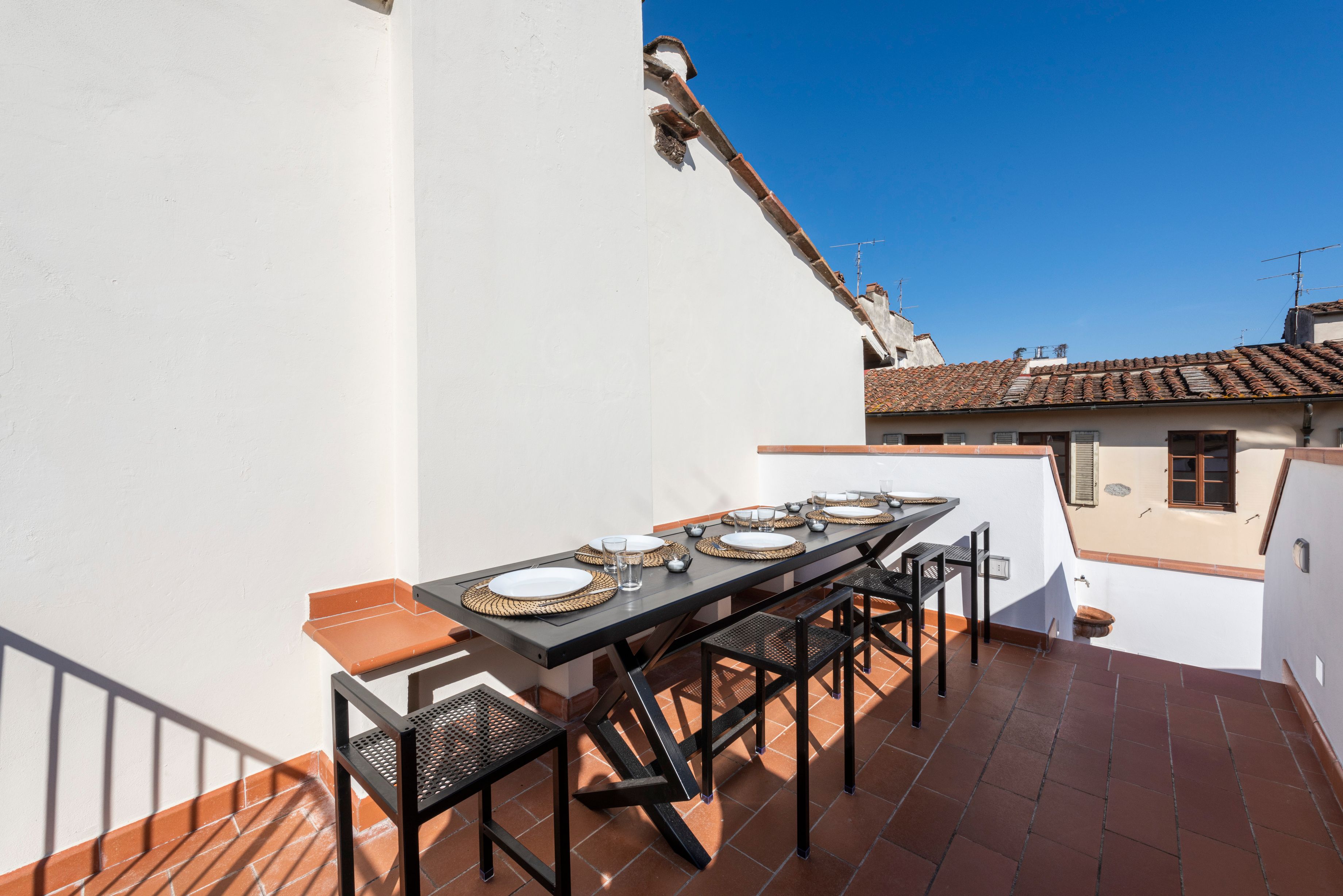 Tucked away on the top floor, this enchanting home in the heart of Florence mixes Italian character with contemporary details. It's about 62 steps to reach it, but once inside, you can relax on the roomy sofas or hideaway in the kitchen to watch your group test their skills at Italian cuisine. Dining alfresco has never been easier with the sunny terrace. If you’d prefer to sample to local cuisine (and who are we kidding), you’re just a two-minute walk away from Piazza Signoria. Most of the city's most famous attractions are within walking distance, including Ponte Vecchio, Basilica of Santa Croce, and Accademia Gallery – which means you are perfectly placed to make a quick stop back home to watch the sunset over the rooftops with a bottle of Tuscan wine.