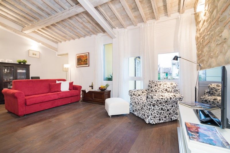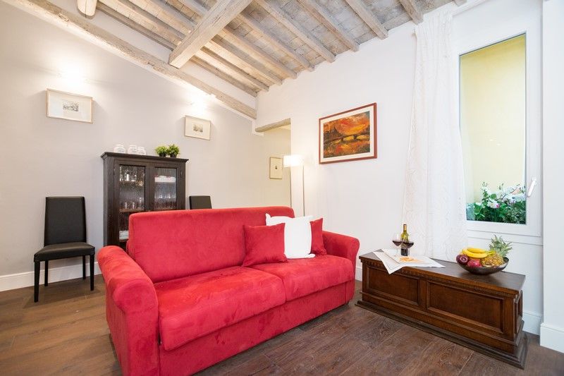 Florentine bliss awaits at this apartment ideal for a long weekend stop in the cradle of the Renaissance. Spotless and cheery with high, natural wooden ceilings the apartment is designed with Tuscan minimalism in mind. The rustic and light vibe of the apartment makes it the perfect respite from the buzzing, baroque streets of Florence. There’s no need for a car or taxi here, as it's ideally located a short walk from the Brunelleschi Dome and the Accademia. After a day out in one of Europe’s most cherished cultural hubs, return home to a feeling of serenity with a touch of the romantic. Curl up on the lipstick-red sofa, or whip something up in the sparkling modern kitchen (stock up at Mercato Centrale, just two blocks away). The touches of antique furniture and exposed stone walls are a reminder you’re staying in a city brimming with art and history.