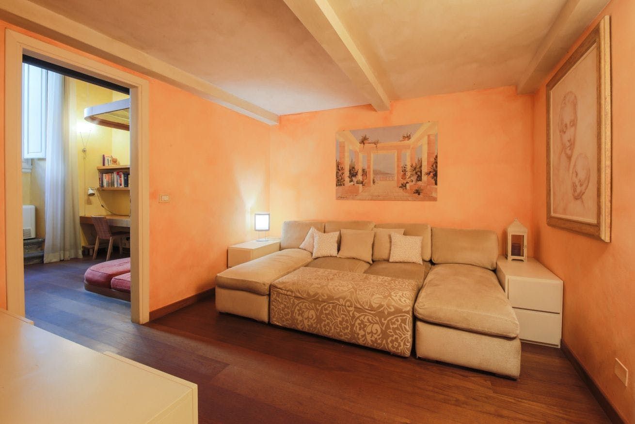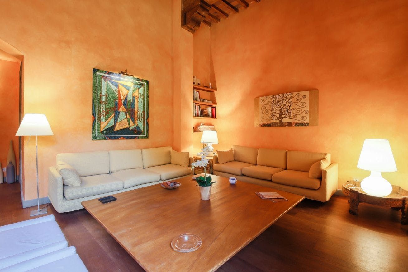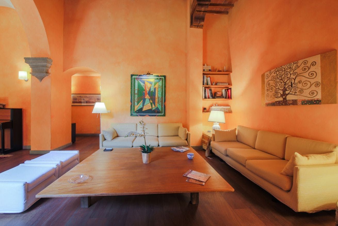 As well as this invitingly cool spot for a dip, guests are also treated to a plant-covered pergola with a table underneath that's sure to be the setting for idyllic alfresco feasts. This outdoor space is a peaceful enclave compared to the busy Florentine streets nearby and is a major perk of the address.