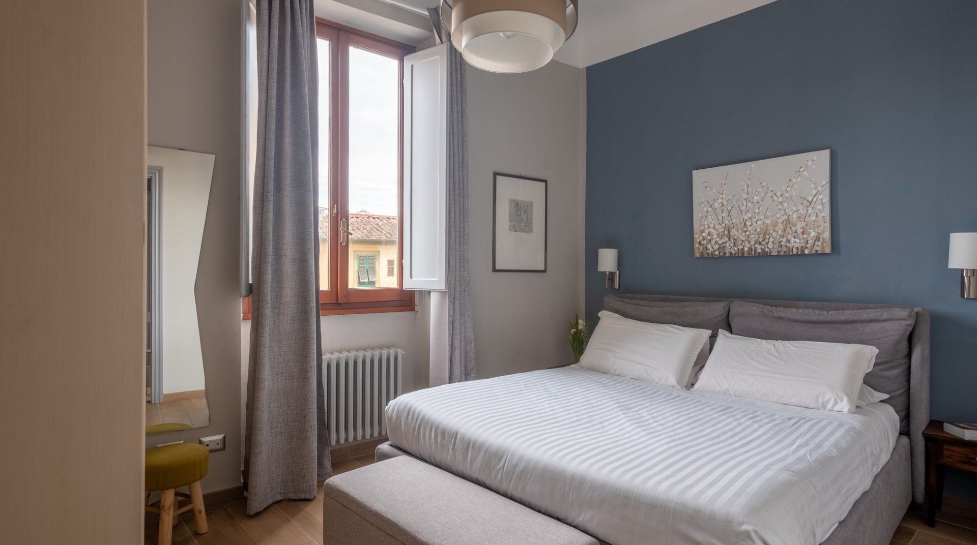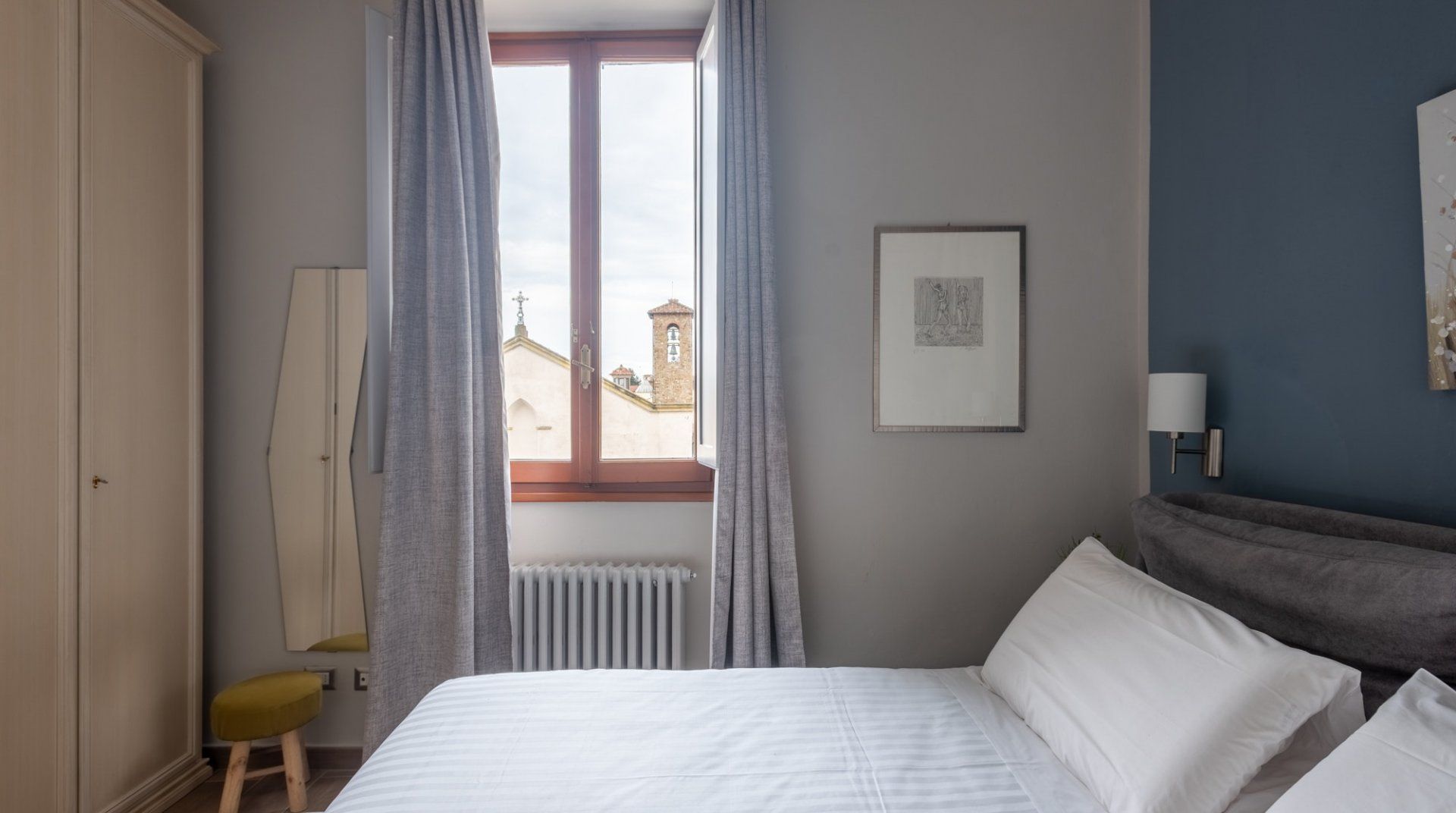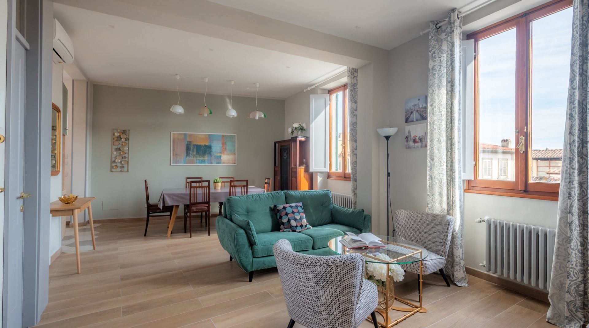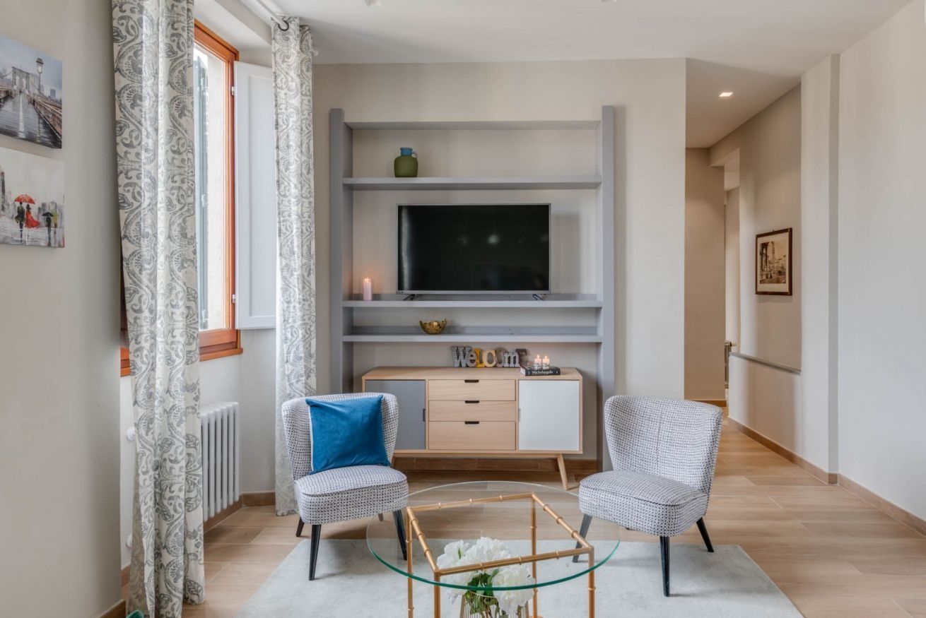 If you're in town to experience the cultural life in Florence, then you won't find a better location than this. You'll have Teatro Verdi and Teatro la Pergola nearby, as well as some of the city's most lauded cafes and restaurants. The design of this apartment is eclectic and modern, with a few older furniture pieces thrown in the mix to create a warm and homey feeling. Even though Ambrosia Square is a full-time rental, it's got a sense of style that takes it above the average home, and we loved the view of the historical square below.