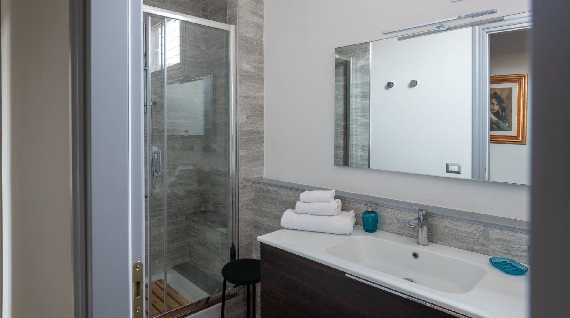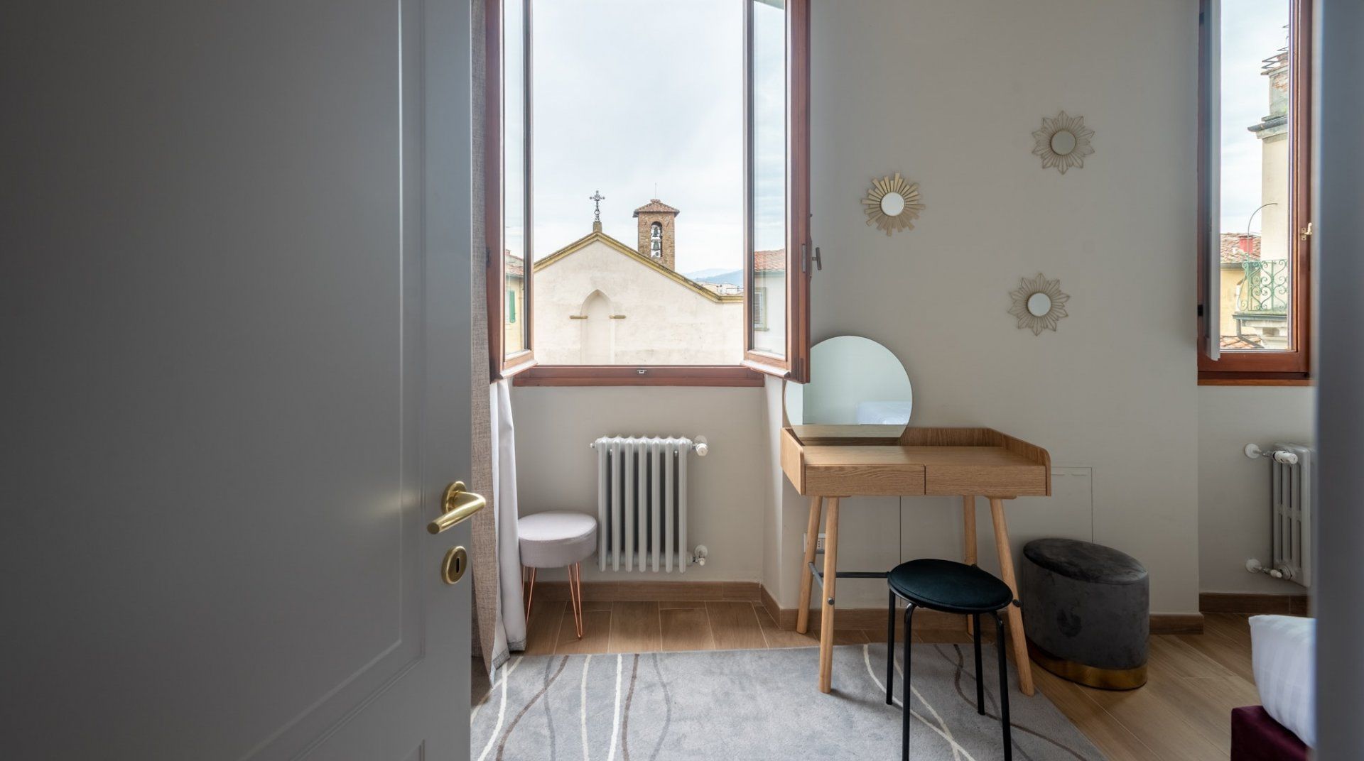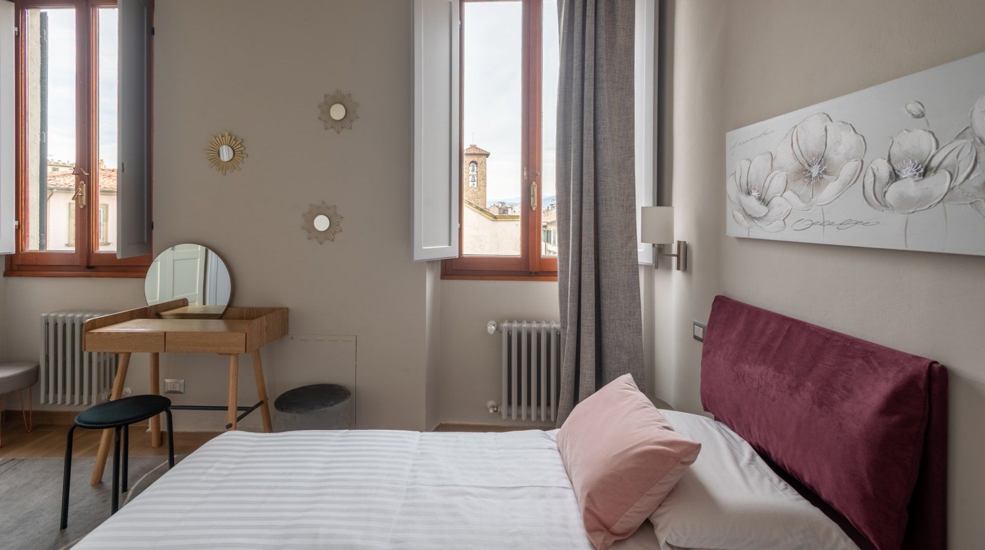 If you're in town to experience the cultural life in Florence, then you won't find a better location than this. You'll have Teatro Verdi and Teatro la Pergola nearby, as well as some of the city's most lauded cafes and restaurants. The design of this apartment is eclectic and modern, with a few older furniture pieces thrown in the mix to create a warm and homey feeling. Even though Ambrosia Square is a full-time rental, it's got a sense of style that takes it above the average home, and we loved the view of the historical square below.