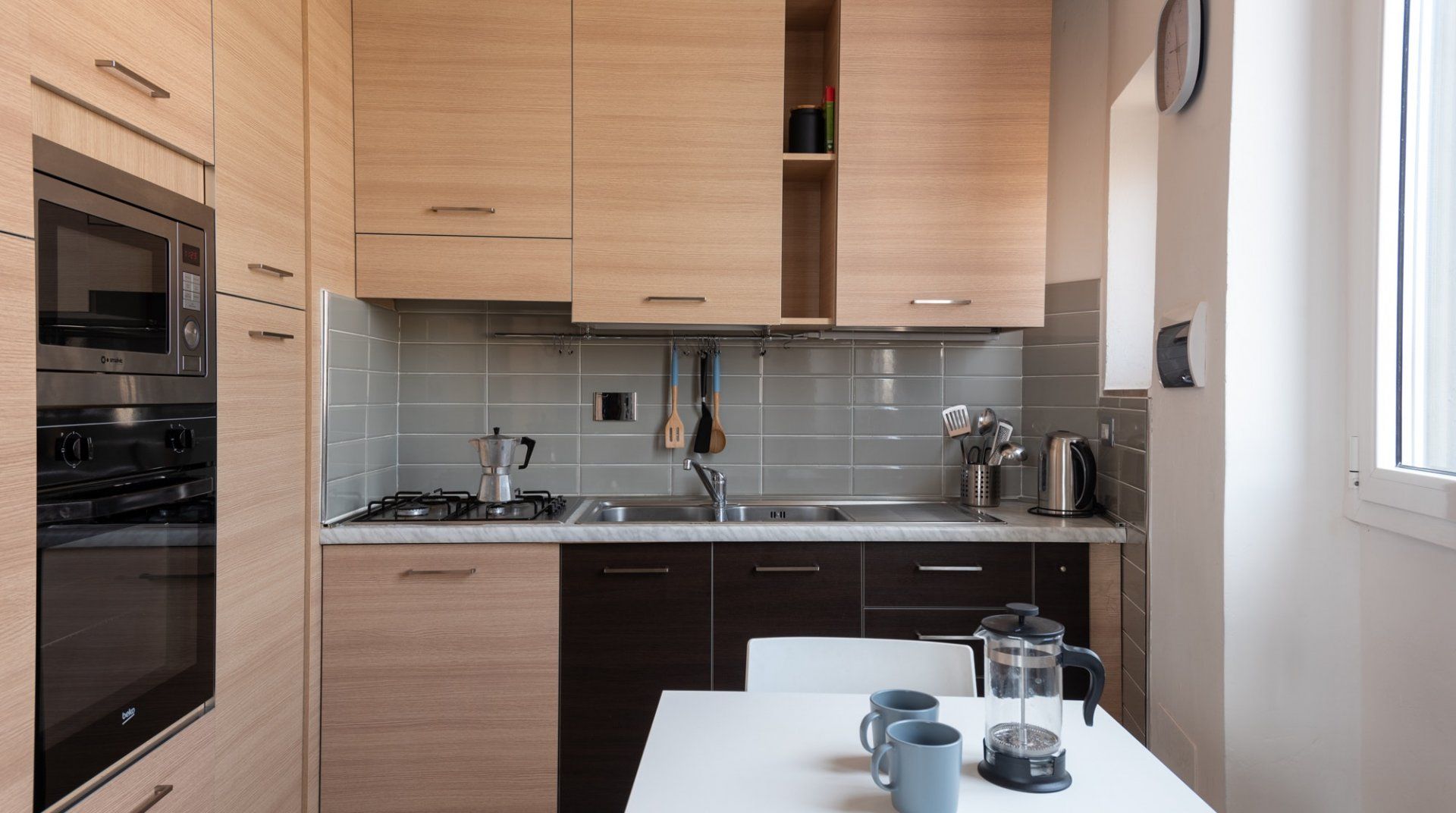 * Although the kitchen is well-equipped with appliances, it doesn't have the basic cooking ingredients