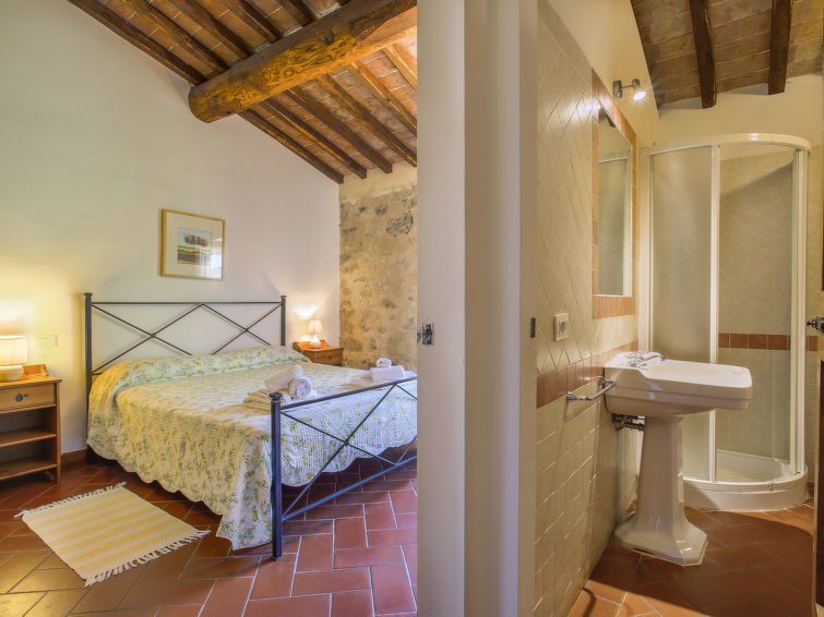 "Le Ginestre", 2-room house 45 m2 on 2 levels, on the ground floor. Tasteful furnishings: living/sleeping room with 1 sofabed (110 cm, length 185 cm), dining table and satellite TV. Open kitchen (Gas stove, 4 gas rings, kettle, microwave). Upper floor: 1 room with 1 french bed (160 cm), shower/bidet/WC.
