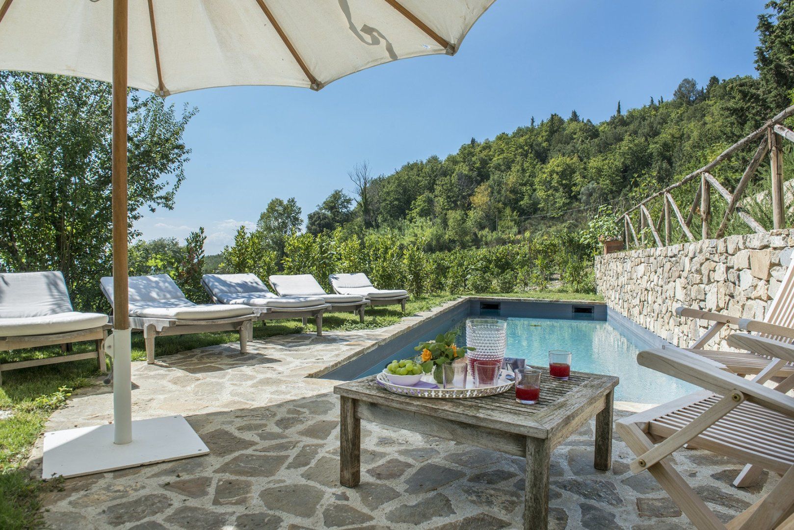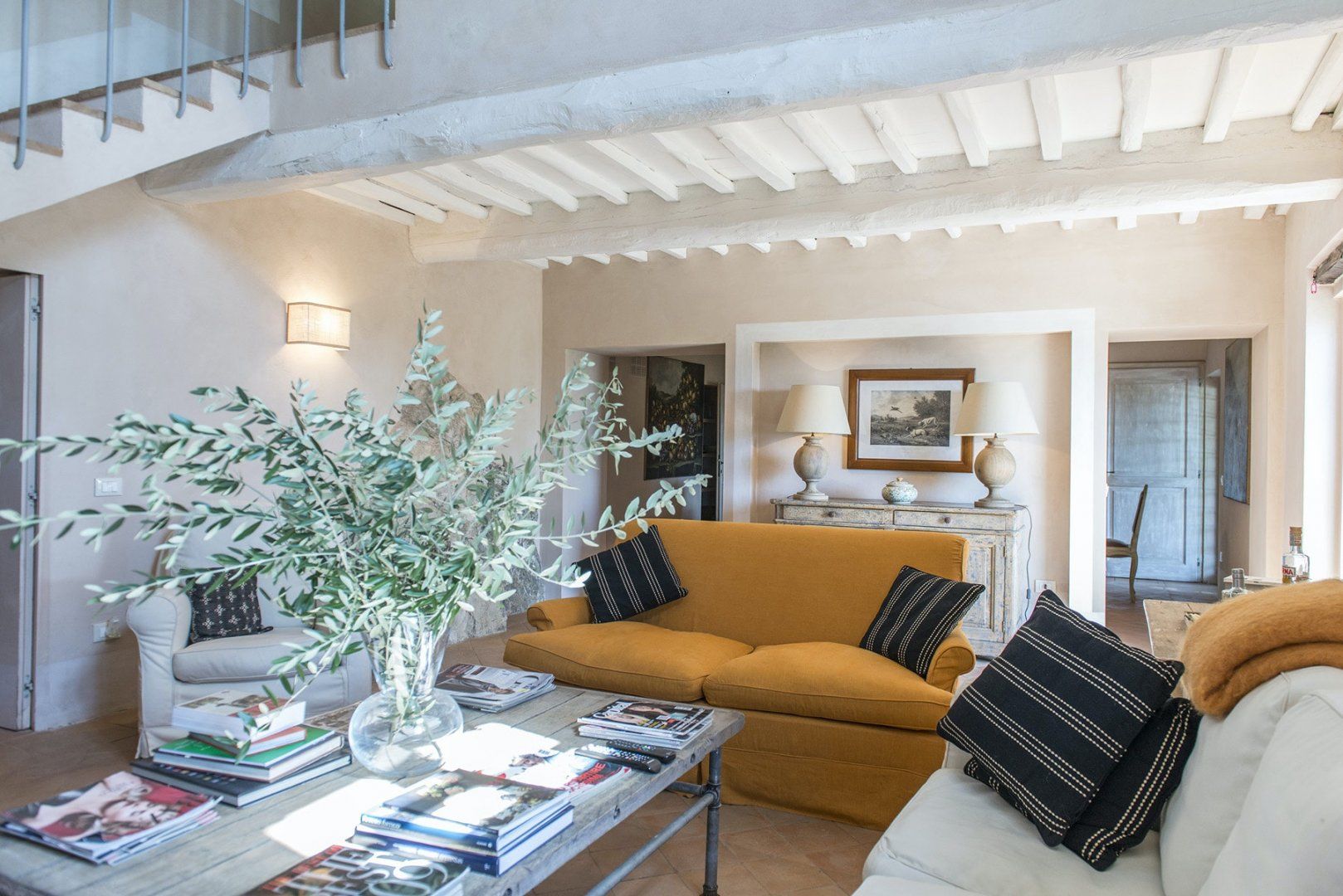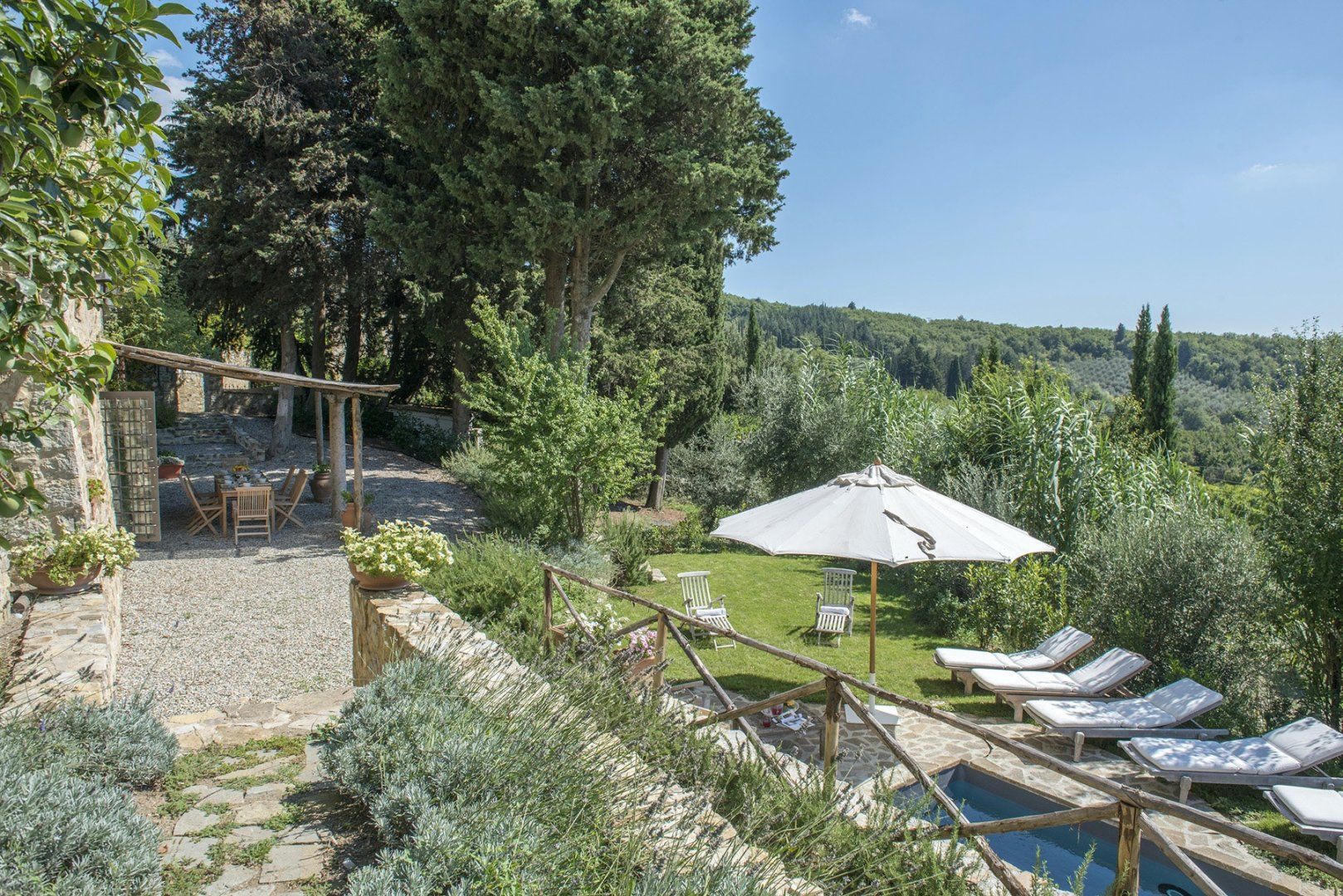 Surrounded by olive trees and vast swathes of vineyards, this Tuscan home in the heart of the Chianti wine region is a haven of rural relaxation. Its exposed stone exterior gives way to a bright interior, where farmhouse simplicity meets elegant design in the living room. With its giant hearth, plump sofas and tiered chandelier, this is the perfect spot for socialising over a glass of wine or curling up by the fire with a good book on cooler nights. With four comfortable bedrooms boasting postcard-like countryside views and a farm-style kitchen full of traditional charm, you’ll have everything you need to make yourself right at home. Head outside to take cool dips in the pool, or sit back in one of the many sun loungers while taking in the spectacular hillside views. Wander around the vineyards, visit Castellina in Chianti (less than ten minutes away by car), then come back home for a barbecue under the pergola paired, naturally, with a glass of Chianti.