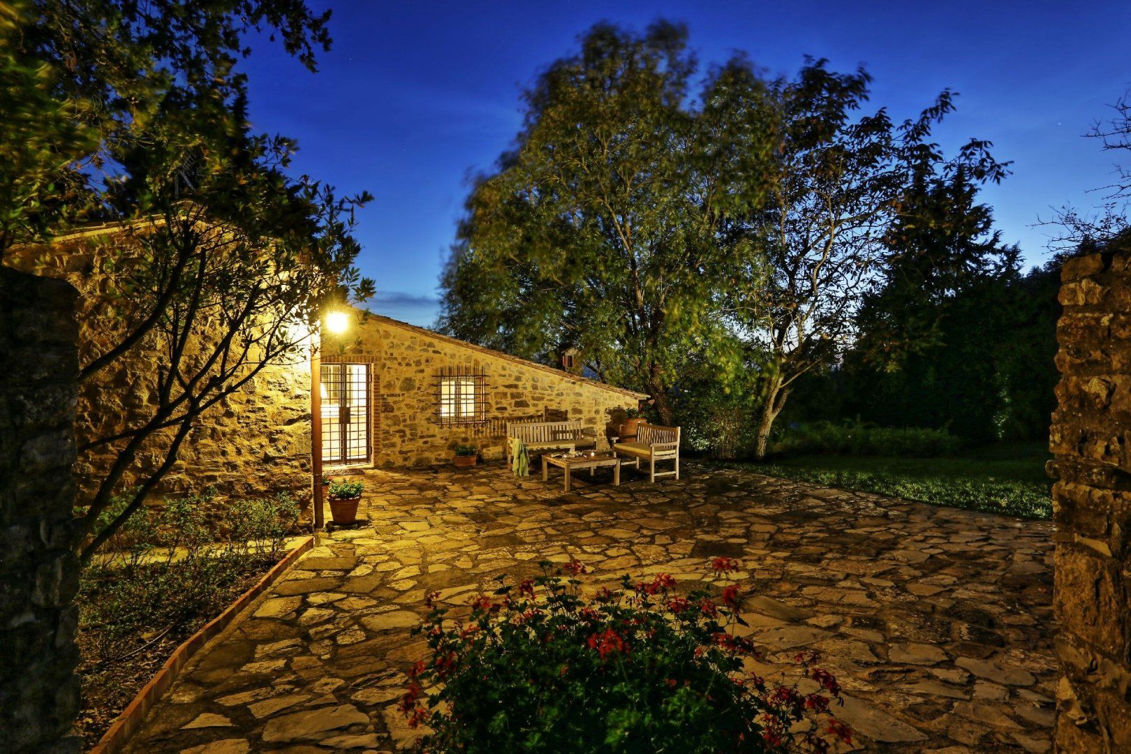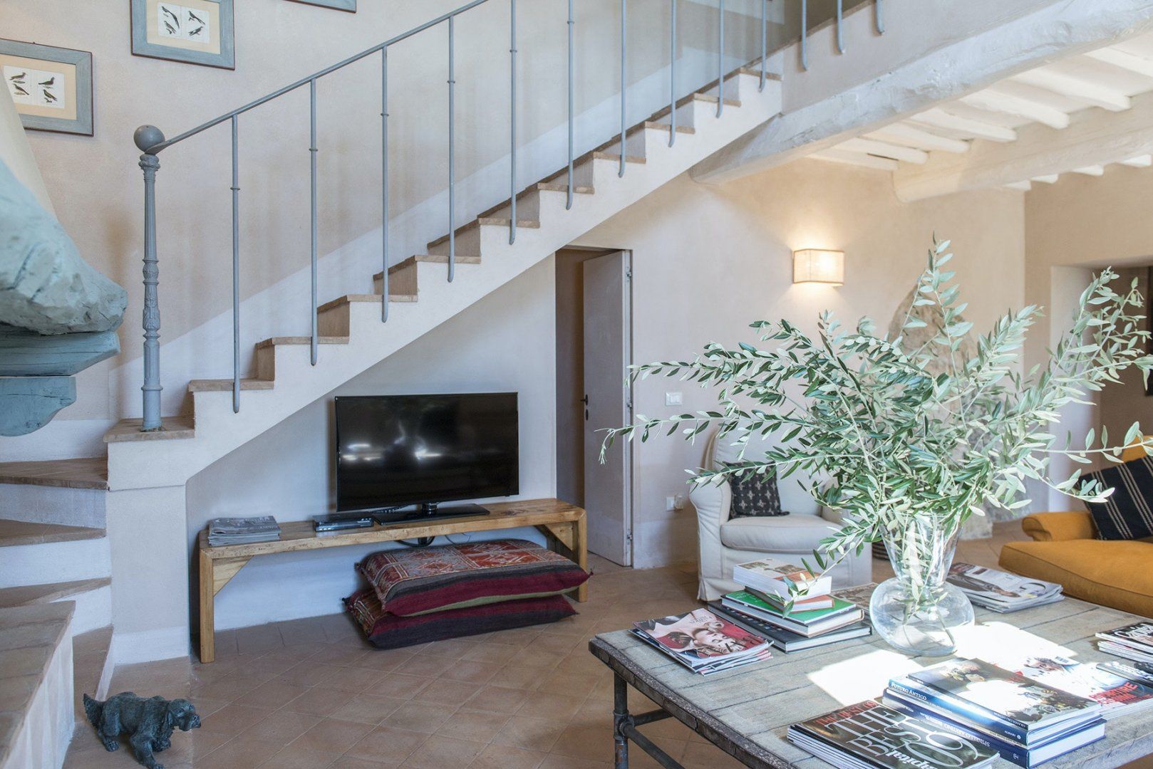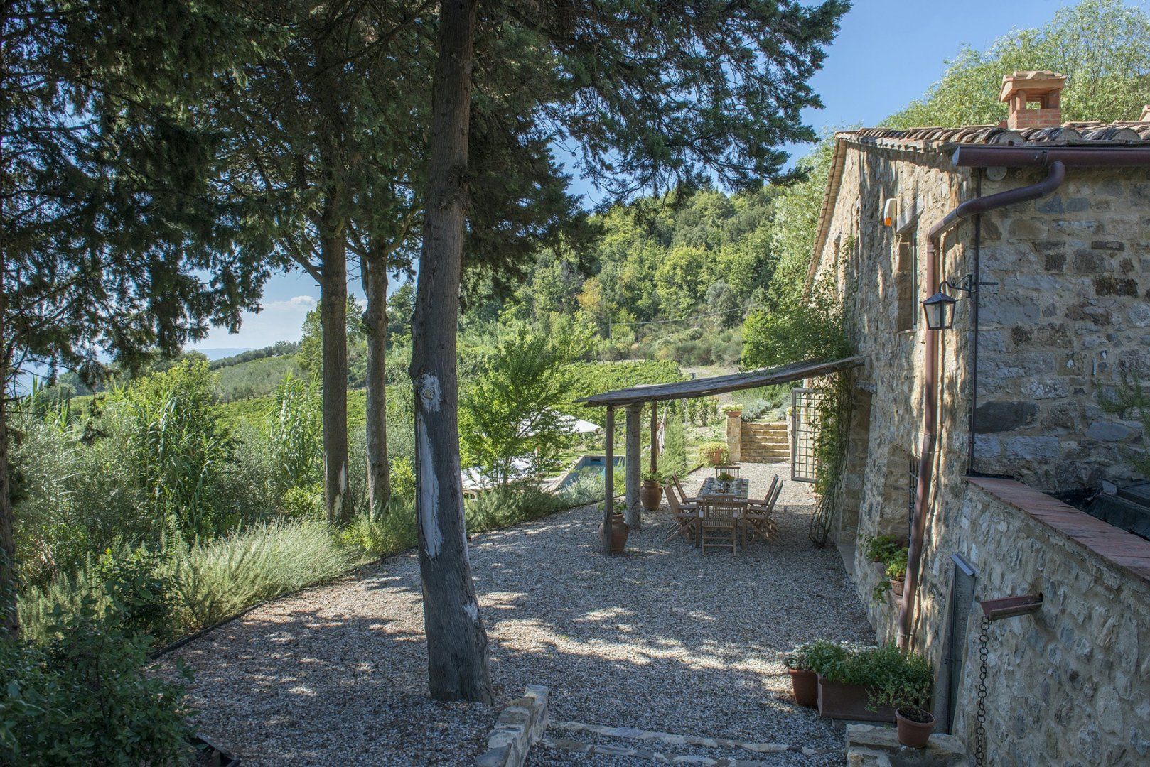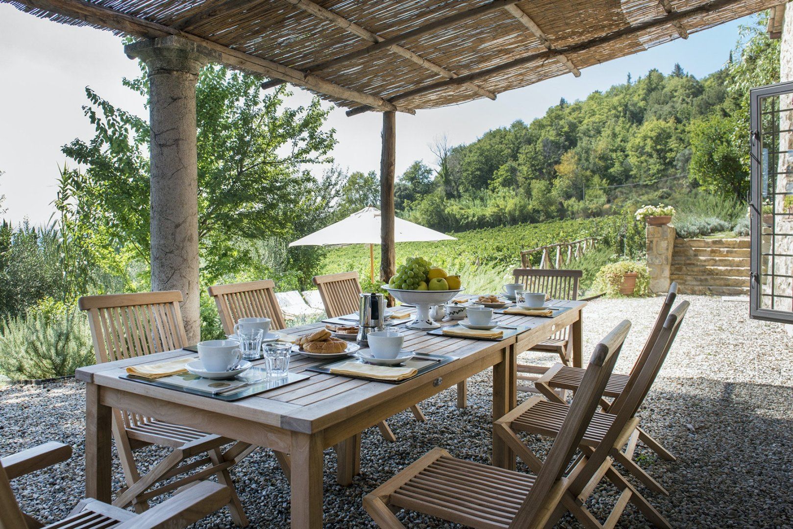 Surrounded by olive trees and vast swathes of vineyards, this Tuscan home in the heart of the Chianti wine region is a haven of rural relaxation. Its exposed stone exterior gives way to a bright interior, where farmhouse simplicity meets elegant design in the living room. With its giant hearth, plump sofas and tiered chandelier, this is the perfect spot for socialising over a glass of wine or curling up by the fire with a good book on cooler nights. With four comfortable bedrooms boasting postcard-like countryside views and a farm-style kitchen full of traditional charm, you’ll have everything you need to make yourself right at home. Head outside to take cool dips in the pool, or sit back in one of the many sun loungers while taking in the spectacular hillside views. Wander around the vineyards, visit Castellina in Chianti (less than ten minutes away by car), then come back home for a barbecue under the pergola paired, naturally, with a glass of Chianti.