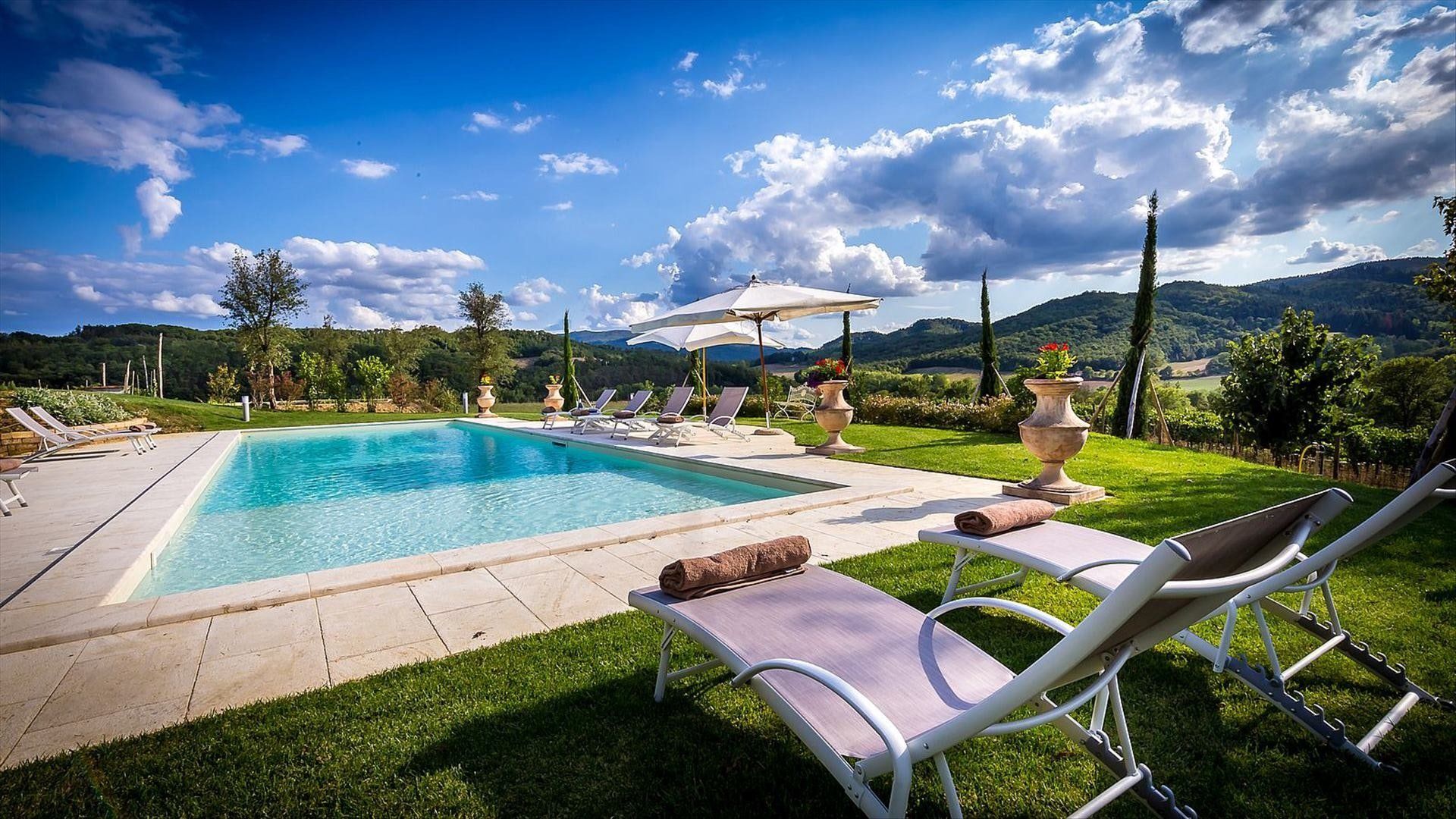 This former hunting lodge was once used by the wealthy and powerful Medici family. Steeped in history, it sits in the green hills of the Florentine Mugello, with its own large gardens surrounded by vineyards. There are remnants of the past everywhere, with ancient beamed ceilings, archways and tiled floors, but it's been carefully brought up to date with an eclectic mix of vintage and modern furnishings. And need we point out those fabulous chandeliers in some of the bedrooms? Take the sweeping steps down to the pool or pull up a lounger amid the scented flowers and lemon trees. Walking in the garden here, you’ll also find an area dedicated to aromatic herbs – the perfect addition to a Tuscan lunch in the dining area under a wisteria-covered pergola. It's just a short drive to the freshwater oasis of Lake Bilancino and a day trip to Florence is no more than forty minutes away by car.