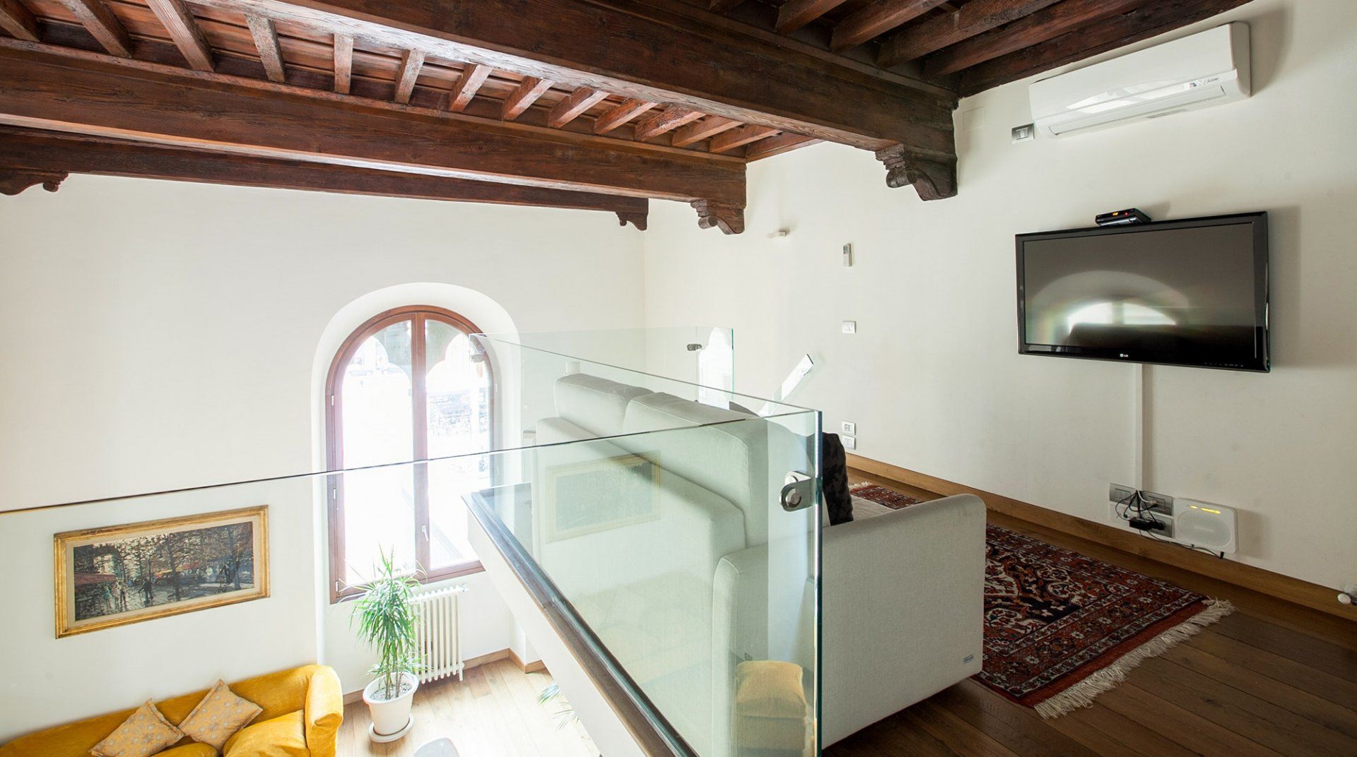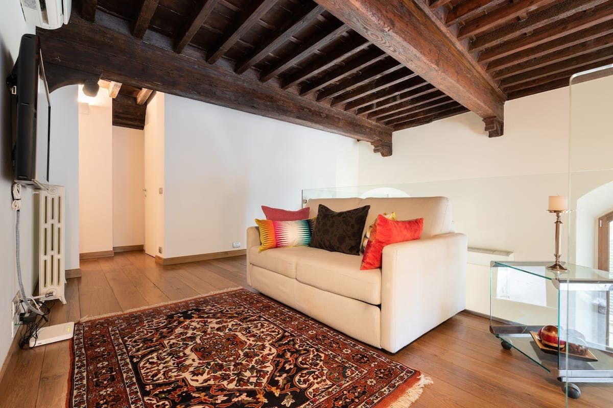 Home truths: * Child-friendly amenities such as a cot and a high chair are available upon request *The piazza can be a little noisy at night *Two people can sleep on a sofa bed on the mezzanine, but there's no real separation between that space and the living room downstairs *If you’ll be bringing a car, there is paid parking available in the vicinity