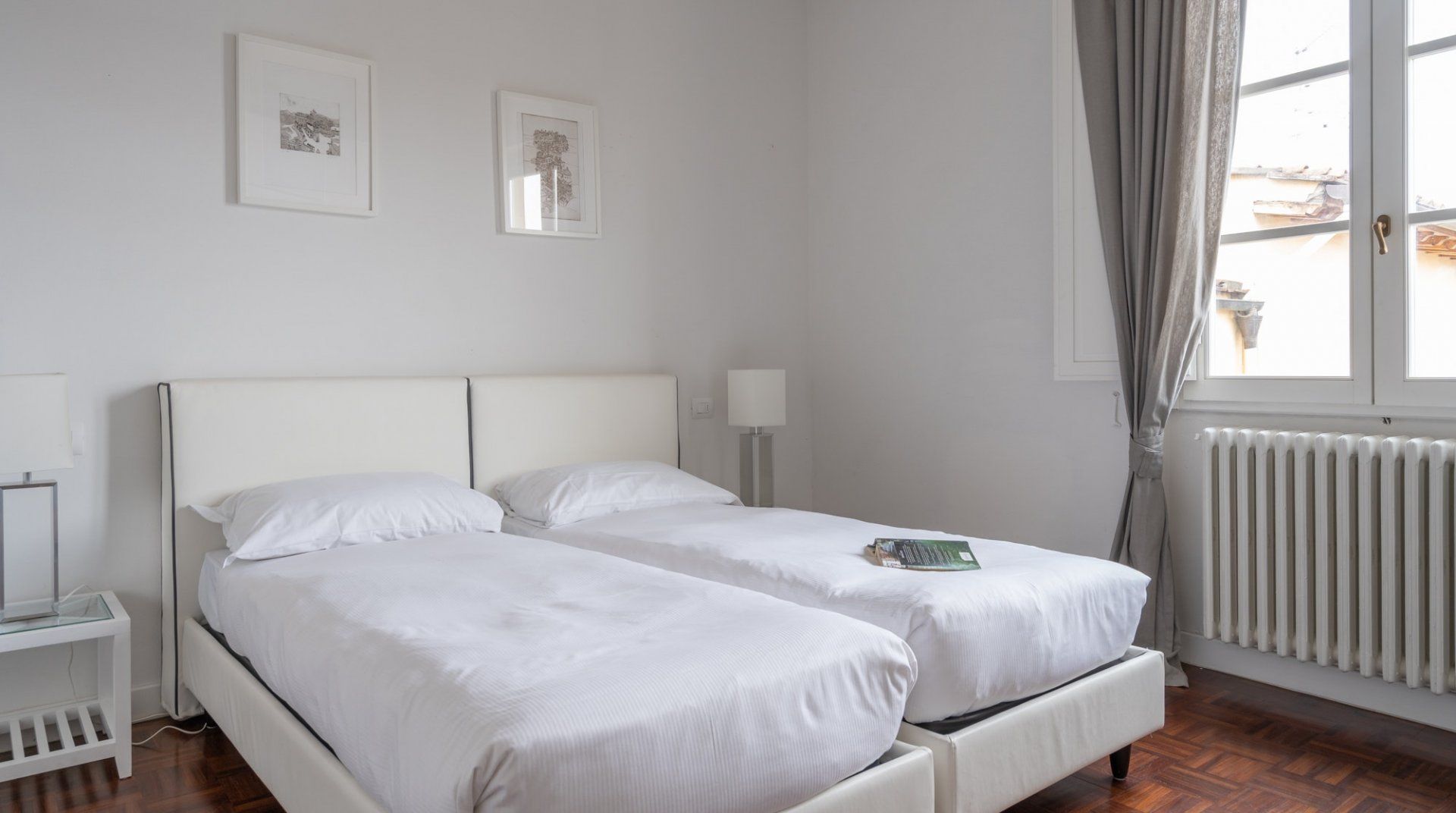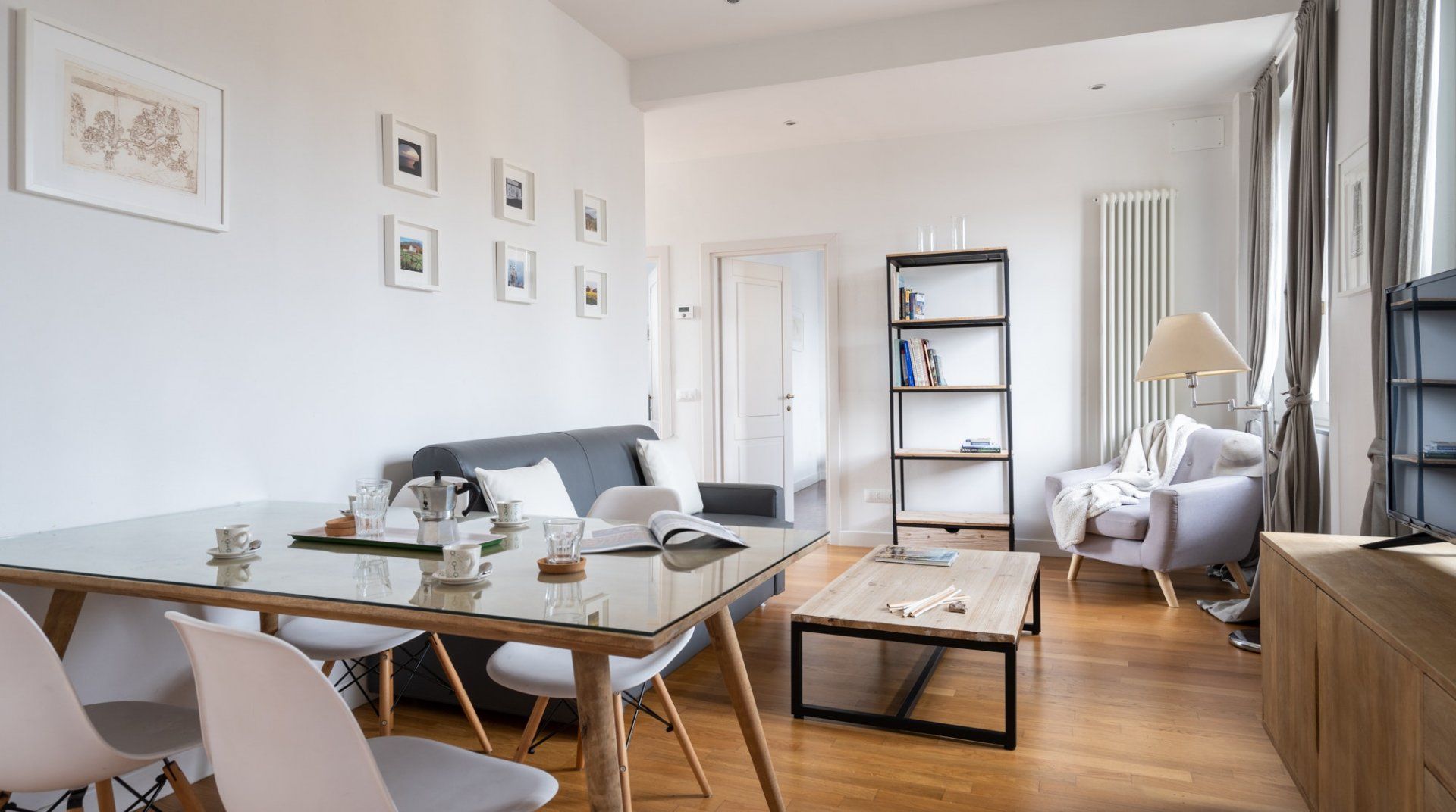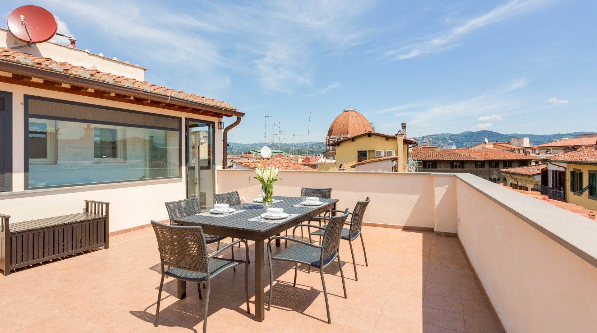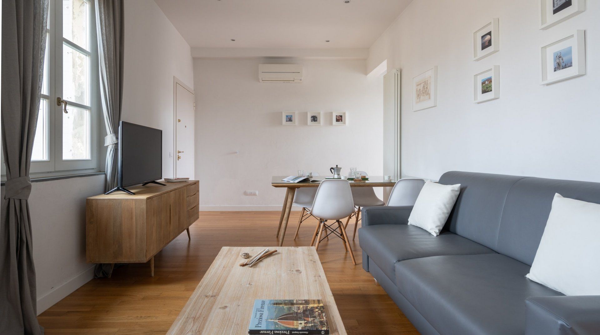 We adore this chic home's stunning terrace with its wonderful view of the Duomo di Firenze (Florence Cathedral) and many of the city's famous sights. It's a huge space, nestled in among the rooftops and drenched in sun. As the sun goes down, it's the perfect place to eat some local produce and sample some Tuscan wine. We also really love the living room style – its simplicity defined, with pale colours and a clear influence from Scandinavian design. Located in the heart of Florence's luxury shopping district, Via dè Tornabuoni is just a three-minute stroll away. This neighbourhood is also known for its array of Florentine restaurants, cafes and bakeries. If you want to visit the Duomo, it's a four-minute wander, while the medieval Ponte Vecchio is an eight-minute saunter. For art lovers, the Uffizi Gallery is just over ten minutes on foot. Whatever you decide to do – make sure you bring comfy shoes – there's so much to see nearby.