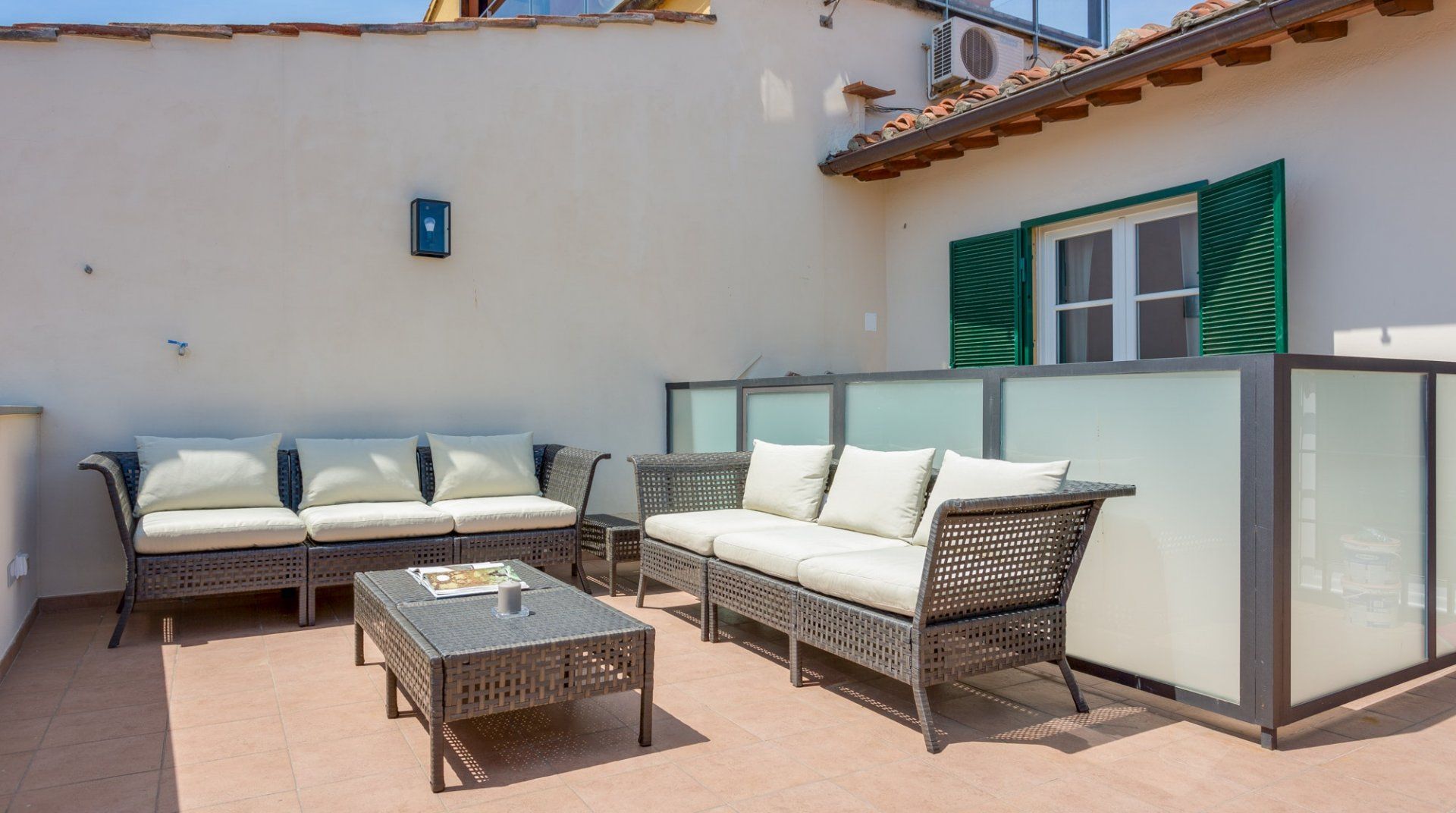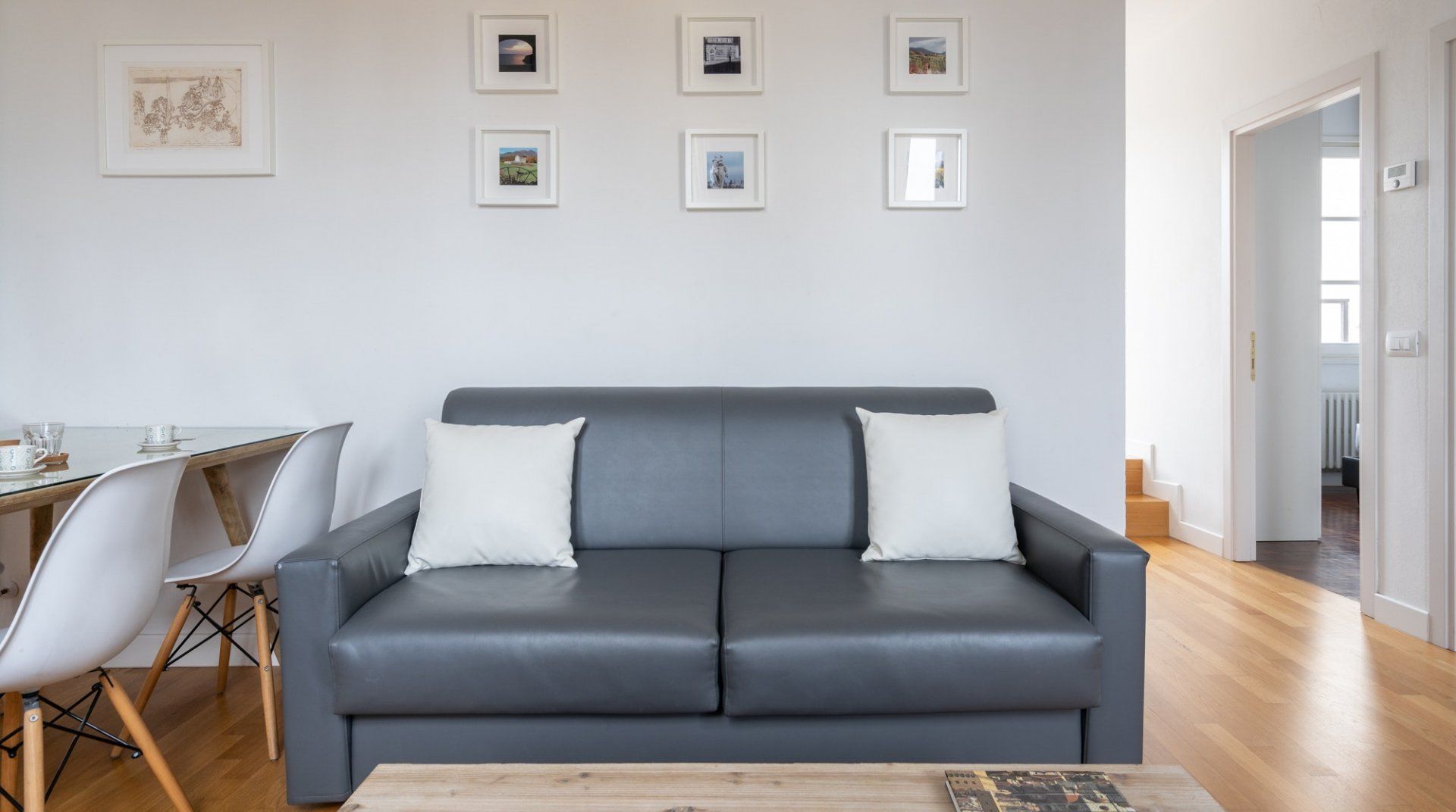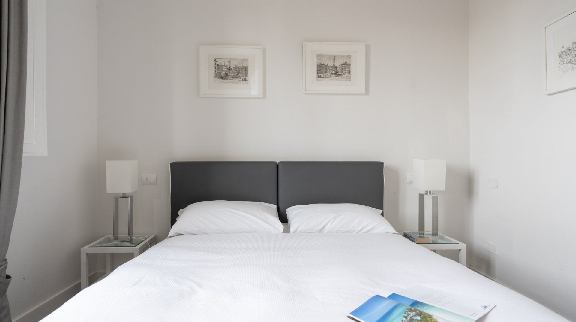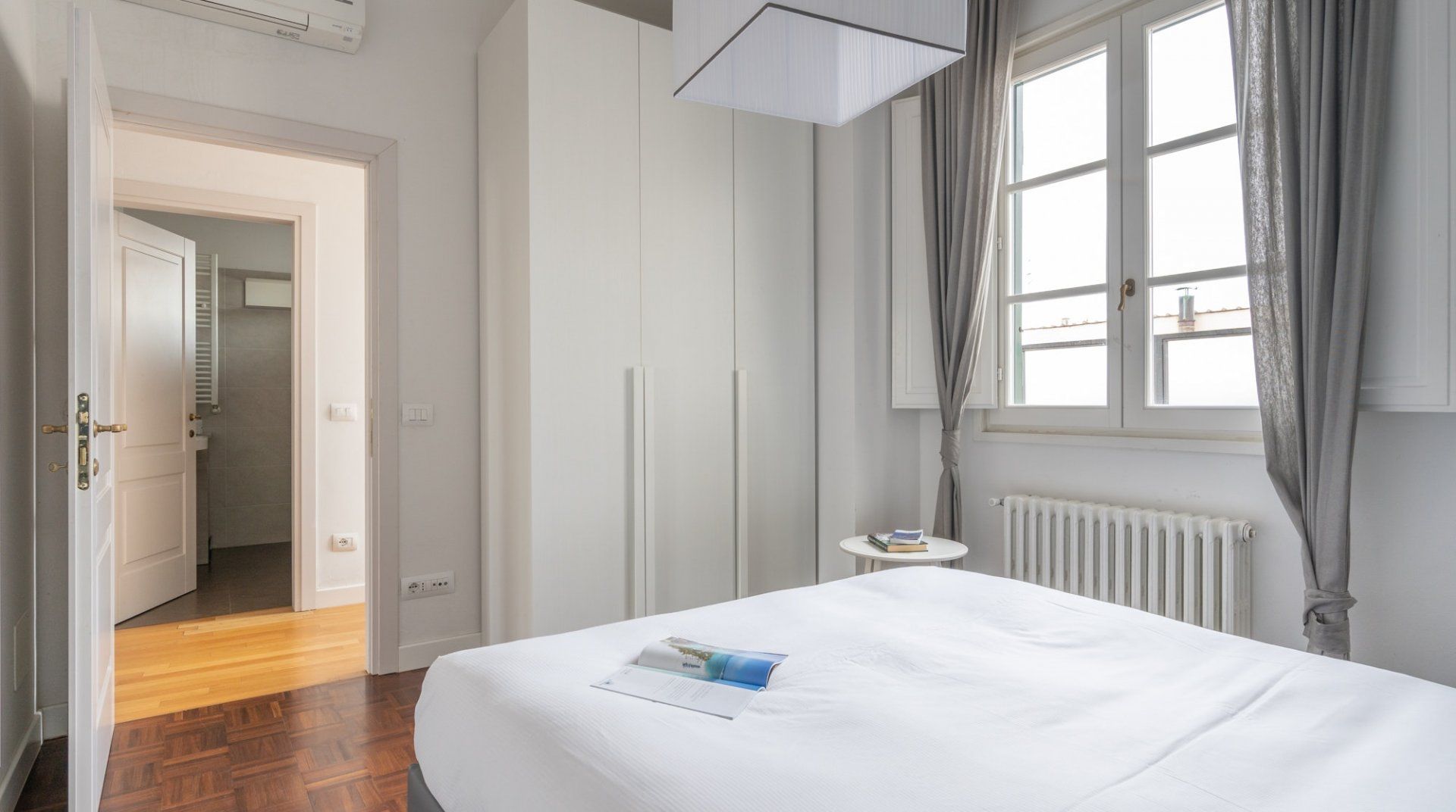 We adore this chic home's stunning terrace with its wonderful view of the Duomo di Firenze (Florence Cathedral) and many of the city's famous sights. It's a huge space, nestled in among the rooftops and drenched in sun. As the sun goes down, it's the perfect place to eat some local produce and sample some Tuscan wine. We also really love the living room style – its simplicity defined, with pale colours and a clear influence from Scandinavian design. Located in the heart of Florence's luxury shopping district, Via dè Tornabuoni is just a three-minute stroll away. This neighbourhood is also known for its array of Florentine restaurants, cafes and bakeries. If you want to visit the Duomo, it's a four-minute wander, while the medieval Ponte Vecchio is an eight-minute saunter. For art lovers, the Uffizi Gallery is just over ten minutes on foot. Whatever you decide to do – make sure you bring comfy shoes – there's so much to see nearby.