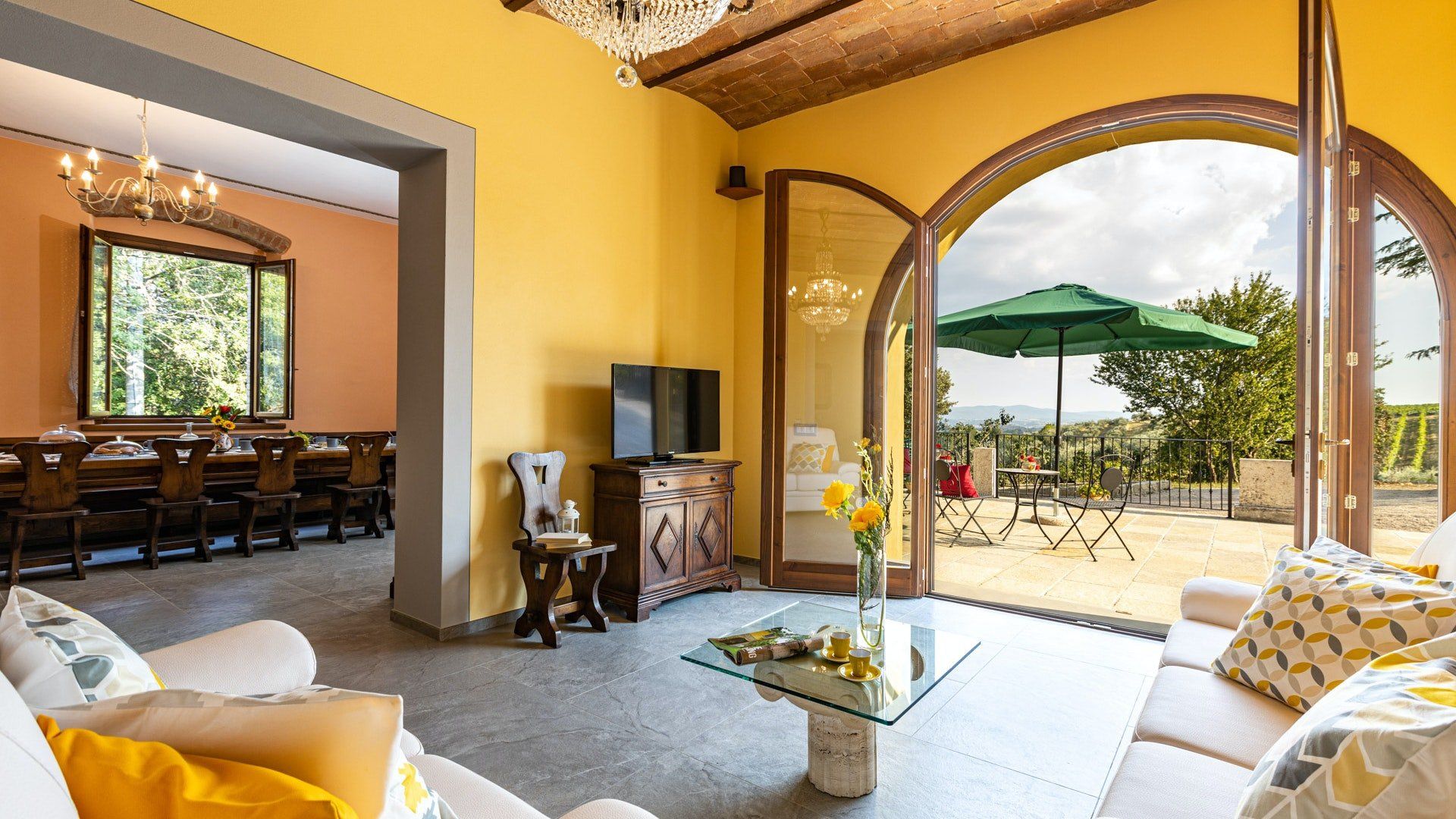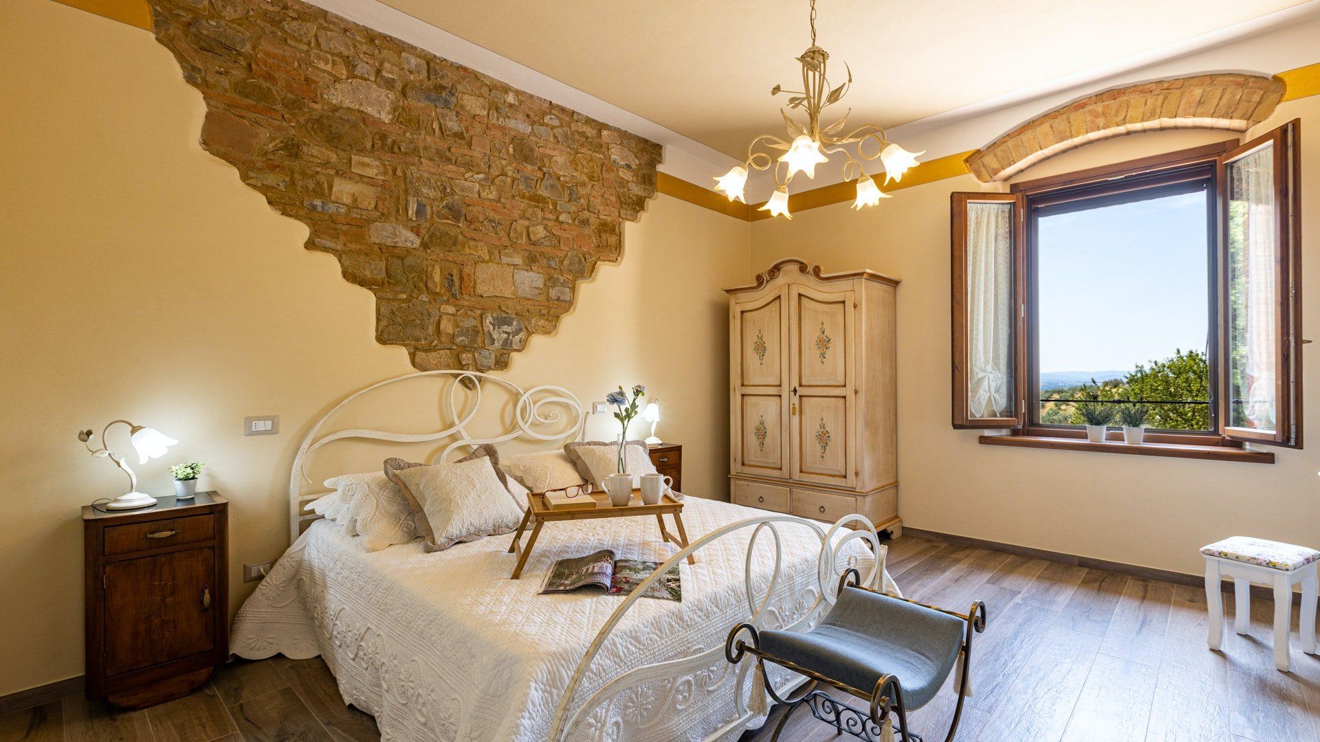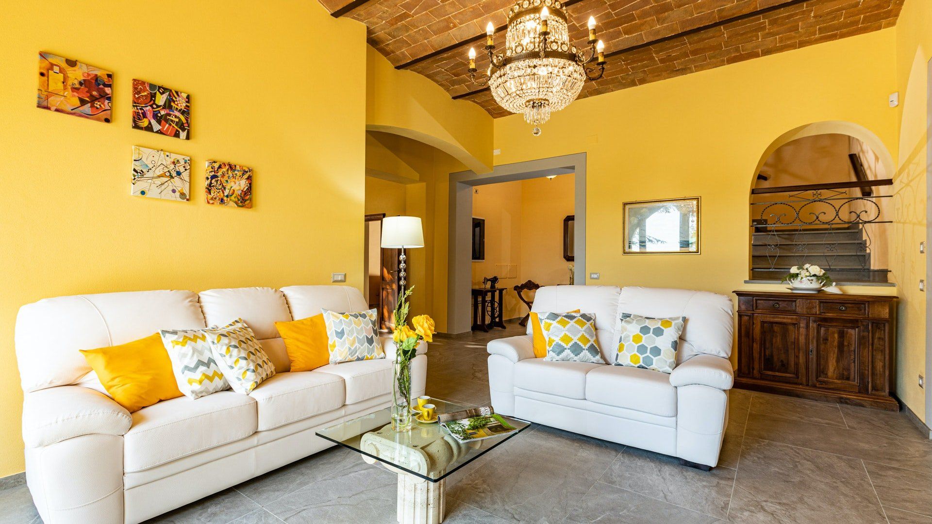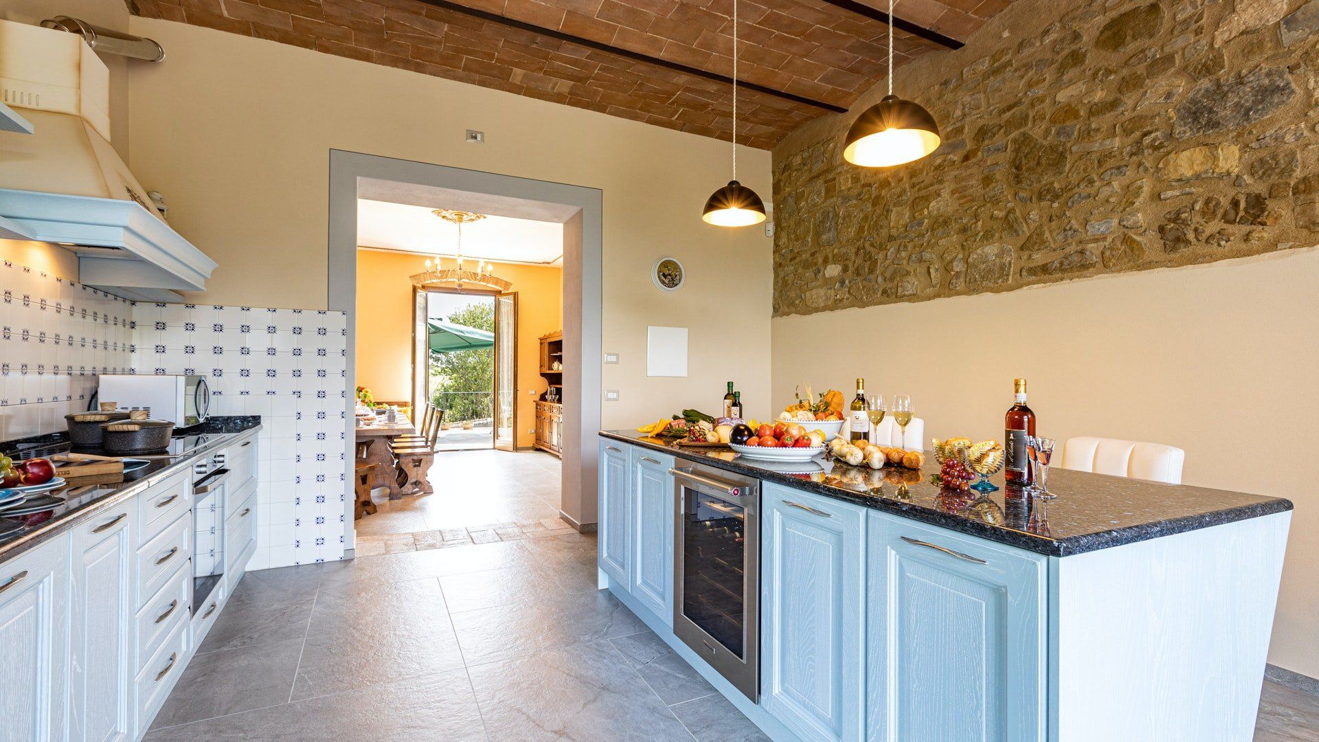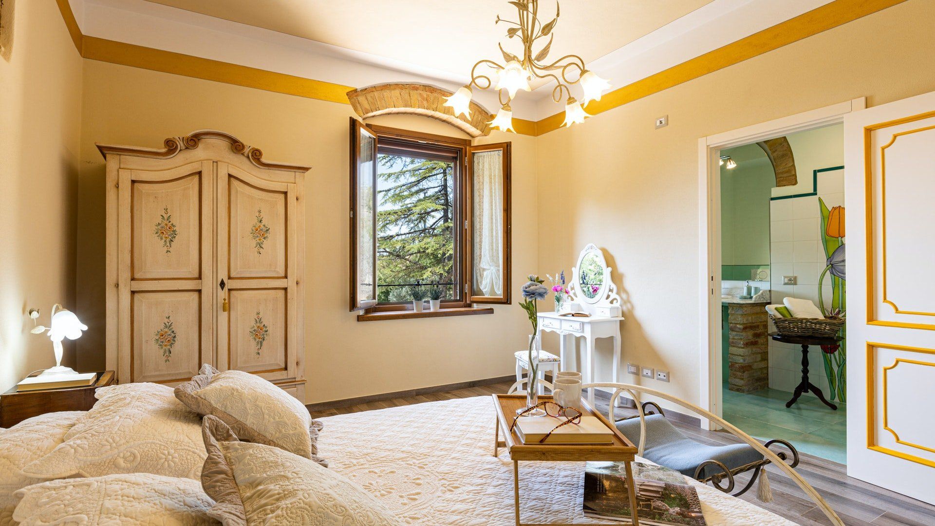 Surrounded by 10 hectares of land, featuring olive groves, lush woods and picturesque vineyards, this home is the perfect introduction to the Tuscan countryside. From the terrace, you can take in the view of the region’s rolling hills, with the hilltown of Poggibonsi rising up in the distance. As you wander through the gardens, breathe in the scent of the lavender, sage and rosemary plants. It’s easy to relax here, whether you’re going for a leisurely swim in the pool, taking some time out in the whirlpool tub or relaxing with a sundowner on the outdoor sofas. Typically Tuscan on the outside, with red-shuttered windows and a terracotta roof, this villa adds a dash of opulence to the occasion inside. From the bright living room with its arched French windows framing the view, to sparkling candelabra above the long, dark-wood dining table. Bedrooms and bathrooms have traditional touches – hand painted wardrobes, vibrat vintage tiling, and twinkling chandeliers. Exploring further afield is a breeze, with the famous city of Siena half an hour away, and Florence just a 45-minute drive.