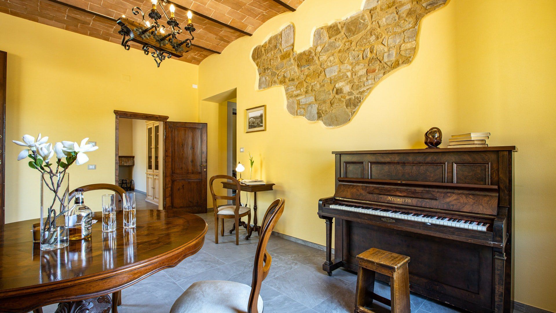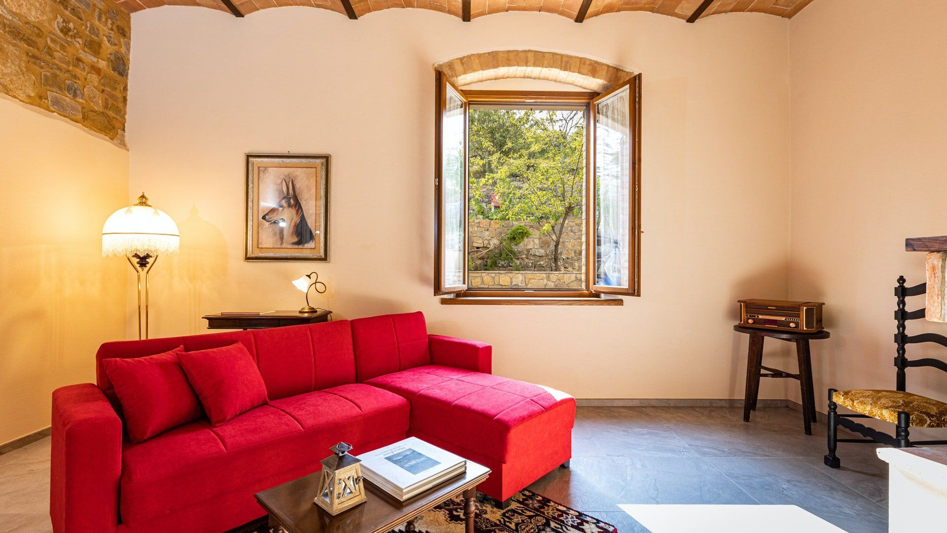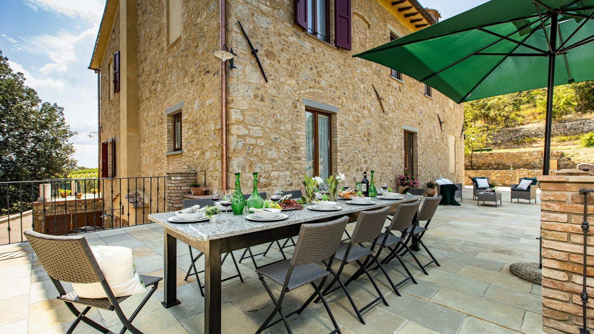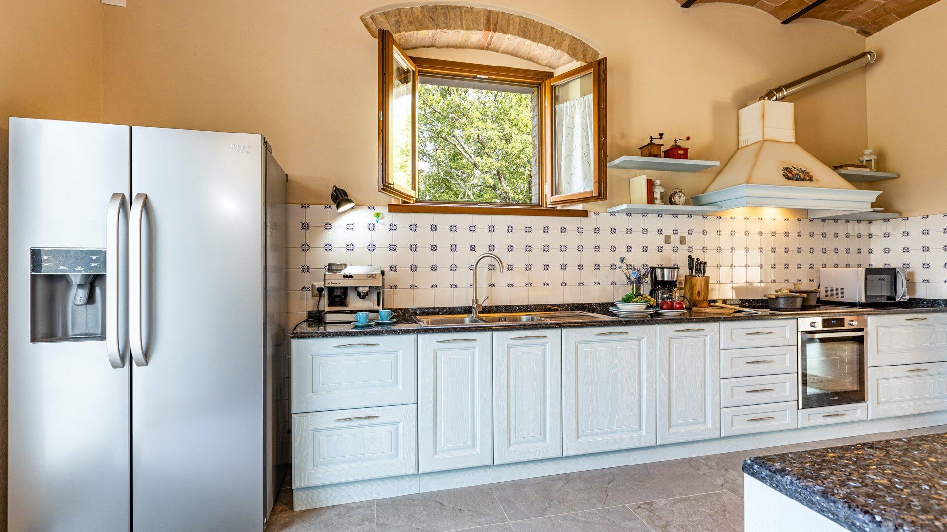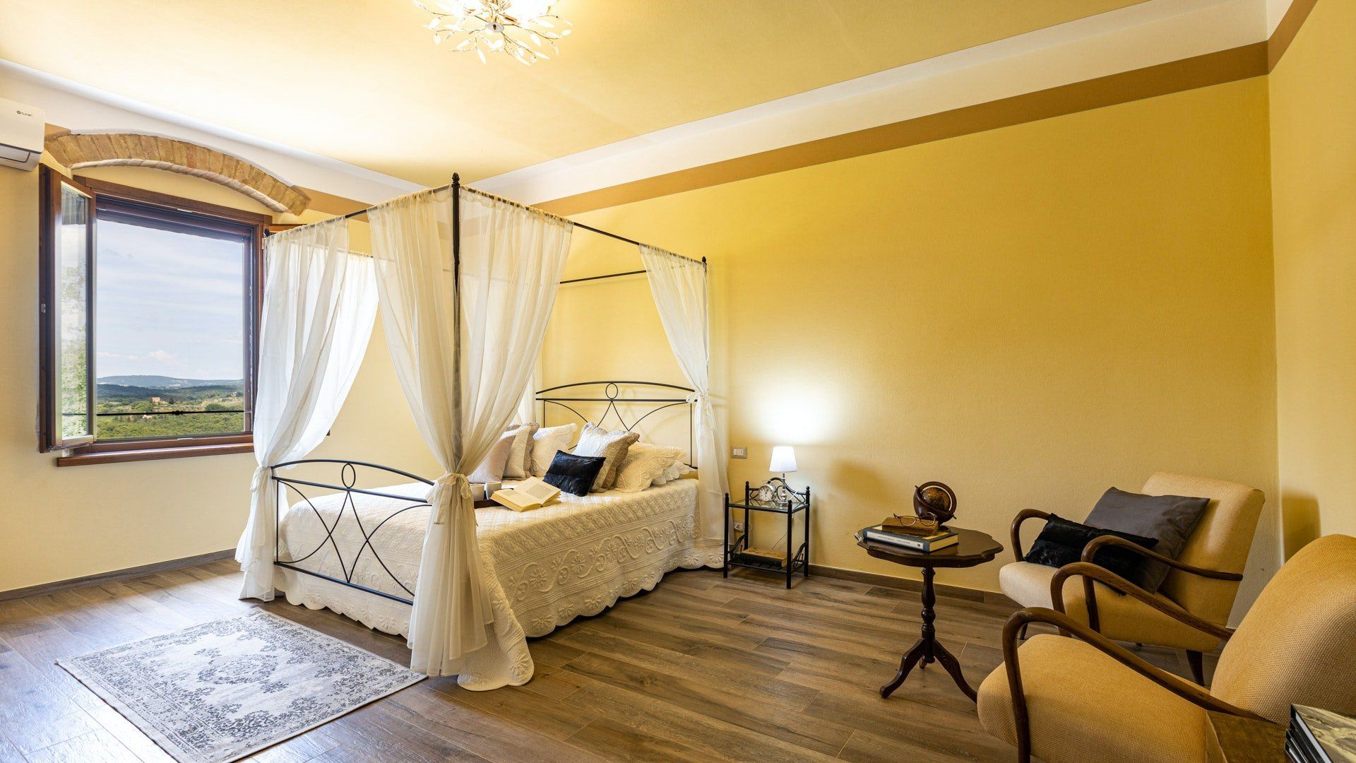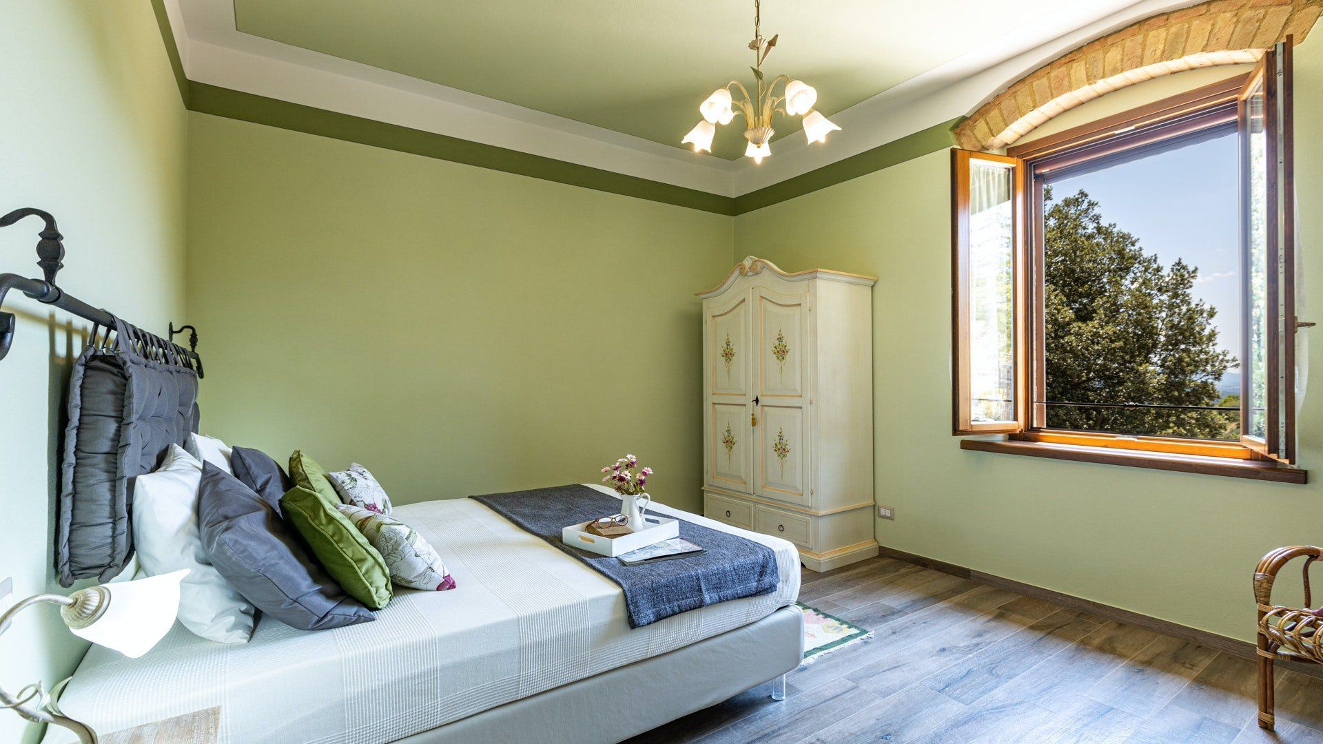 Surrounded by 10 hectares of land, featuring olive groves, lush woods and picturesque vineyards, this home is the perfect introduction to the Tuscan countryside. From the terrace, you can take in the view of the region’s rolling hills, with the hilltown of Poggibonsi rising up in the distance. As you wander through the gardens, breathe in the scent of the lavender, sage and rosemary plants. It’s easy to relax here, whether you’re going for a leisurely swim in the pool, taking some time out in the whirlpool tub or relaxing with a sundowner on the outdoor sofas. Typically Tuscan on the outside, with red-shuttered windows and a terracotta roof, this villa adds a dash of opulence to the occasion inside. From the bright living room with its arched French windows framing the view, to sparkling candelabra above the long, dark-wood dining table. Bedrooms and bathrooms have traditional touches – hand painted wardrobes, vibrat vintage tiling, and twinkling chandeliers. Exploring further afield is a breeze, with the famous city of Siena half an hour away, and Florence just a 45-minute drive.