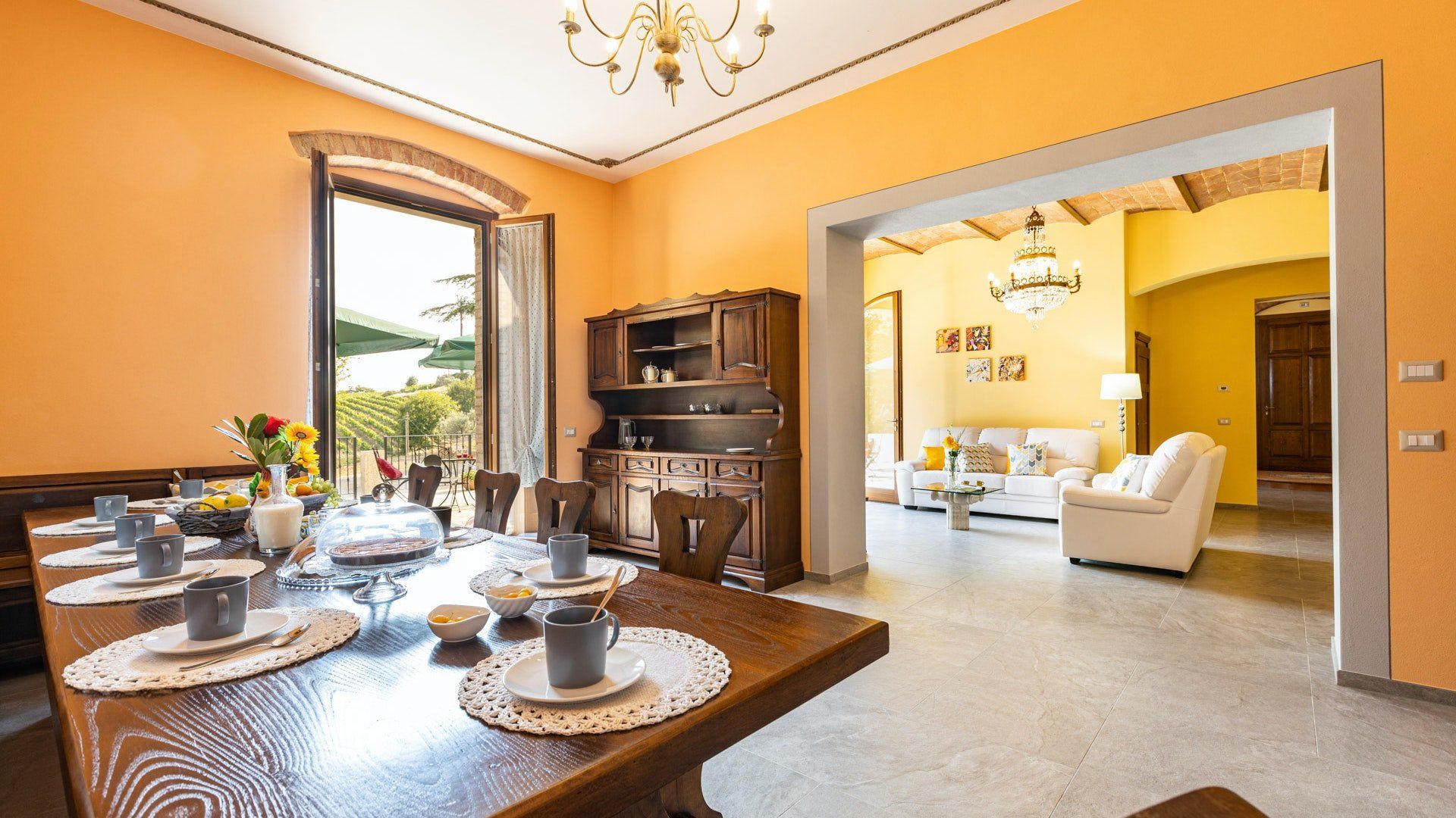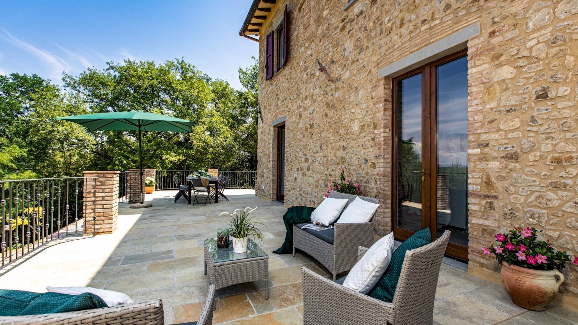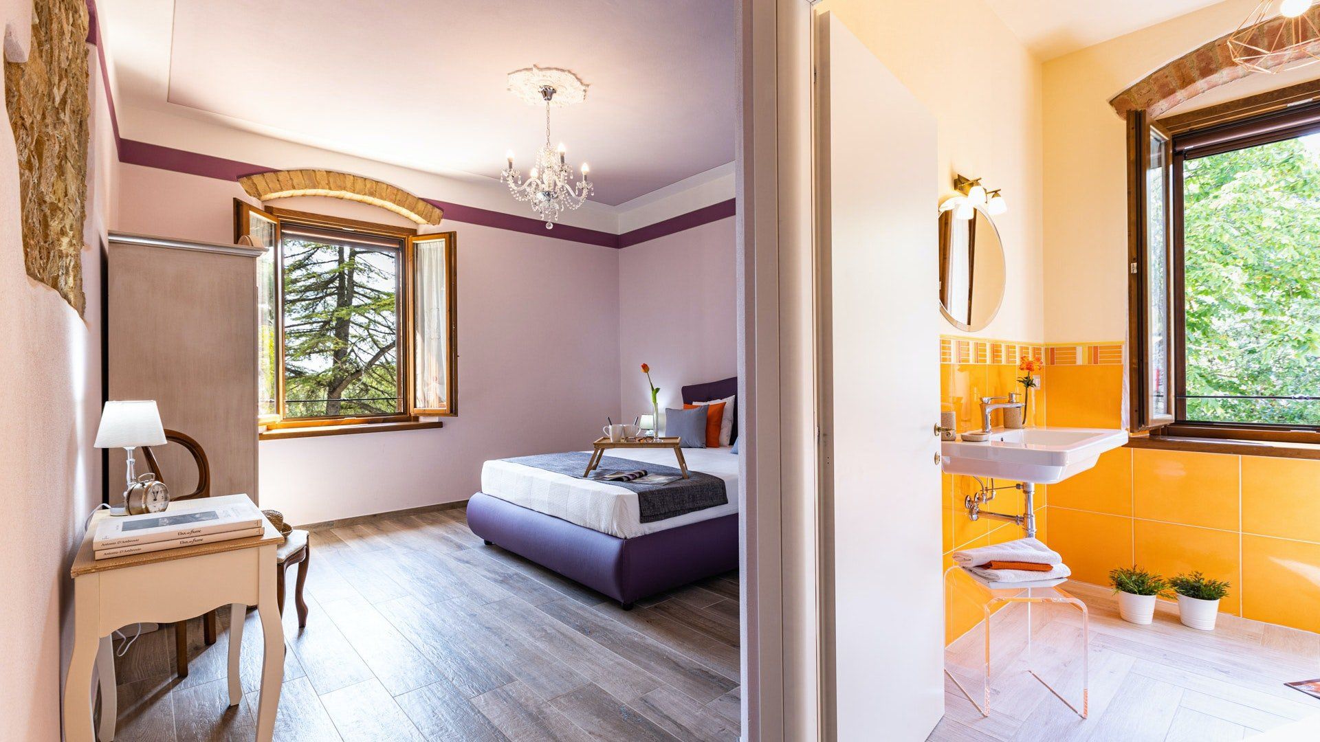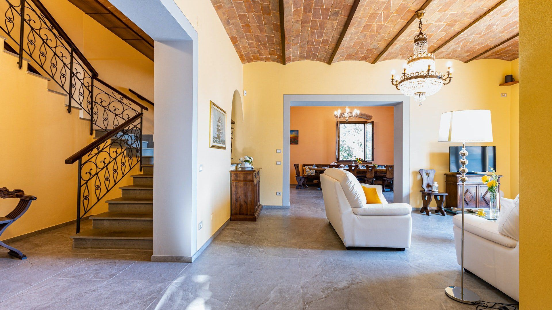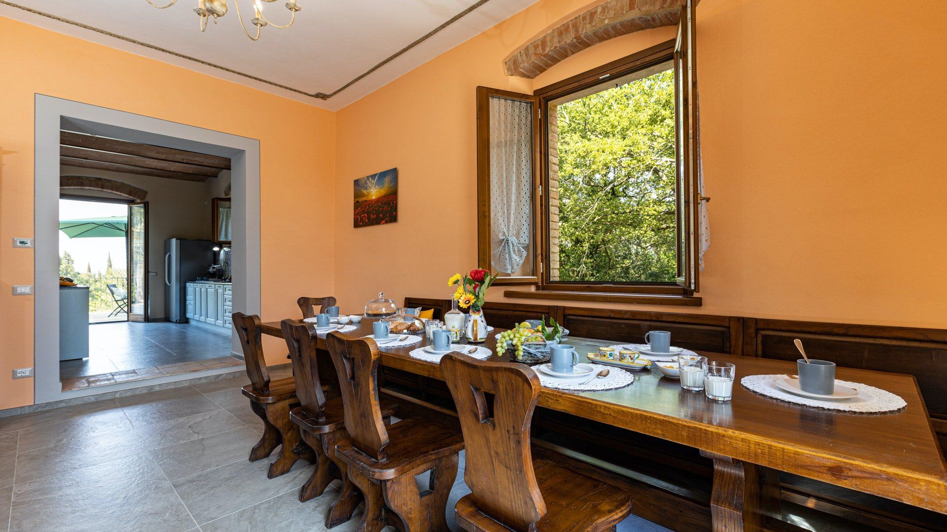 Surrounded by 10 hectares of land, featuring olive groves, lush woods and picturesque vineyards, this home is the perfect introduction to the Tuscan countryside. From the terrace, you can take in the view of the region’s rolling hills, with the hilltown of Poggibonsi rising up in the distance. As you wander through the gardens, breathe in the scent of the lavender, sage and rosemary plants. It’s easy to relax here, whether you’re going for a leisurely swim in the pool, taking some time out in the whirlpool tub or relaxing with a sundowner on the outdoor sofas. Typically Tuscan on the outside, with red-shuttered windows and a terracotta roof, this villa adds a dash of opulence to the occasion inside. From the bright living room with its arched French windows framing the view, to sparkling candelabra above the long, dark-wood dining table. Bedrooms and bathrooms have traditional touches – hand painted wardrobes, vibrat vintage tiling, and twinkling chandeliers. Exploring further afield is a breeze, with the famous city of Siena half an hour away, and Florence just a 45-minute drive.