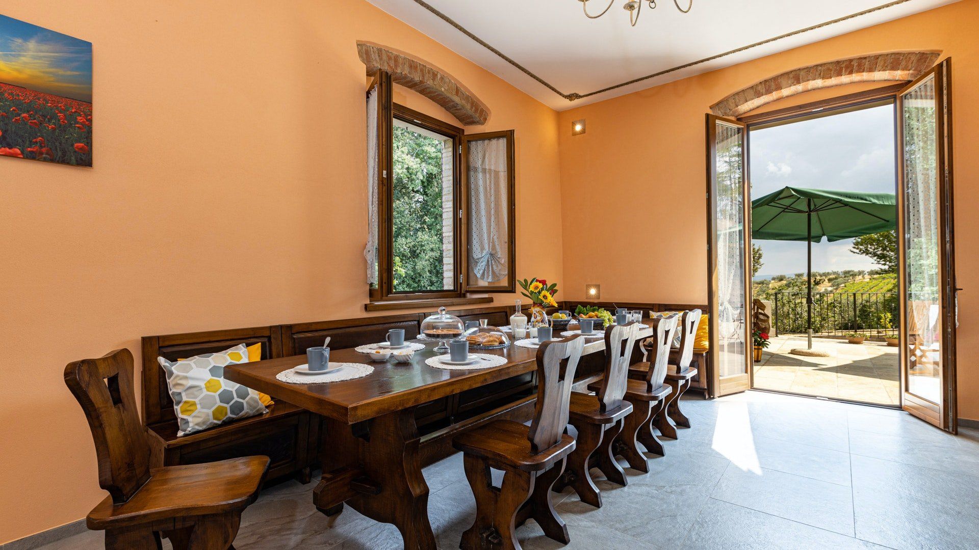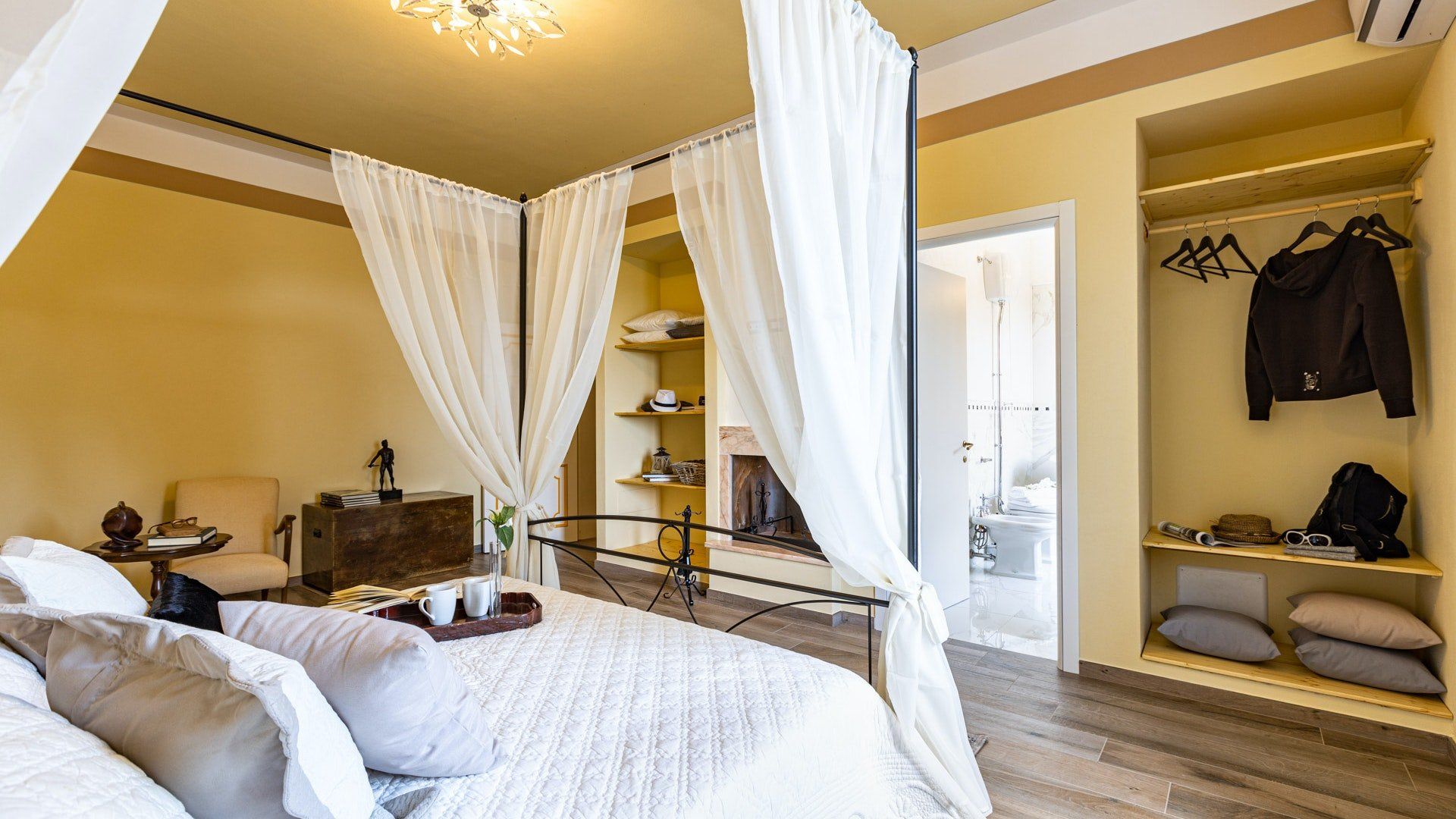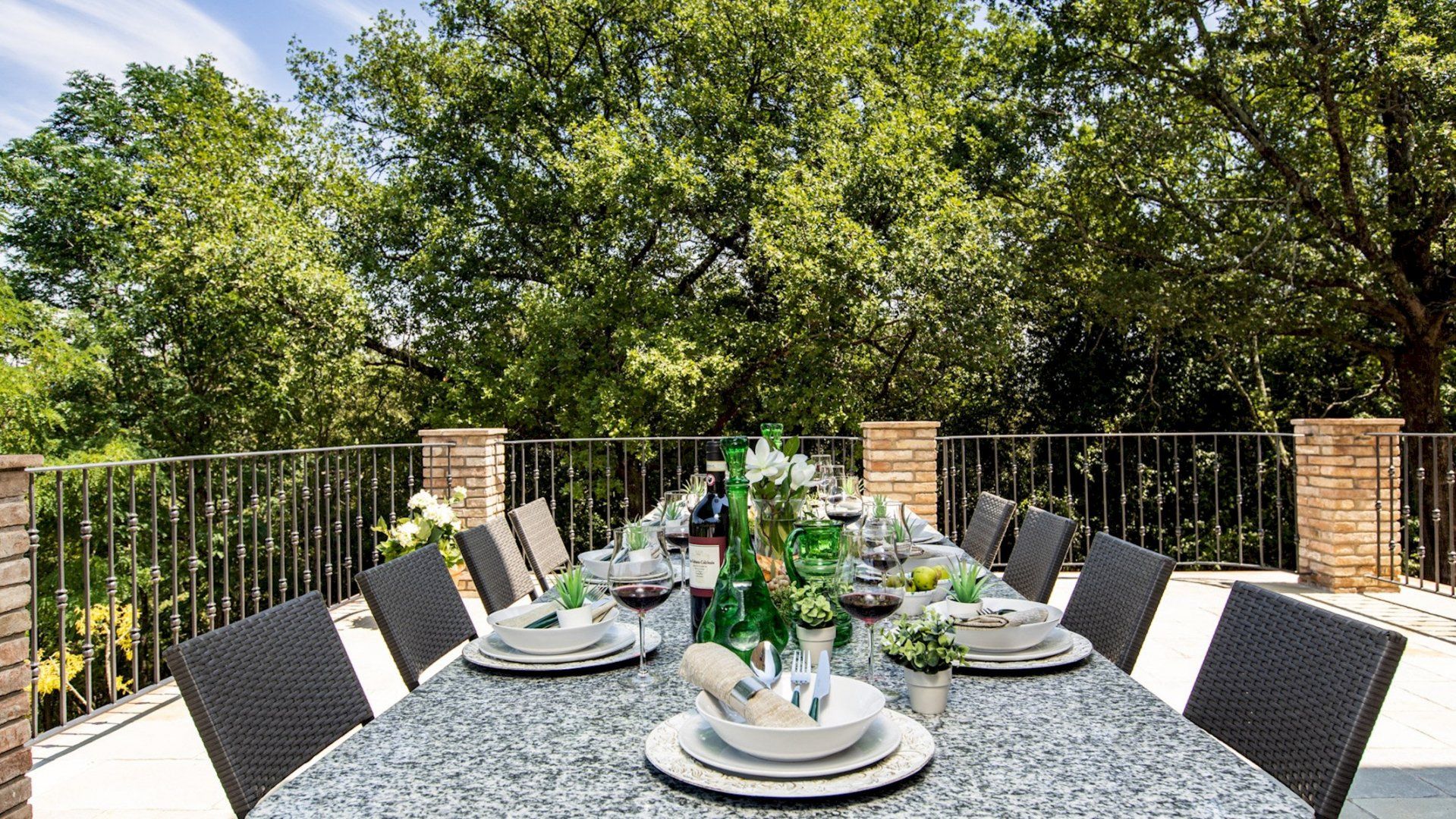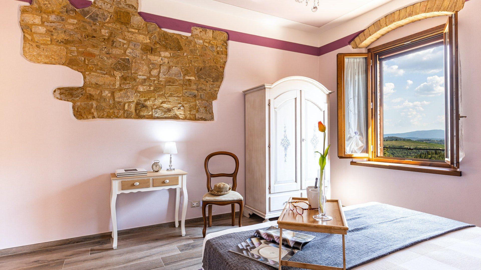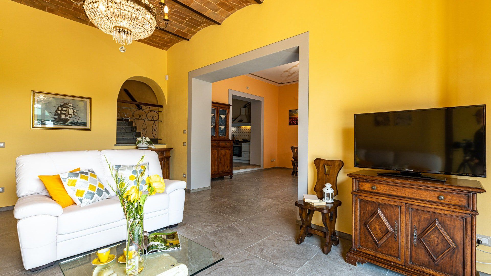 Surrounded by 10 hectares of land, featuring olive groves, lush woods and picturesque vineyards, this home is the perfect introduction to the Tuscan countryside. From the terrace, you can take in the view of the region’s rolling hills, with the hilltown of Poggibonsi rising up in the distance. As you wander through the gardens, breathe in the scent of the lavender, sage and rosemary plants. It’s easy to relax here, whether you’re going for a leisurely swim in the pool, taking some time out in the whirlpool tub or relaxing with a sundowner on the outdoor sofas. Typically Tuscan on the outside, with red-shuttered windows and a terracotta roof, this villa adds a dash of opulence to the occasion inside. From the bright living room with its arched French windows framing the view, to sparkling candelabra above the long, dark-wood dining table. Bedrooms and bathrooms have traditional touches – hand painted wardrobes, vibrat vintage tiling, and twinkling chandeliers. Exploring further afield is a breeze, with the famous city of Siena half an hour away, and Florence just a 45-minute drive.