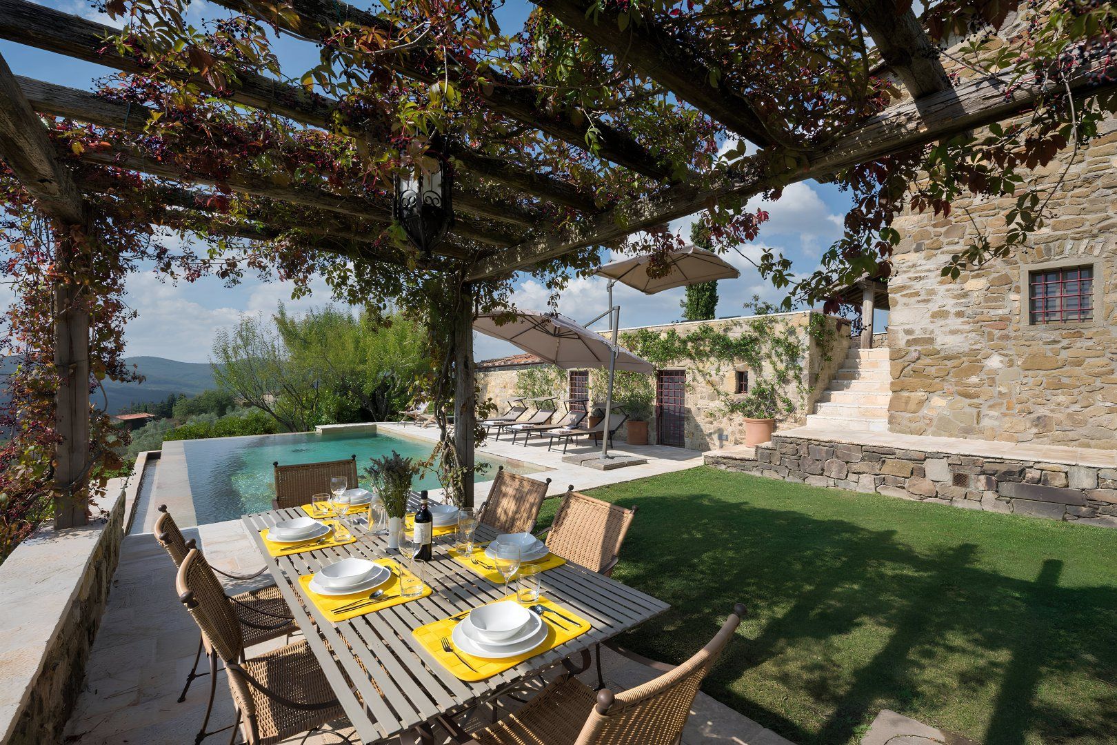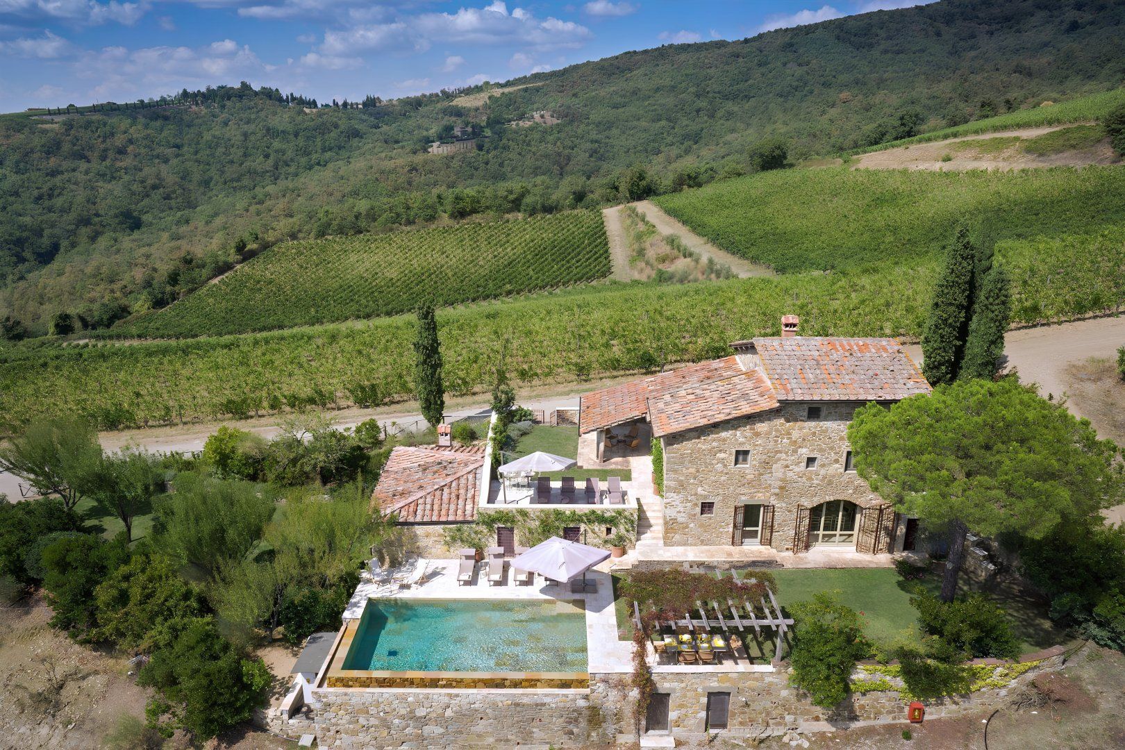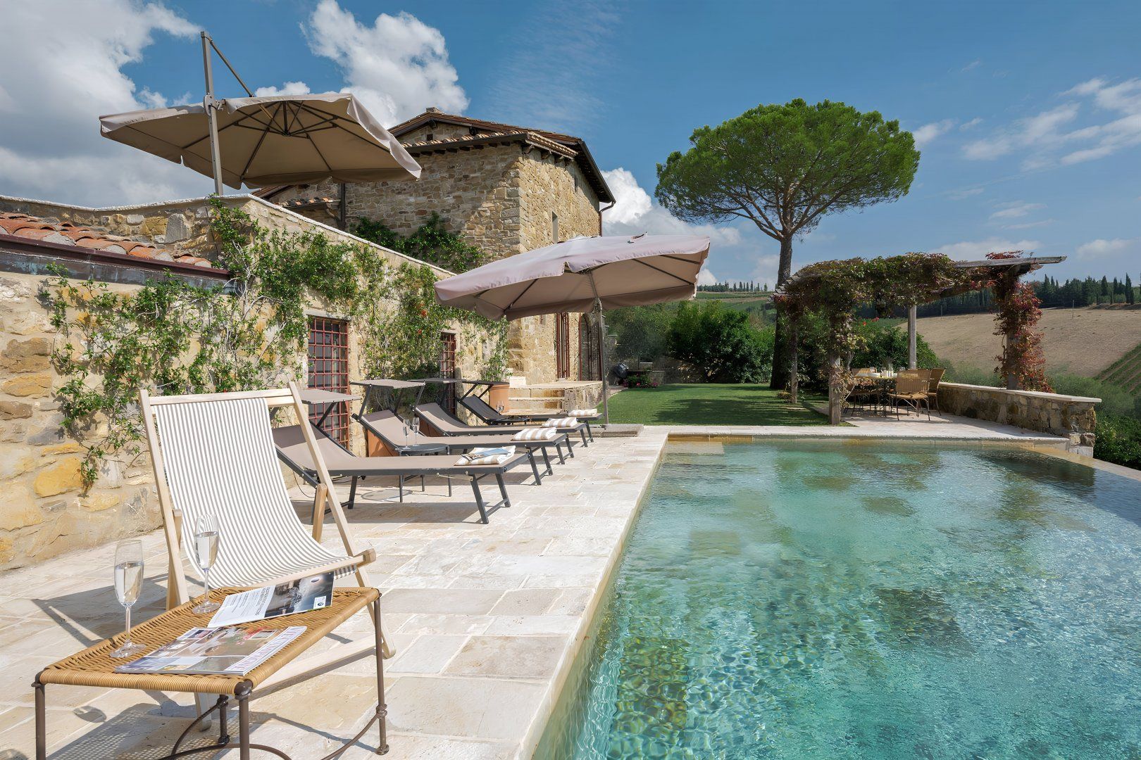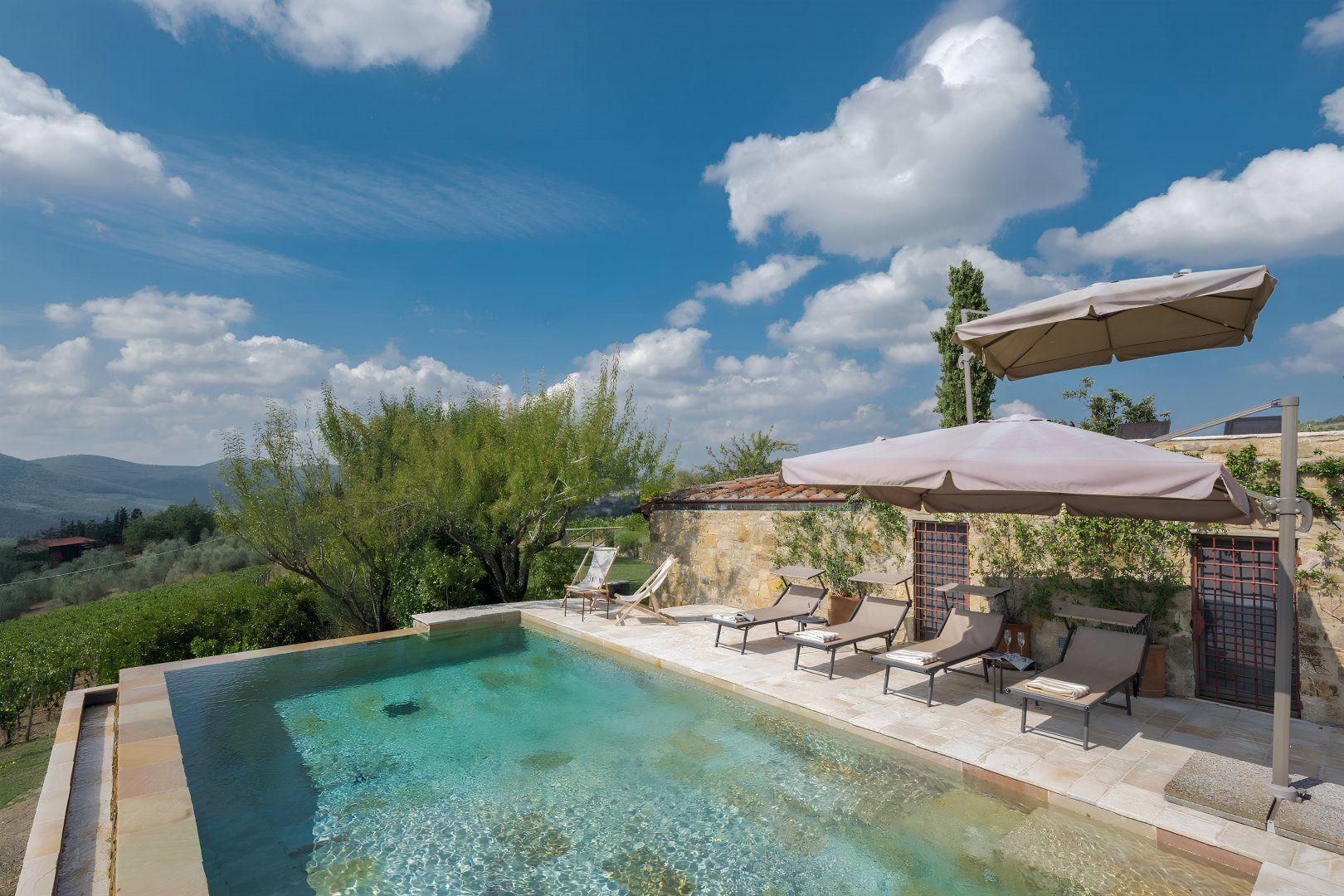 Overlooking the Tuscan countryside from its hillside position, this rustic villa boasts some incredible views – best celebrated from the outside dining area and elegant infinity pool. We think it's a great fit for families with a lovely private garden as well as flexible sleeping arrangements – the twin beds can be converted into doubles upon request. Keen cooks will love the modern chef's kitchen for preparing alfresco suppers – though if you feel like dining out, the nearby village of Volpaia and the market town of Radda are both just a short drive away. You will need to hire a car to get around here, and the drive will often be hilly and uneven.