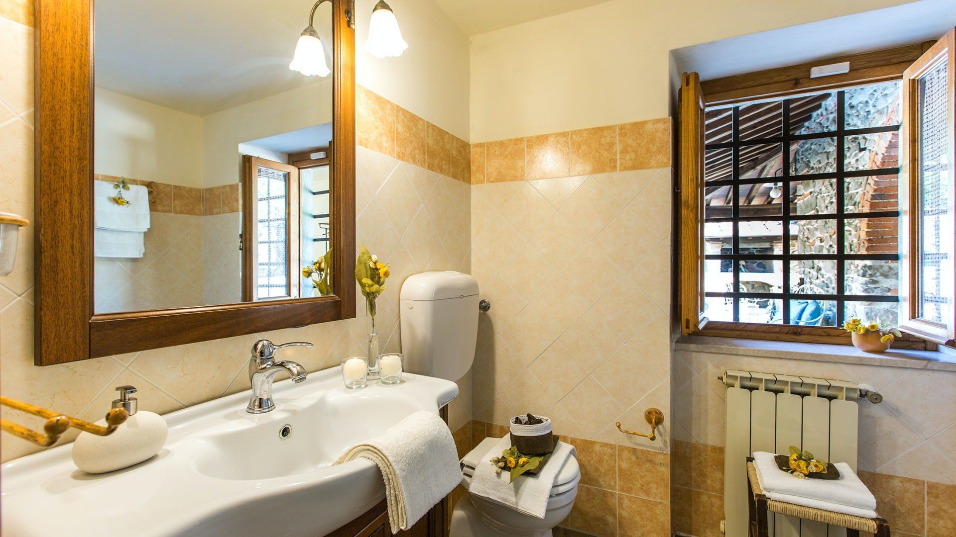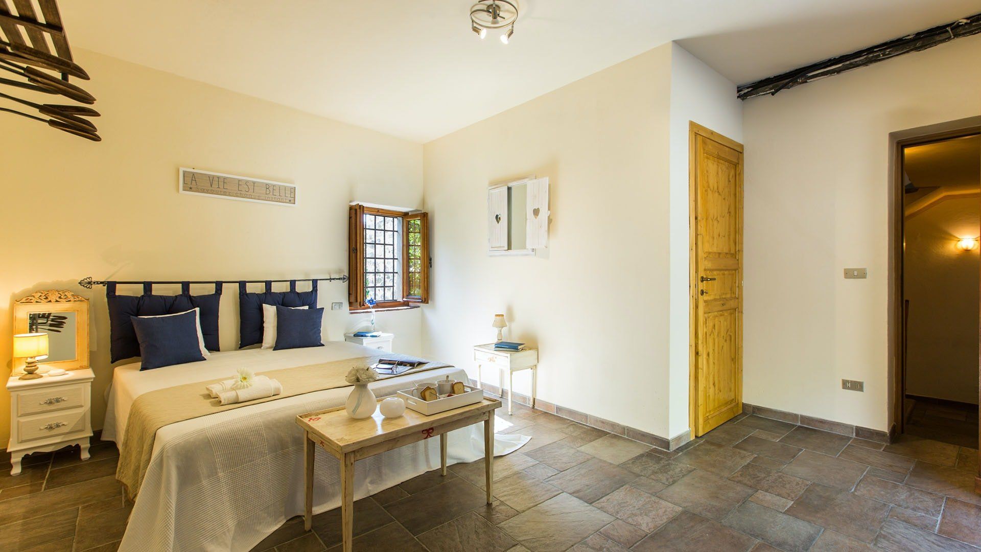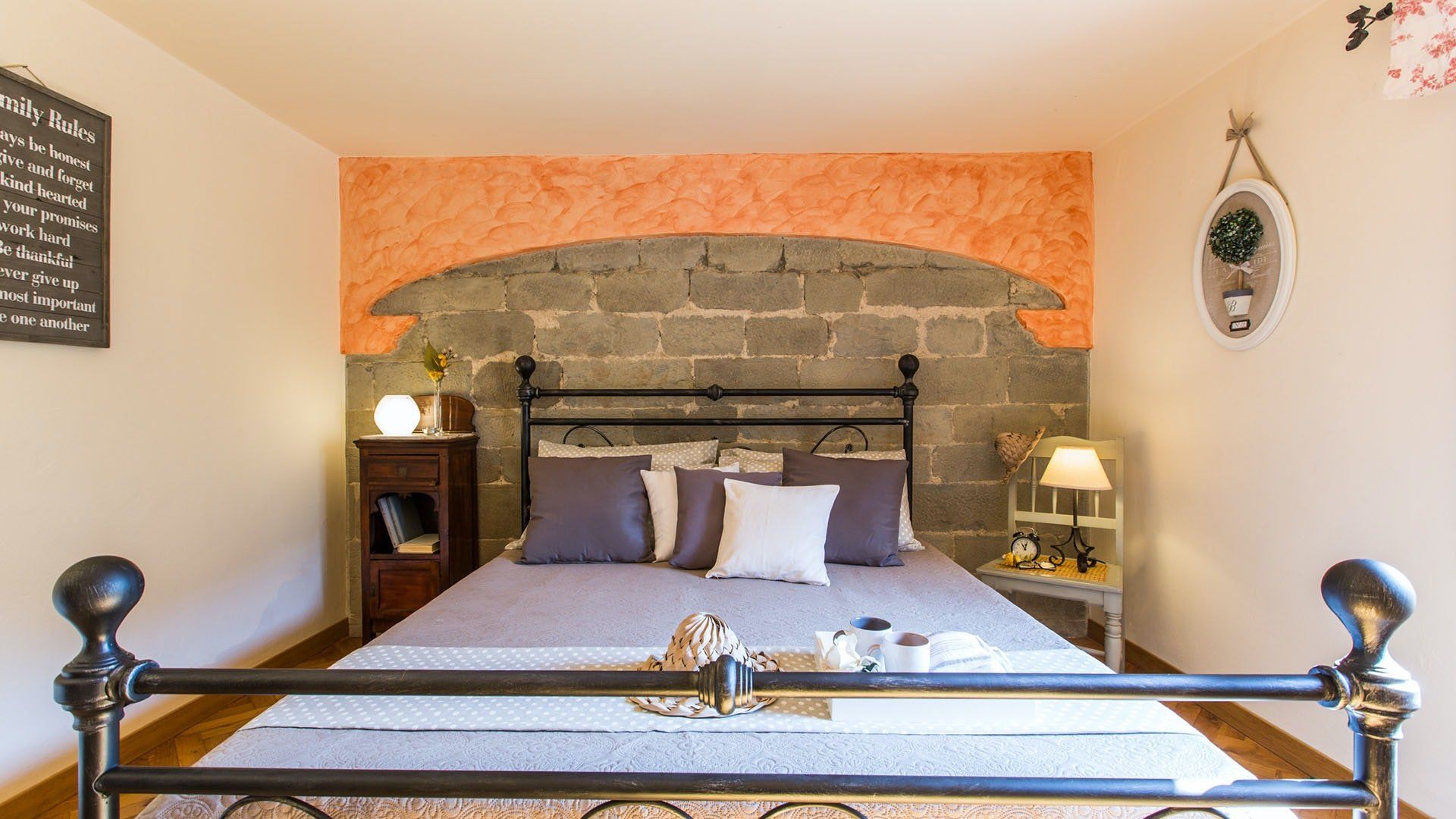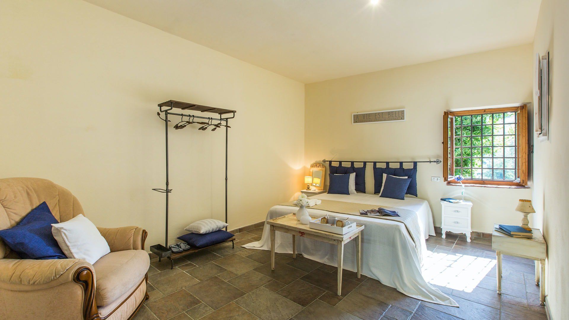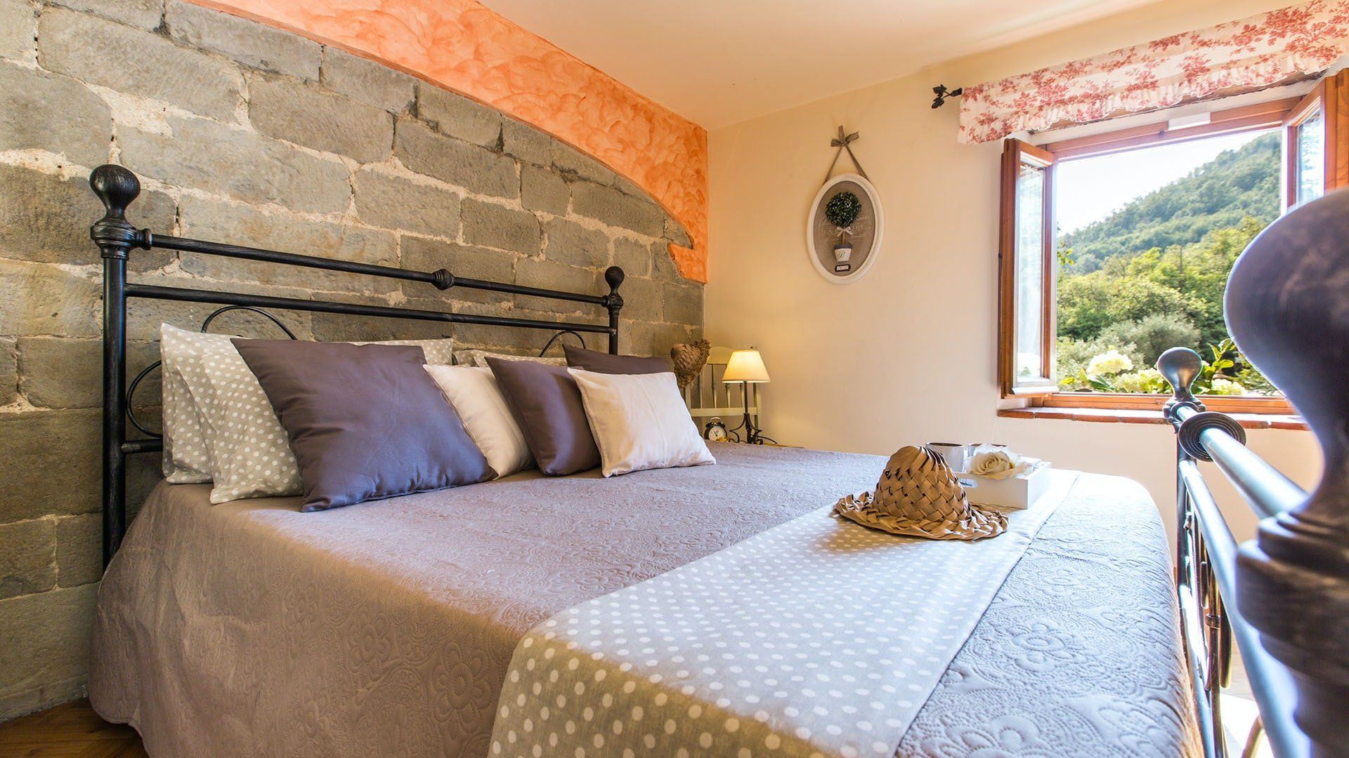 Surrounded by holm oaks, cypresses and chestnut trees, this home near Pistoia is a peaceful retreat set within the stunning Tuscan countryside. It’s a sociable place to stay – whether you’re lazing by the pool, tucking into alfresco meals on the covered terrace, or sipping a bold chianti under the gazebo at sunset. Head into town to pick up some fresh local produce to cook on the stone barbecue, or make pizzas in the bell tower’s wood-fired oven. Inside, you’ll find wooden beams, exposed brick walls, stone staircases and typically Tuscan decor, so it’ll feel like another world when you step into the basement, with its Jacuzzi room painted with palm trees and a brilliant yellow sky.