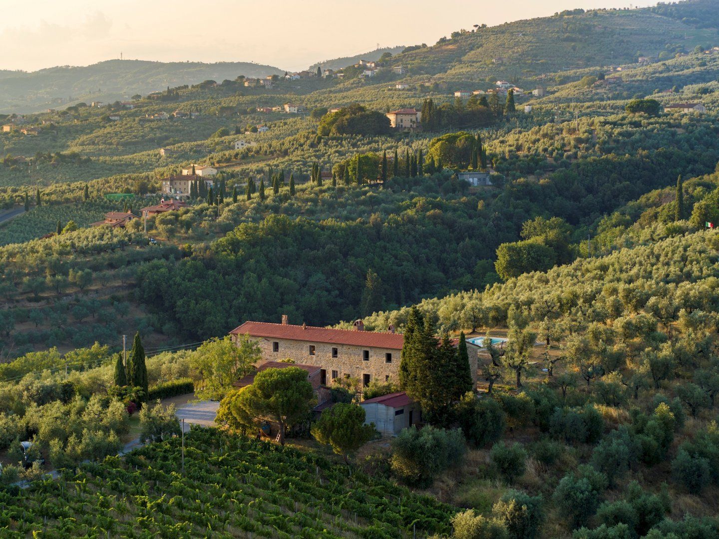 Located just outside the medieval town of Vinci, the birthplace of the town's most famous son is within easy walking distance of this charming villa. Inside, the home takes inspiration from Leonardo, with thoughtfully curated paintings adorning the walls, wicker sofas in the living room and beautifully carved wooden beds. When in Tuscany though, outdoors is always best. Set atop a hill, you'll take in panoramic views of alluring landscapes that stretch as far as the eye can see. Cool off with a few casual laps of the private courtyard pool, surrounded by aromatic herbs, colourful flowers and centuries-old olive trees. Later on, sit down to an alfresco dinner at one of the many outdoor seating areas. After following in the footsteps of greatness, you’re sure to return home feeling inspired.