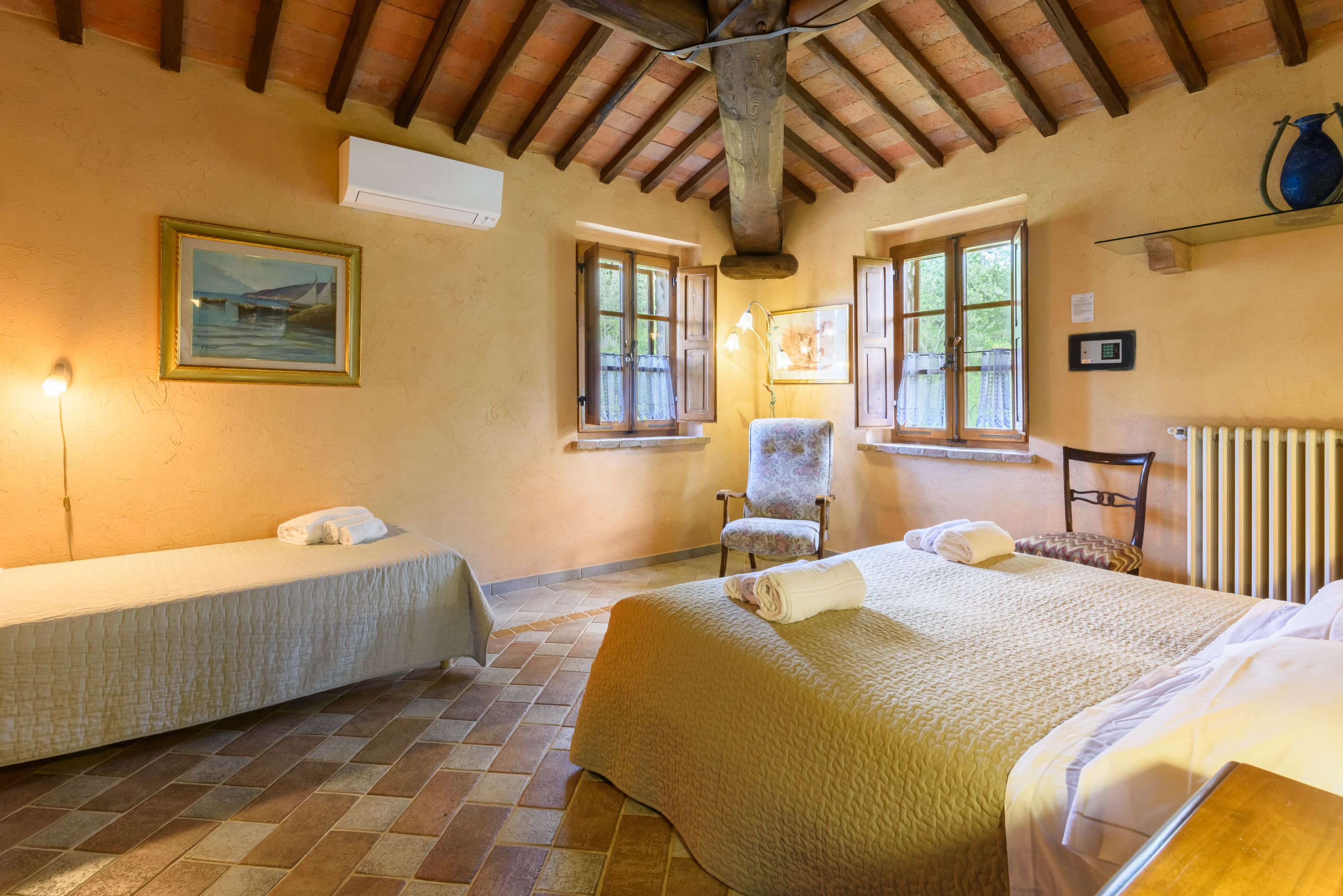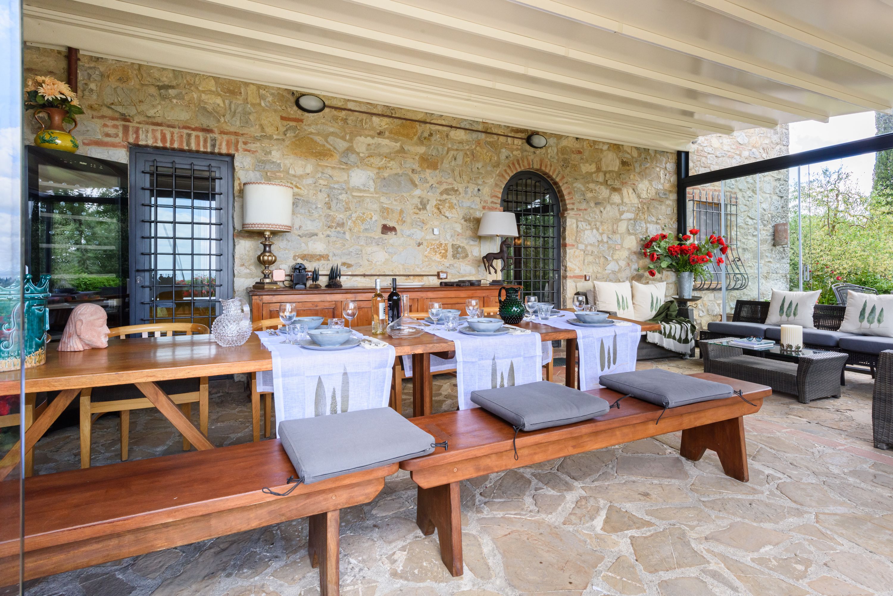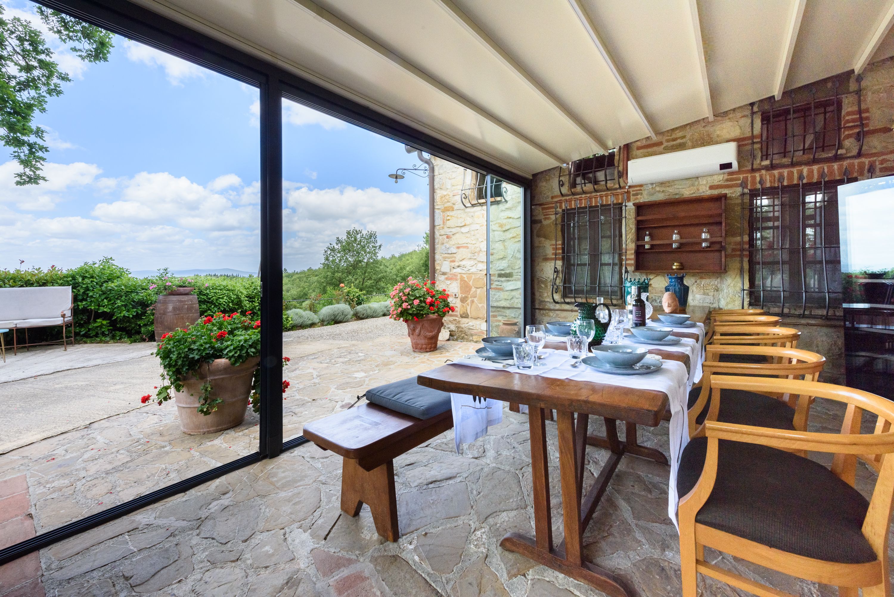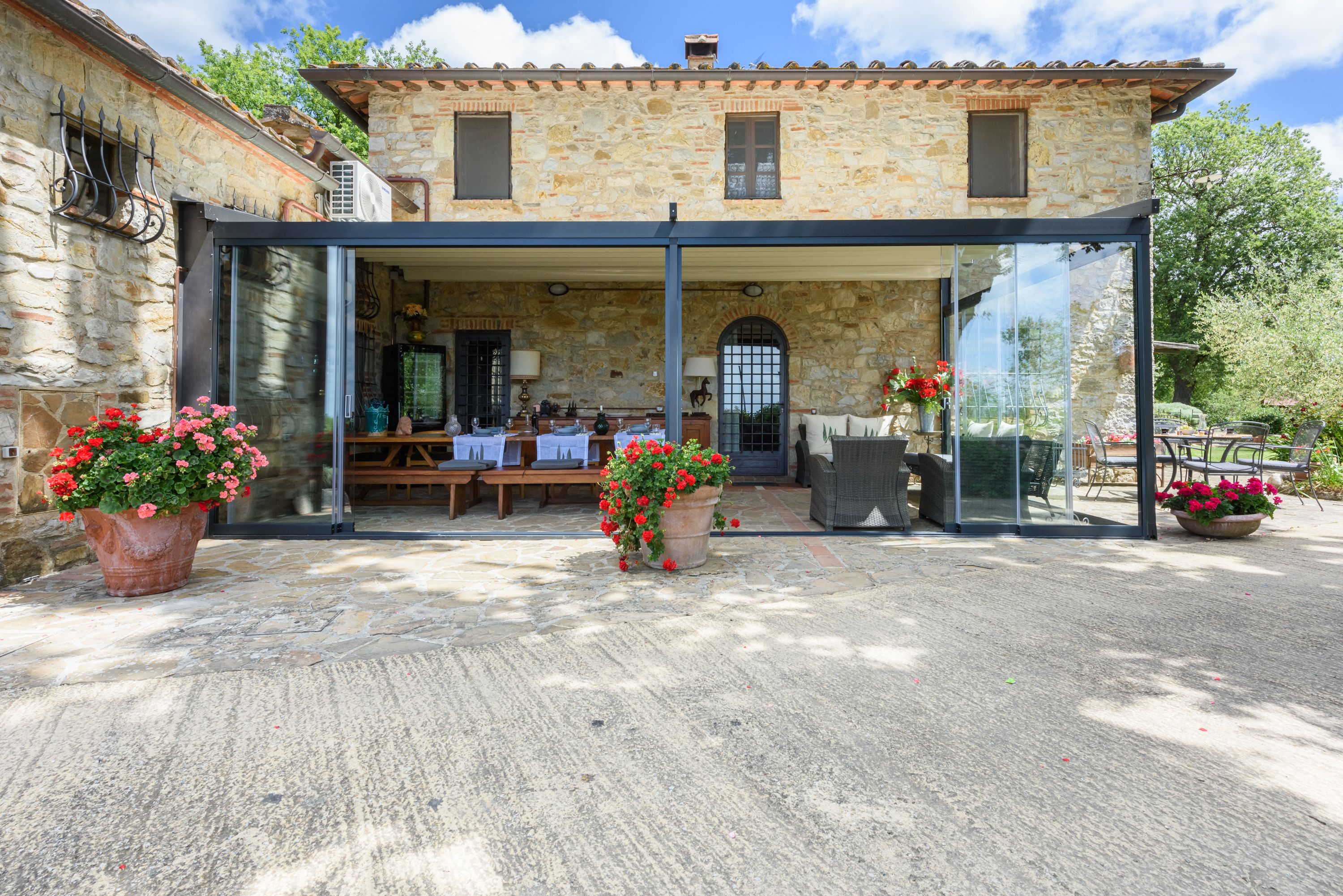 If you’re in search of a traditional Italian stay in a beautiful location, this home delivers a great solution. Nestled in a private garden overlooking the Chianti countryside, you’ll be welcomed by stunning views and a private pool with a Jacuzzi. The main house consists of three independent apartments (each with its own kitchen), while an additional annexe provides a cosy space for two guests. It’s worth noting some of the furnishings and decor are a little dated, but you will find plenty of character. Plus, you can explore some of Tuscany’s most beautiful sights. From here, it’s just a thirty-minute drive to Siena, while San Gimignano and Monteriggioni are also within driving distance.