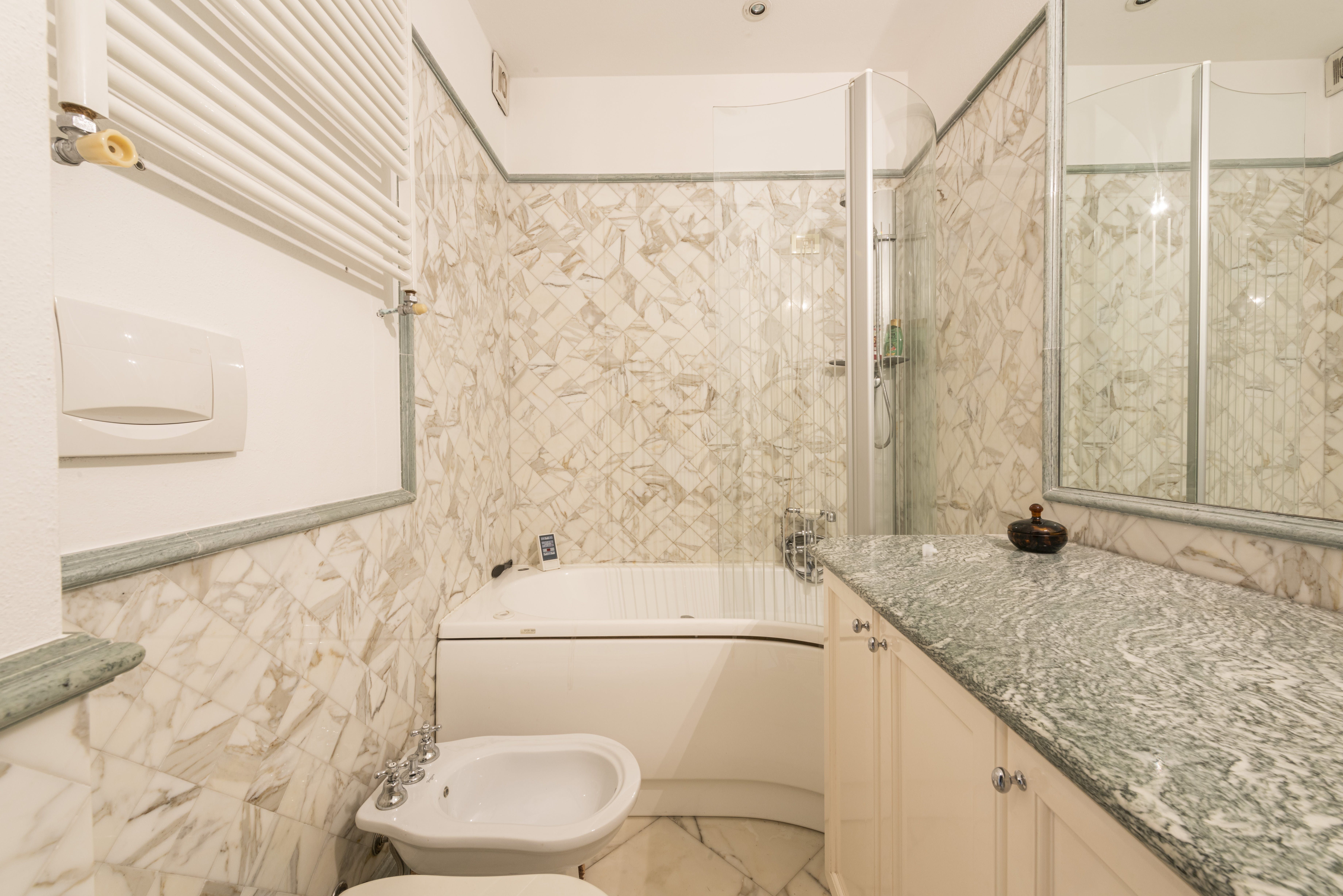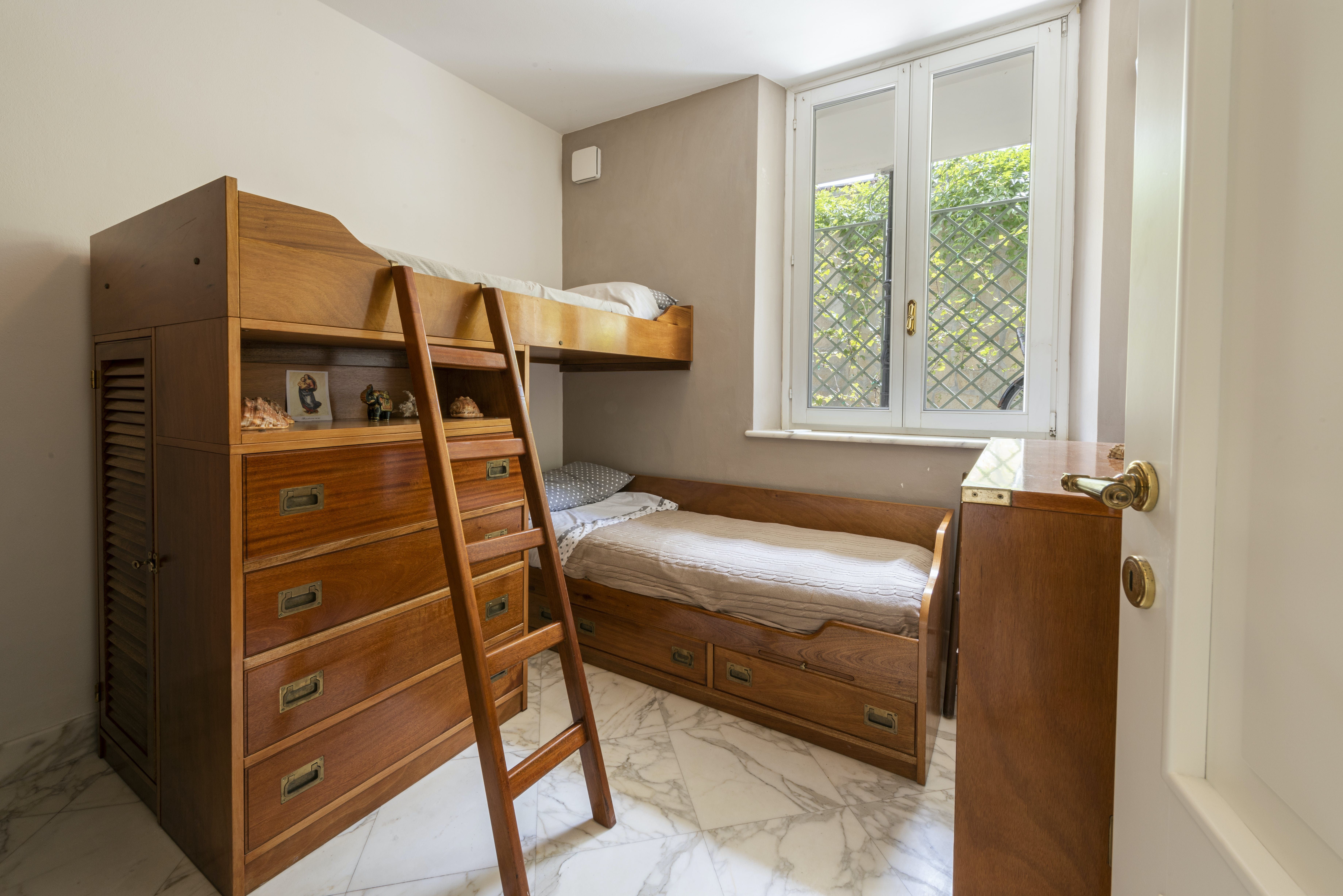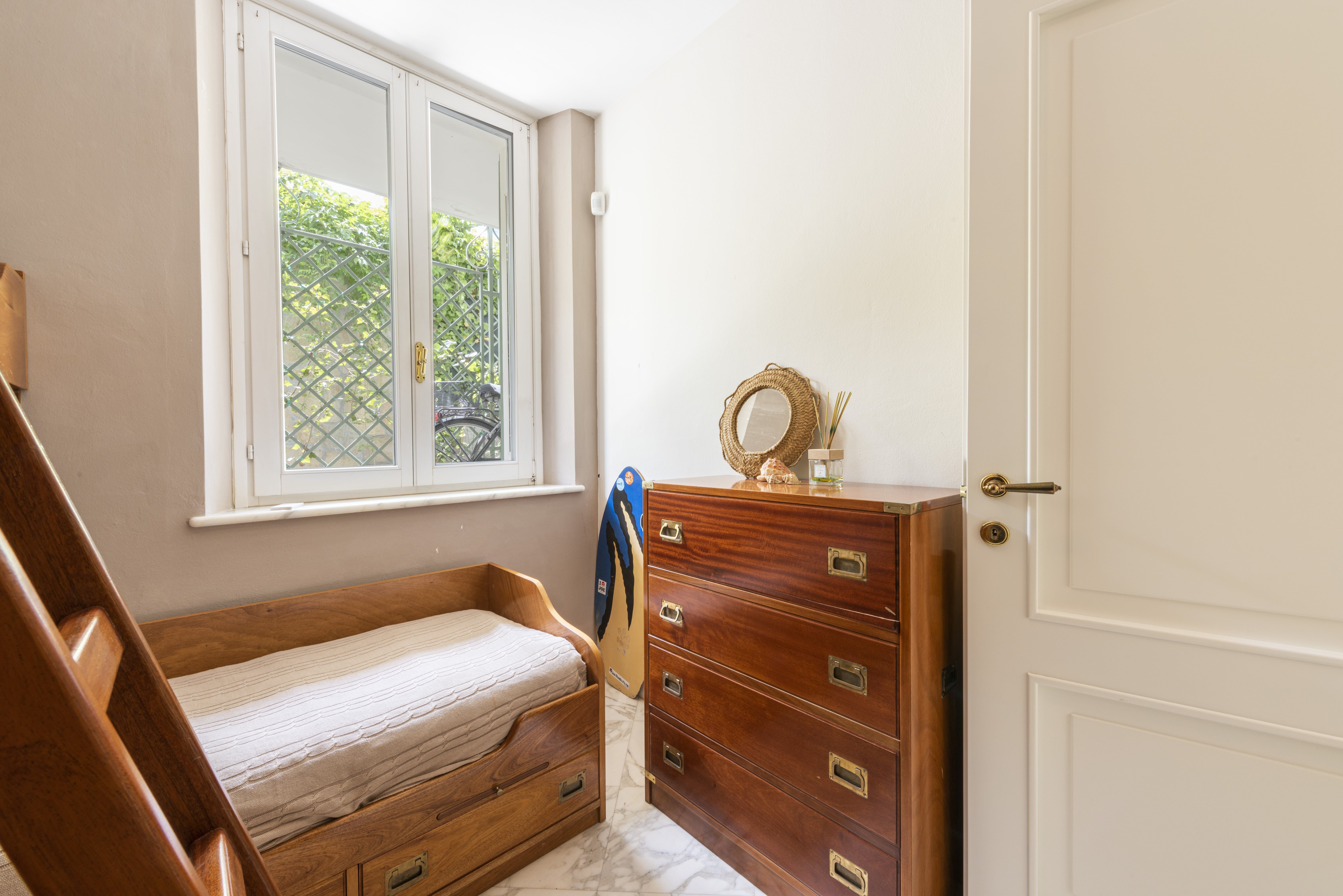 There's an air of tranquility throughout the home – you'll love getting some respite from the heat in the living room with a chilled glass of Pinot Grigio. Through in the kitchen, you can whip up your favourite Italian dishes and share your culinary creations at the smart dining table. And, there are plenty of charming details to look out for throughout the apartment, from the stained glass window to the quirky collection of antique furniture.