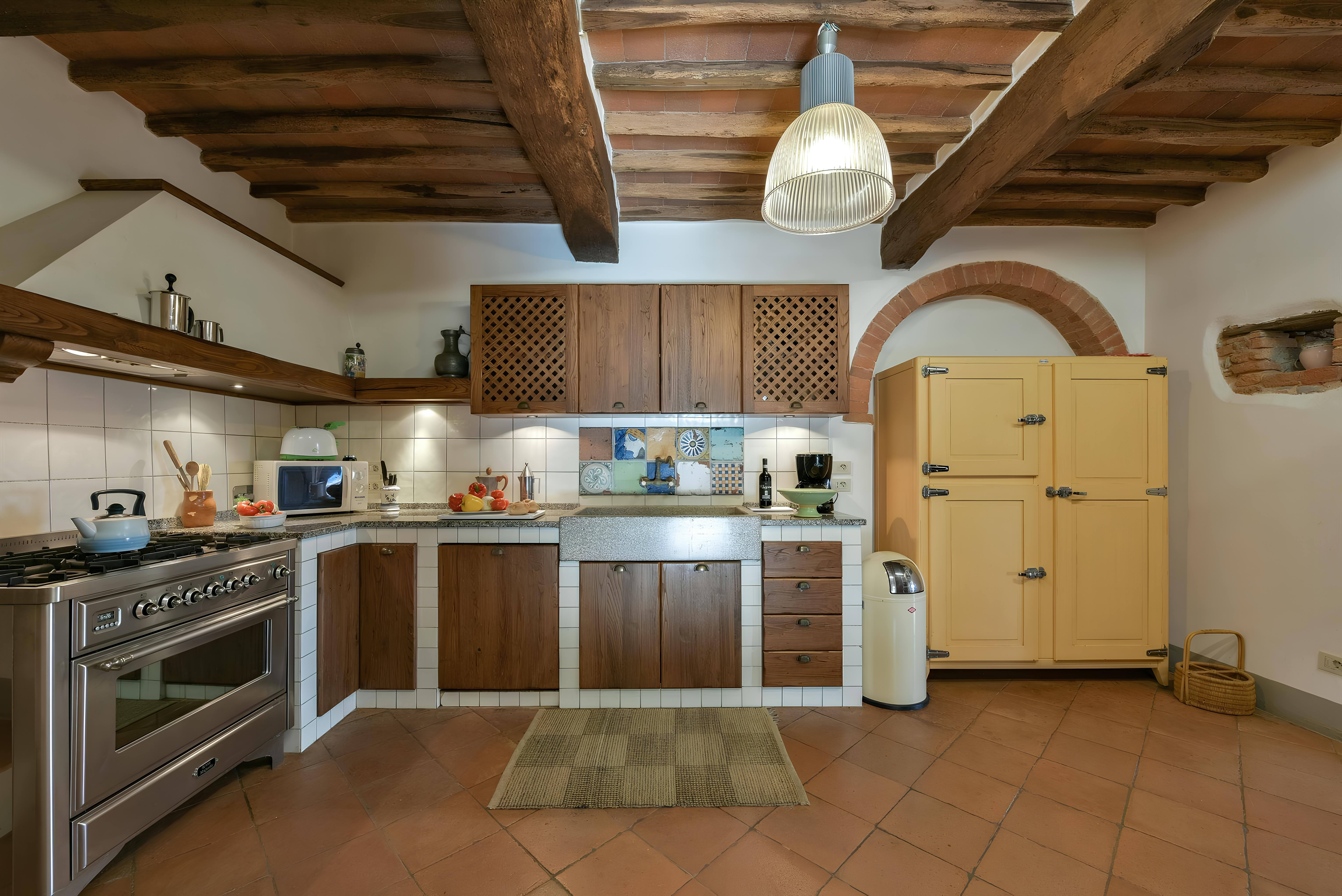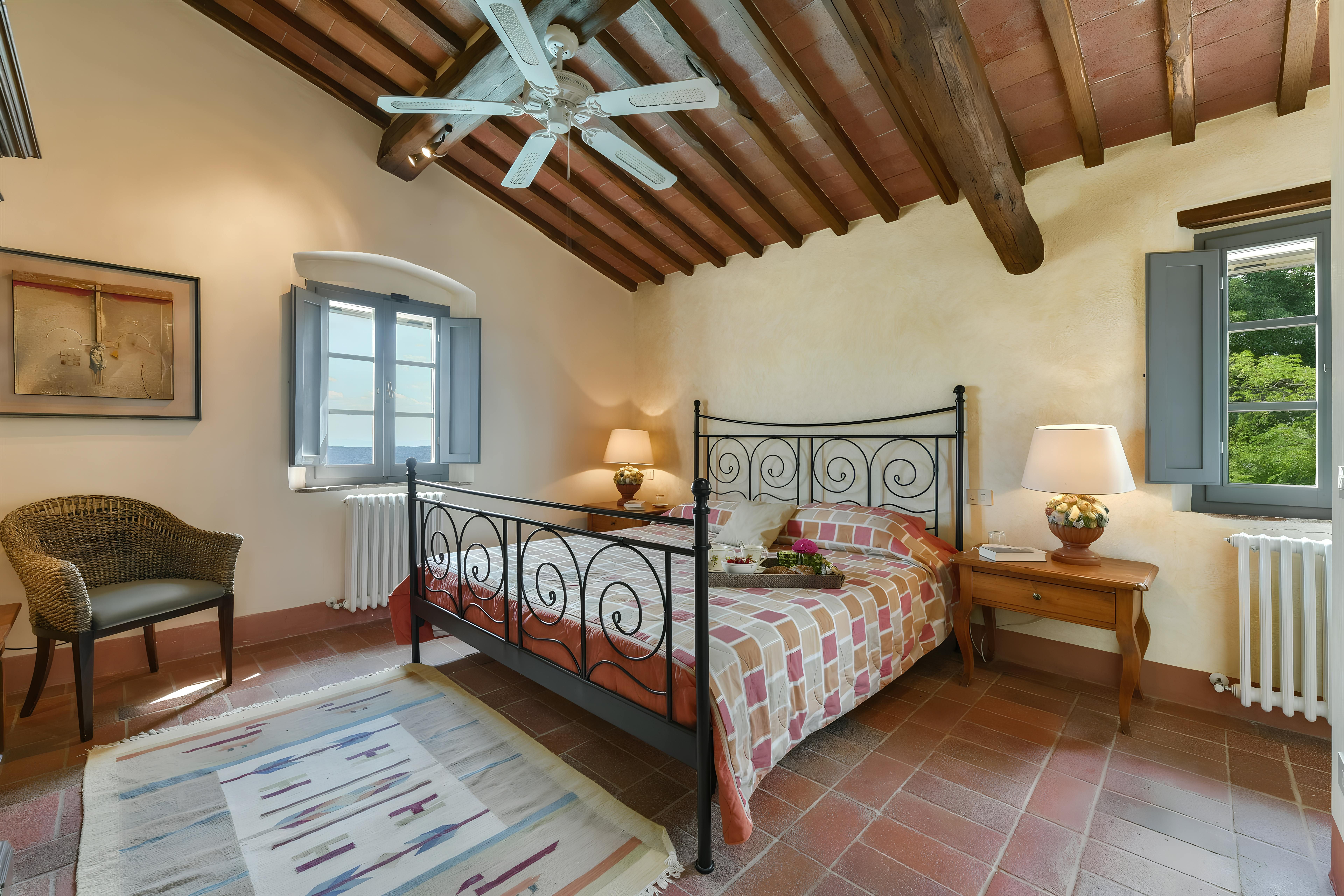 This 17th-century villa in the heart of the Chianti countryside offers far-reaching views across the vineyards and olive groves out to Siena. You're within walking distance of Lecchi, as well as being a fifteen-minute drive from Radda in Chianti for dreamy day trips exploring the region. A car is recommended to get the most out of your stay here. Outside, you'll find a well-kept garden lined with cypress trees, as well as a private pool. But our favourite spot has to be up on the dining terrace, which provides some beautiful views over the hilly surroundings and is ideal for alfresco feasts together.