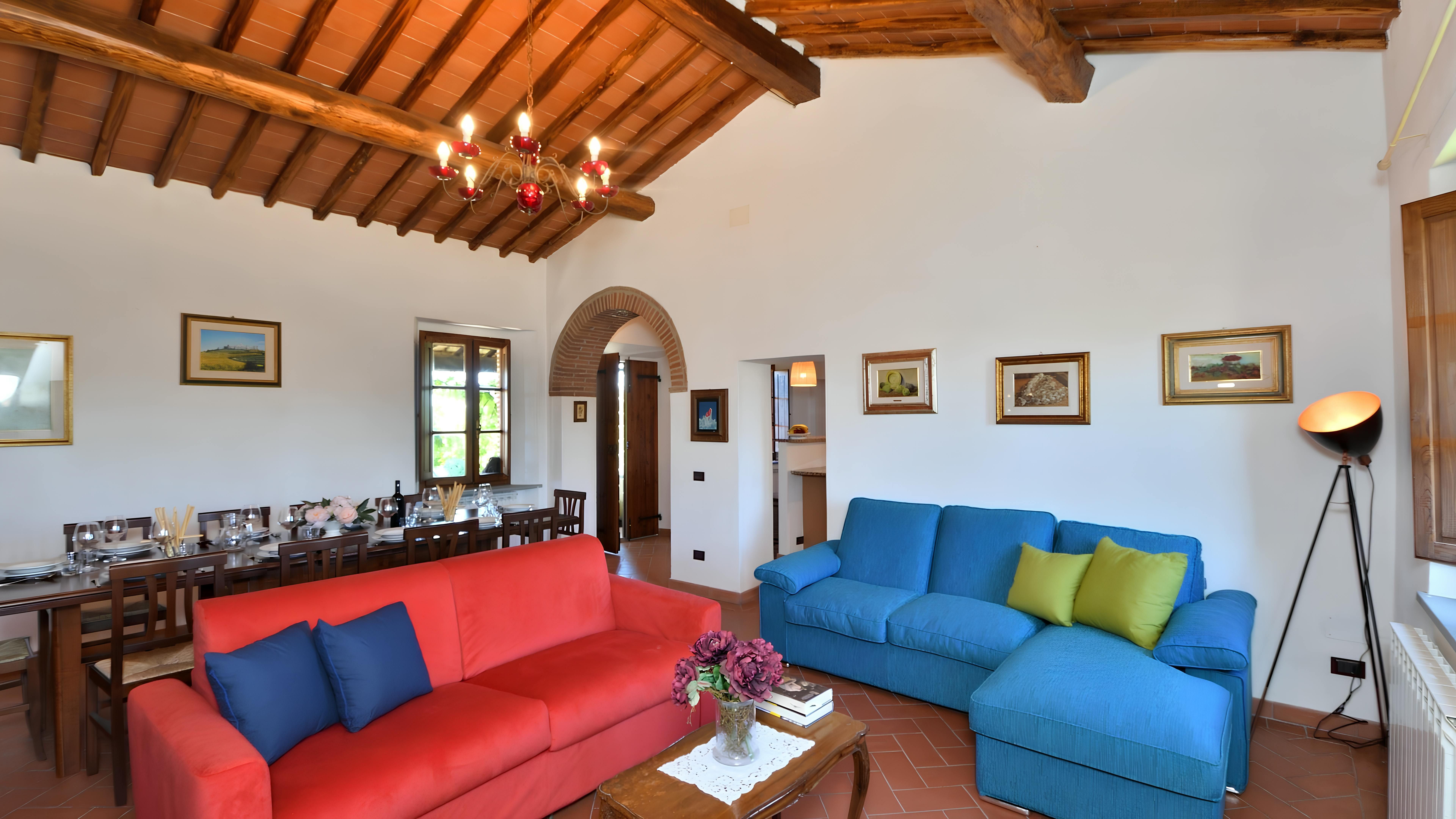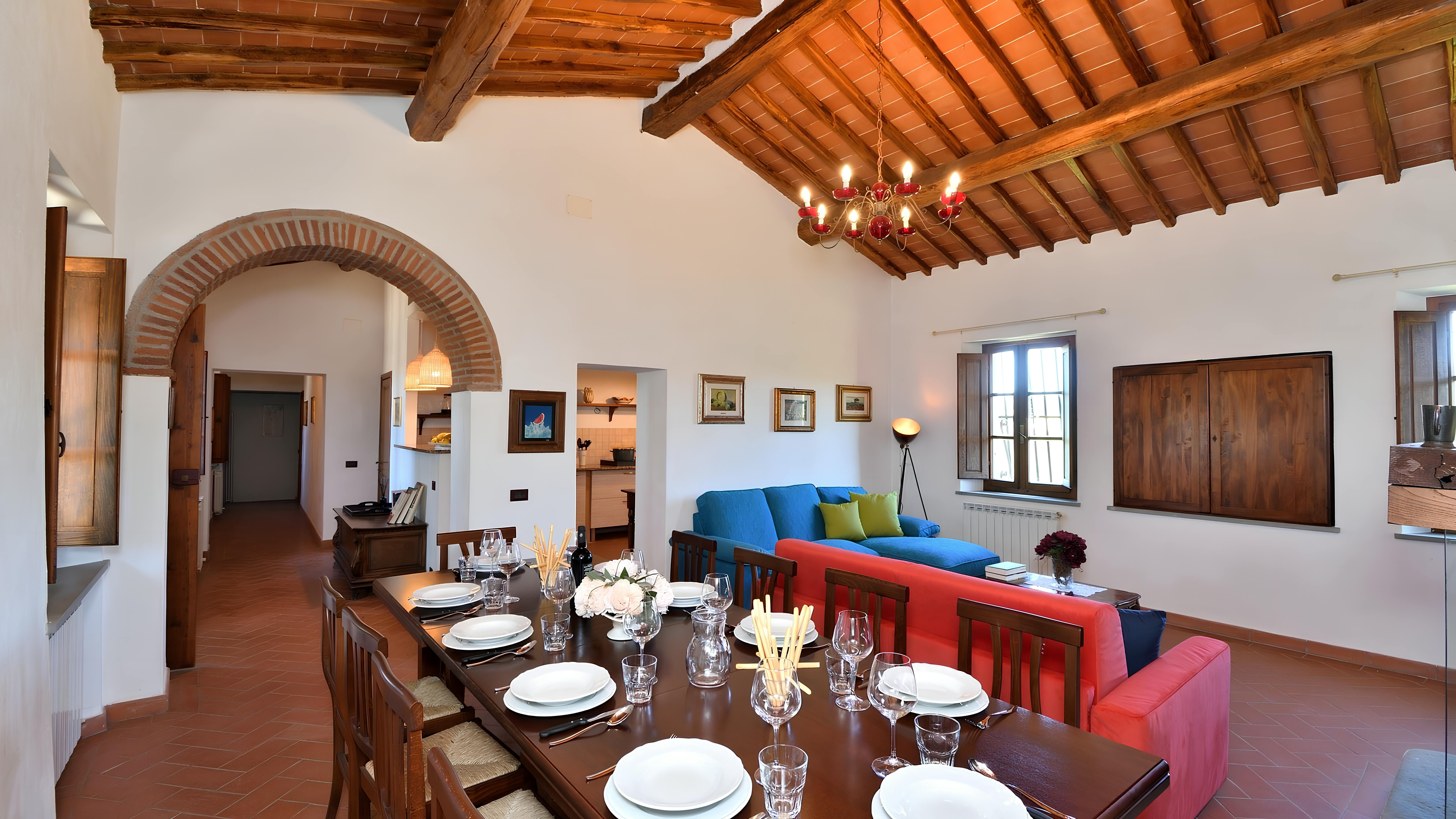 Surrounded by the rolling vistas of a famous wine estate, this Tuscan villa boasts a spacious private pool, stunning views, and space for alfresco dining. The decor is quite traditional and won't be to everyone's taste, but it's certainly not lacking in charm. Opposite the main home, you'll find a stone barn with a kitchen, dining area and second living room, ideal for family dinners. We recommend hiring a car here, with the city of Siena less than an hour's drive away – the road up to the home is unpaved and uneven though, so it won't be suitable for smaller cars.