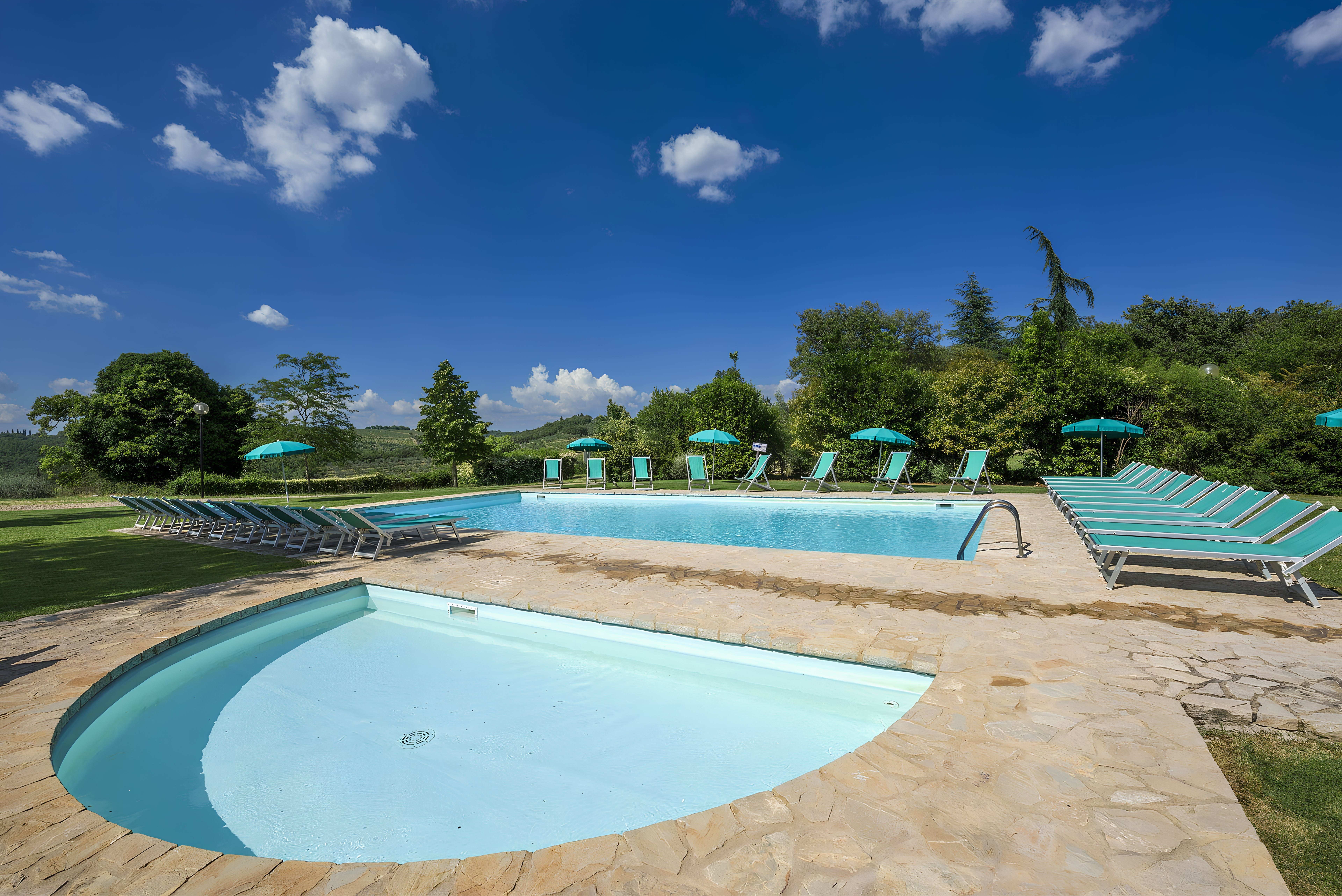 The detached cottage in the Tuscan hills boasts extensive views and a large aromatic garden with a private plunge pool and covered dining terrace. Situated in Montebuoni, a restored estate that recreates the feeling of an authentic Tuscan hamlet, the home sits on a private resort that's surrounded by natural beauty in every direction. While you'll have private use of the plunge pool, you'll also have shared access to the large communal swimming pool, a children's pool and a tennis court of the estate too. The location offers stunning views of Chianti Classico's most prestigious vineyards and is perfect for day trips to Siena, Florence, or San Gimignano.