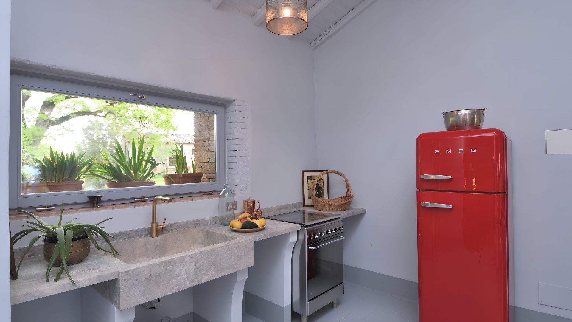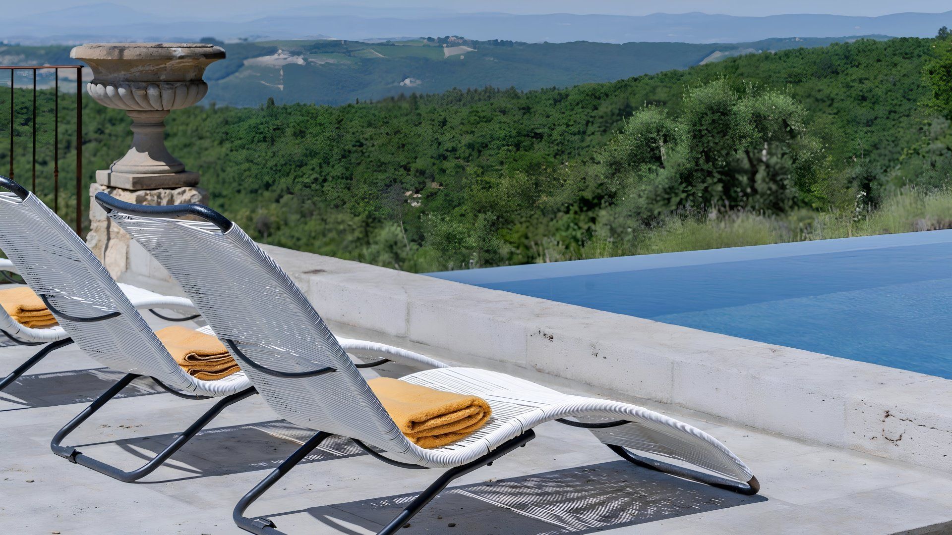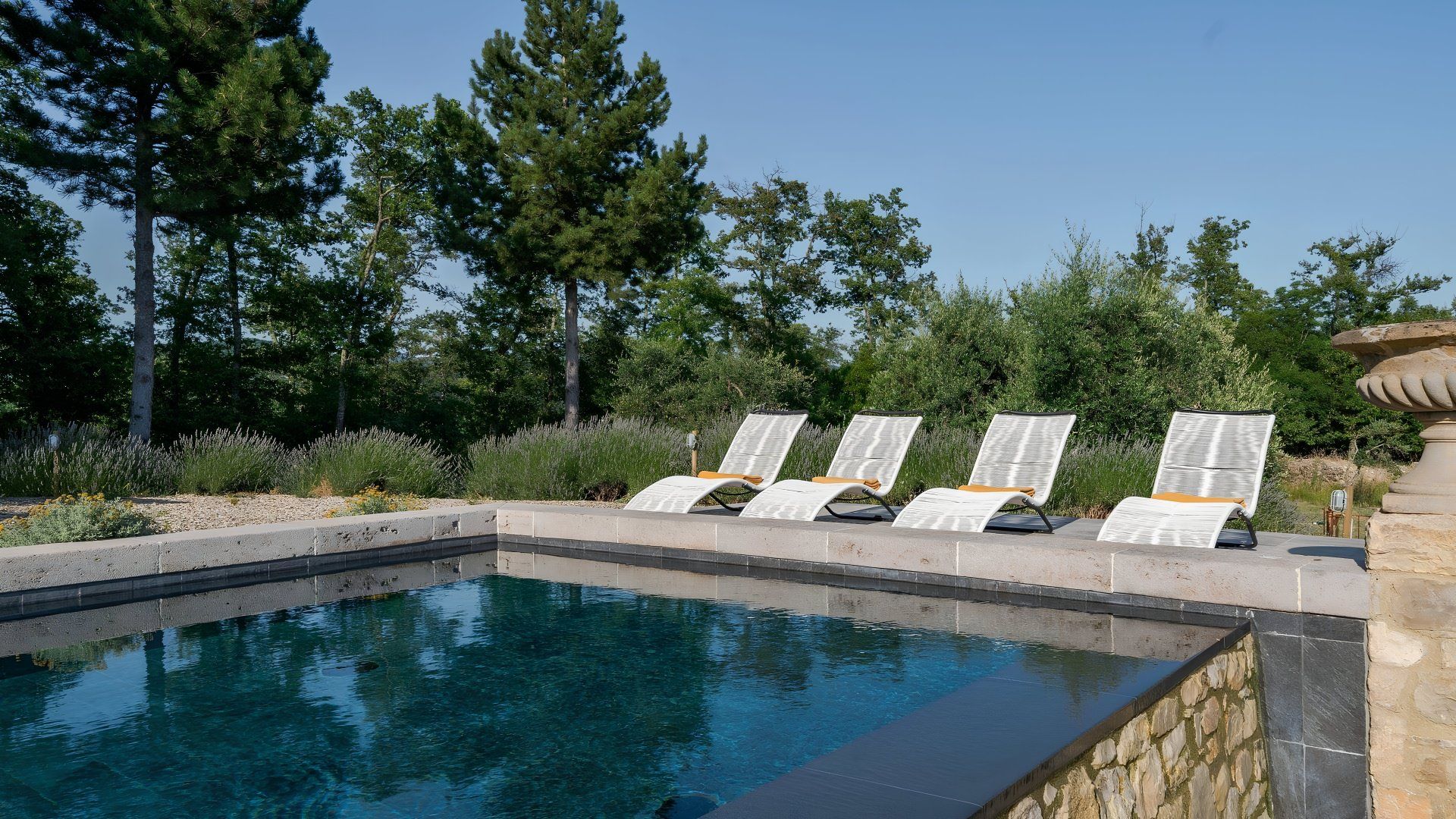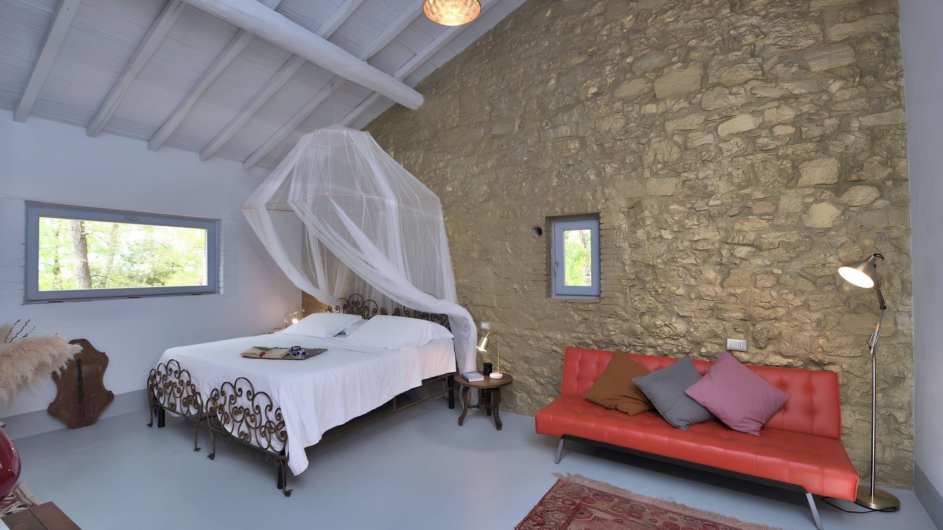 This studio apartment in a stone barn conversion is a perfect blend of modern and antique design. We love the infinity pool (40 metres away) which overlooks the Val d'Orcia, offering breathtaking views. It’s surrounded by wild plants and shrubs that reflect the forested land beyond. The owner’s live in the main house with their two friendly dogs and they occasionally use the pool when the area is unattended by guests. The private furnished terrace and outdoor lounge area here is a lovely spot for a glass of wine. If you prefer to be a bit more active, there are endless trails and routes for walkers and bikers, while the pretty village of Gaiole is 11 kilometres away.