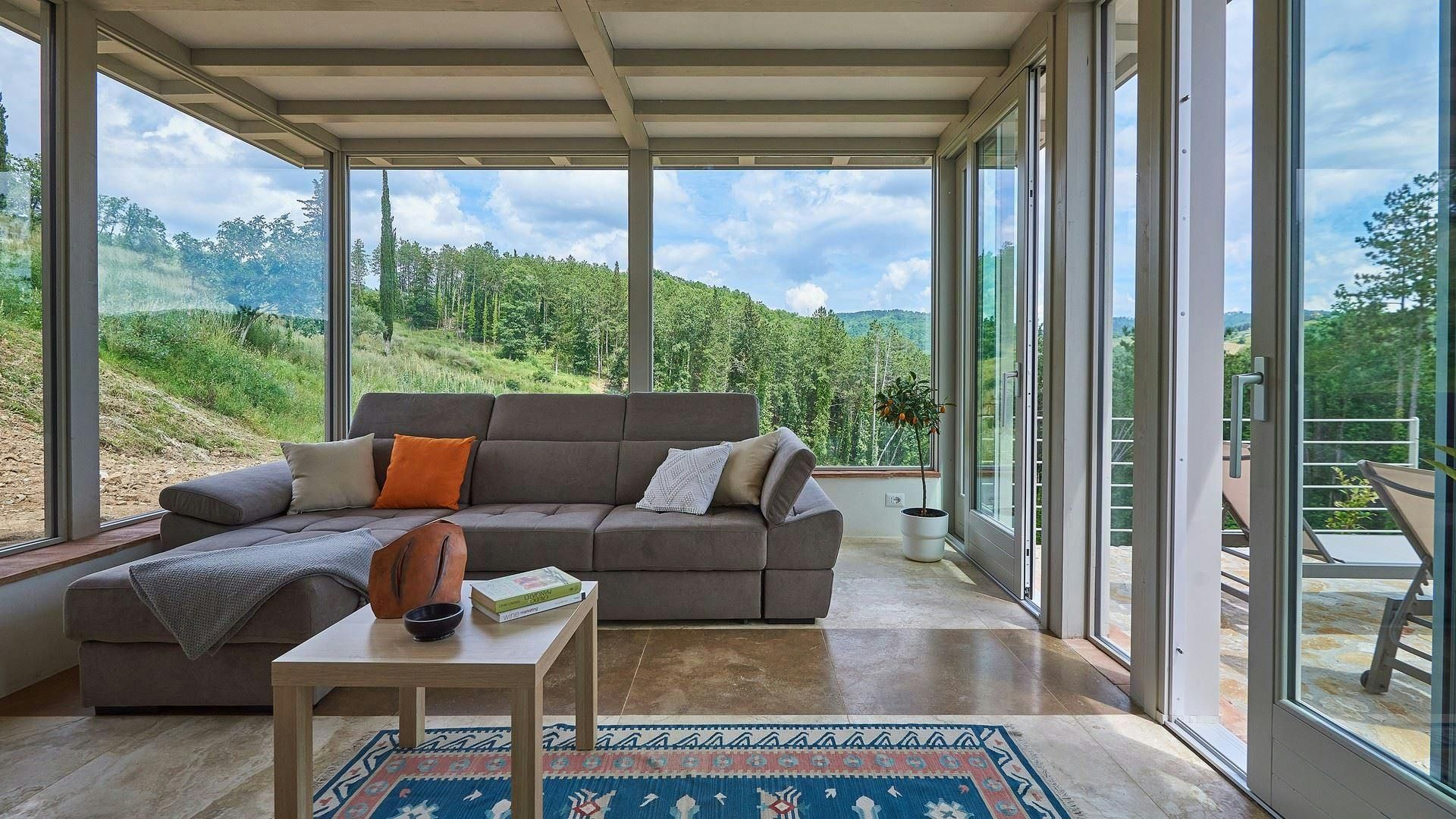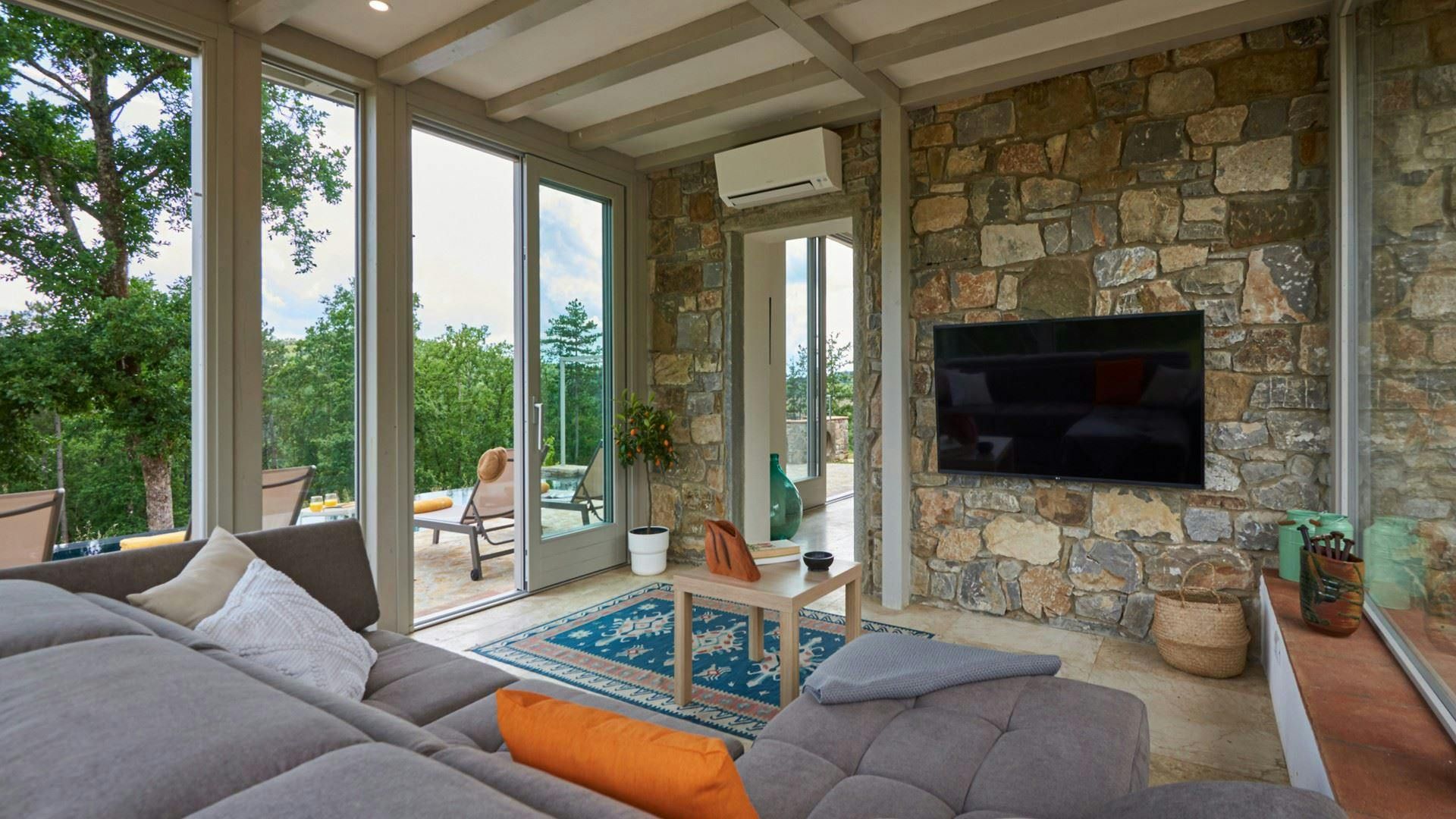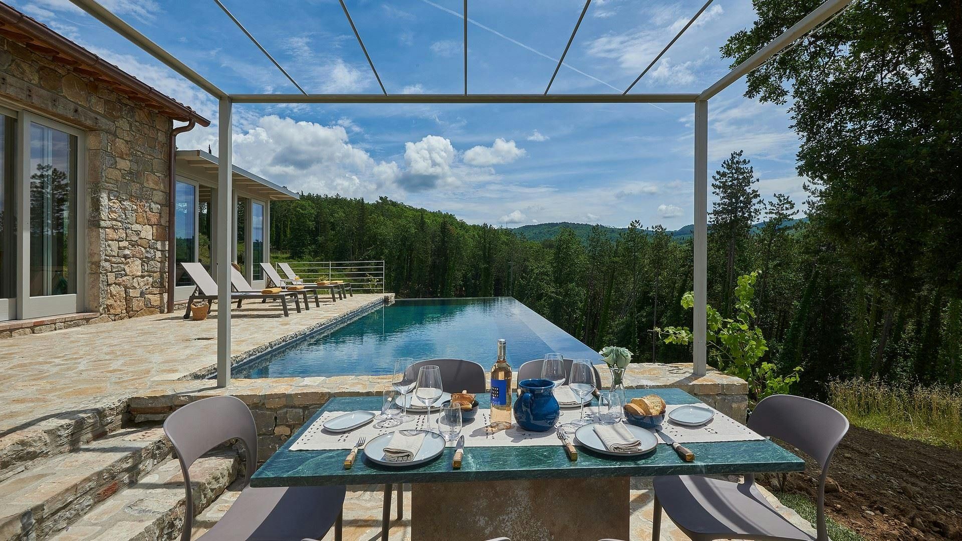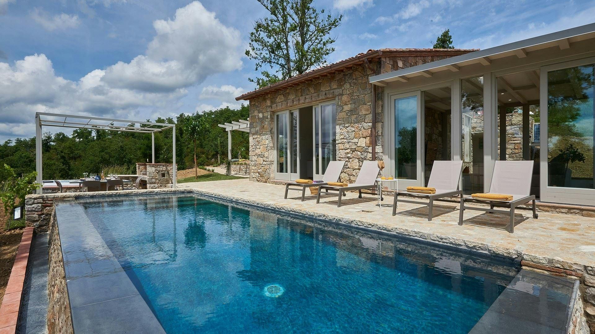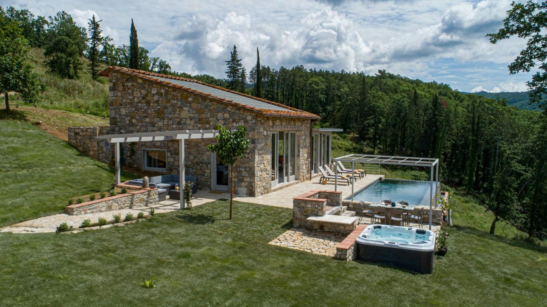 If you’re looking for an escape from it all, this could be the home for you. Set on a private road deep in the woods, this Chianti villa has tranquillity running through its core. We love the seamless blend of modern furniture with the traditional building here, but the outdoor space is our biggest winner. Sun-kissed terraces, a hot tub, a private pool, alfresco dining areas – what’s not to love? If you can tear yourself away, it’s a mere ten-minute drive to the wine-making town of Gaiole, which is well worth a visit.