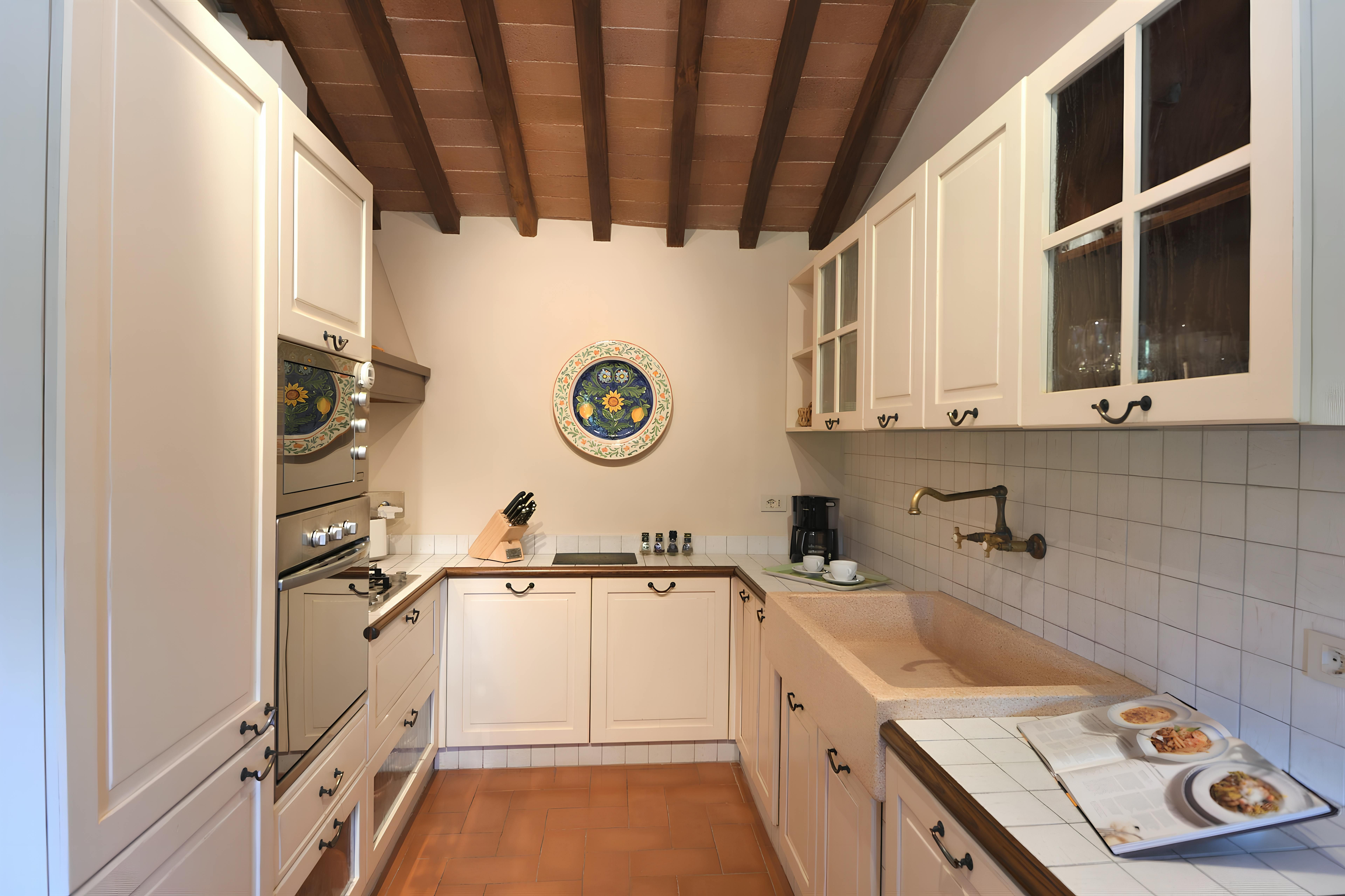 Set in a hamlet among vine-covered hills, this home is one of eleven houses, with origins dating back to 1400. There’s a flower and plant-filled private garden and shaded terrace perfect for alfresco meals, while the beautiful large pool is shared – it’s located a short stroll from the home and has incredible views. Inside the cottage, it’s quite traditionally styled, as you’d expect and there’s a fireplace, for when the weather turns cold. With all the wonderful vistas, you may be happy staying put, but that would be a shame, as the charming town of Radda with its narrow cobbled streets, is just a few kilometres away.