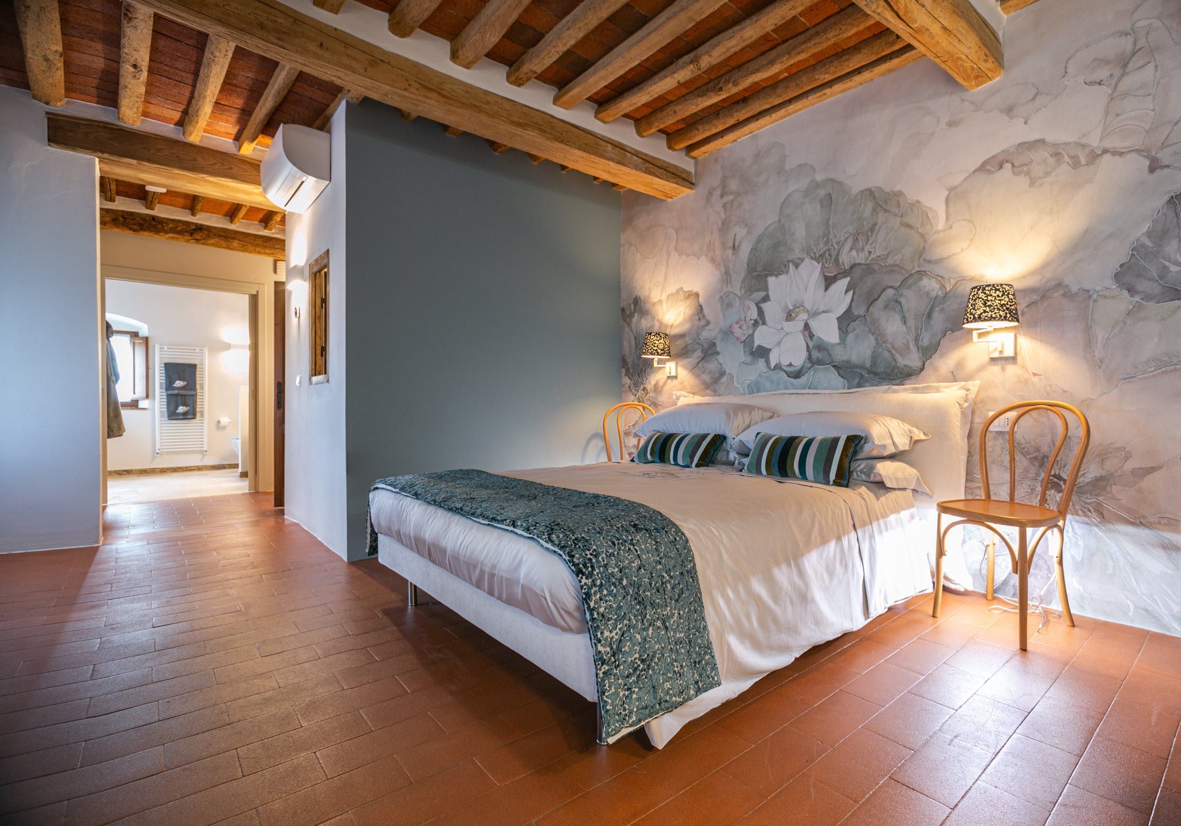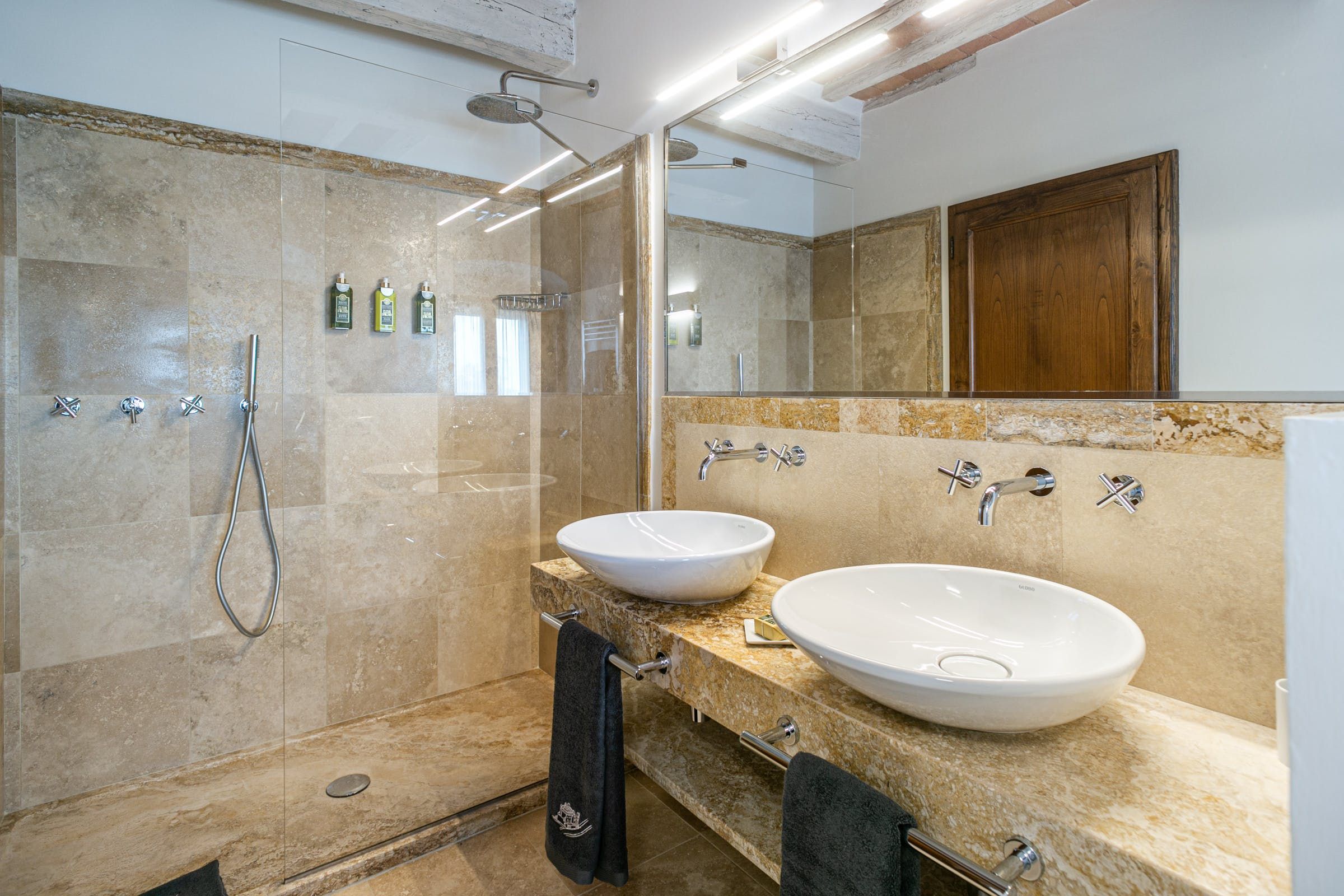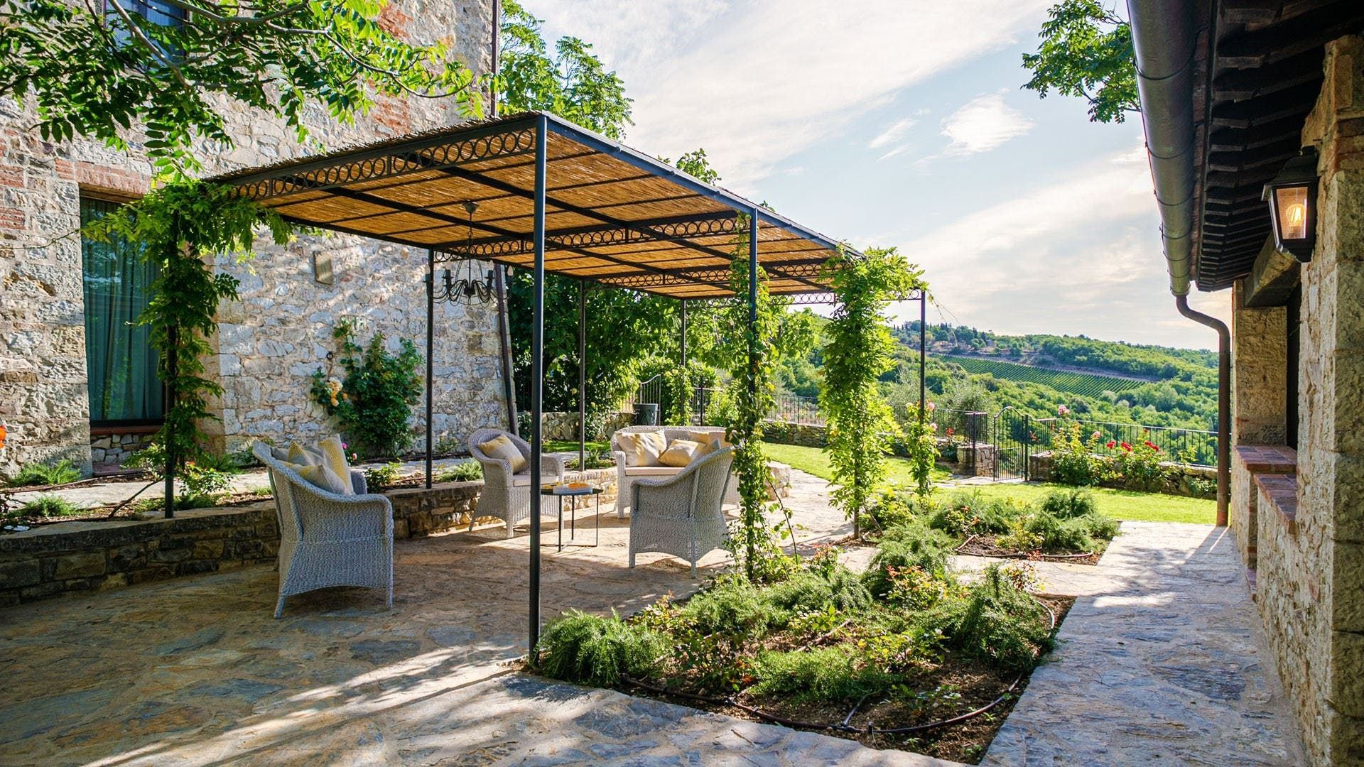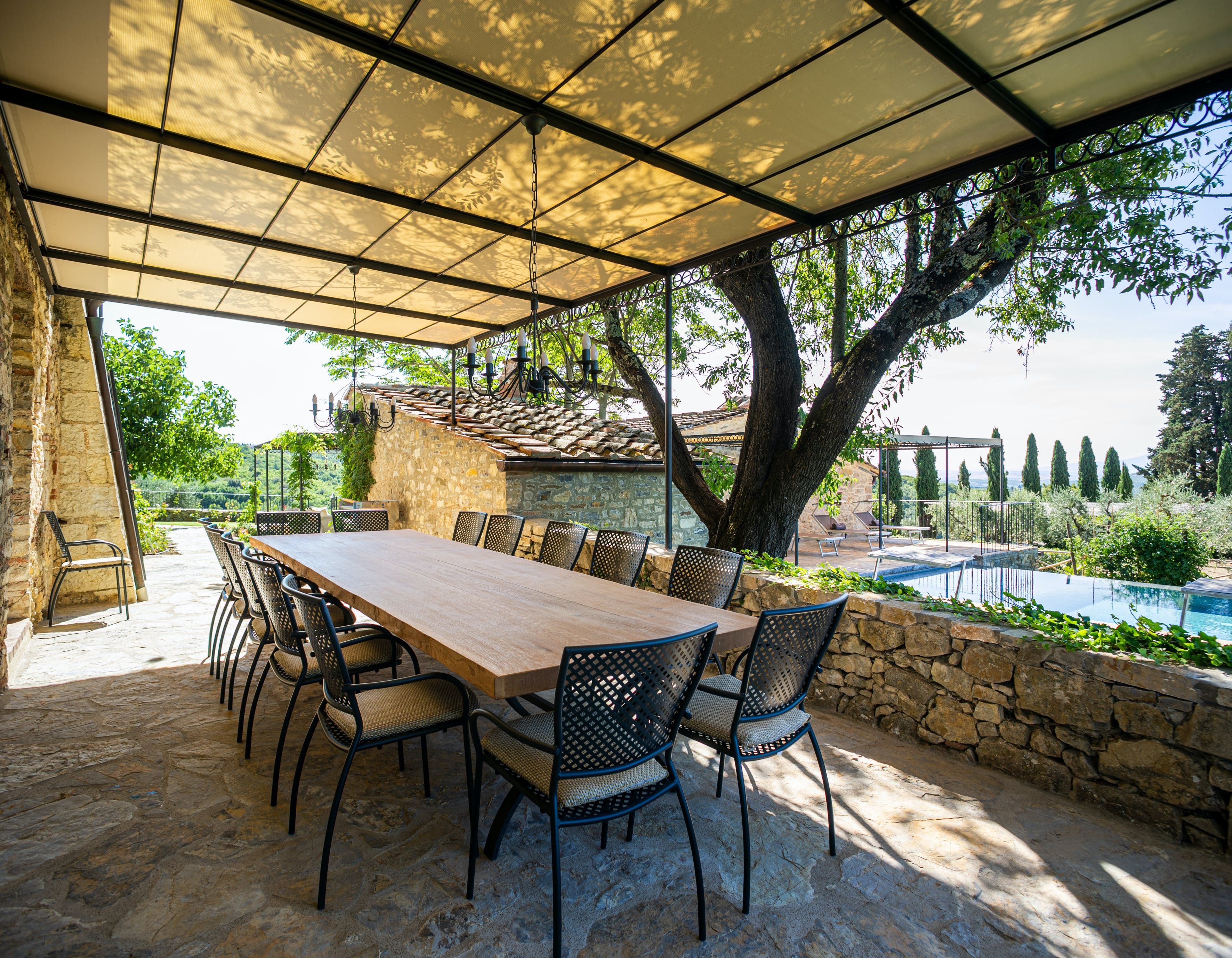 To say this luxury handcrafted stone villa took our breath away, well, that's an understatement. This place is enchanting with its vistas over a patchwork of Chianti Classico vineyards, olive groves, and oak forests. Relax by the pool or have a stroll around the vegetable garden and take in the fragrance of the Mediterranean herbs. Our favourite spot has to be the spa area with a sauna, Turkish bath, shower and relaxation zone to one side and pizza oven to the other.