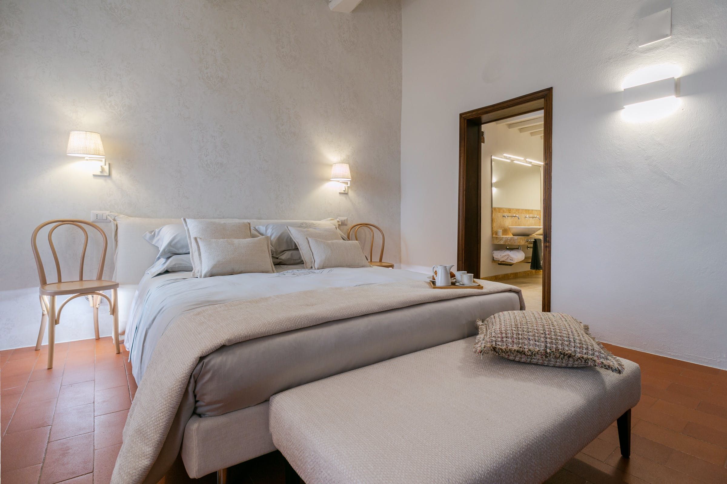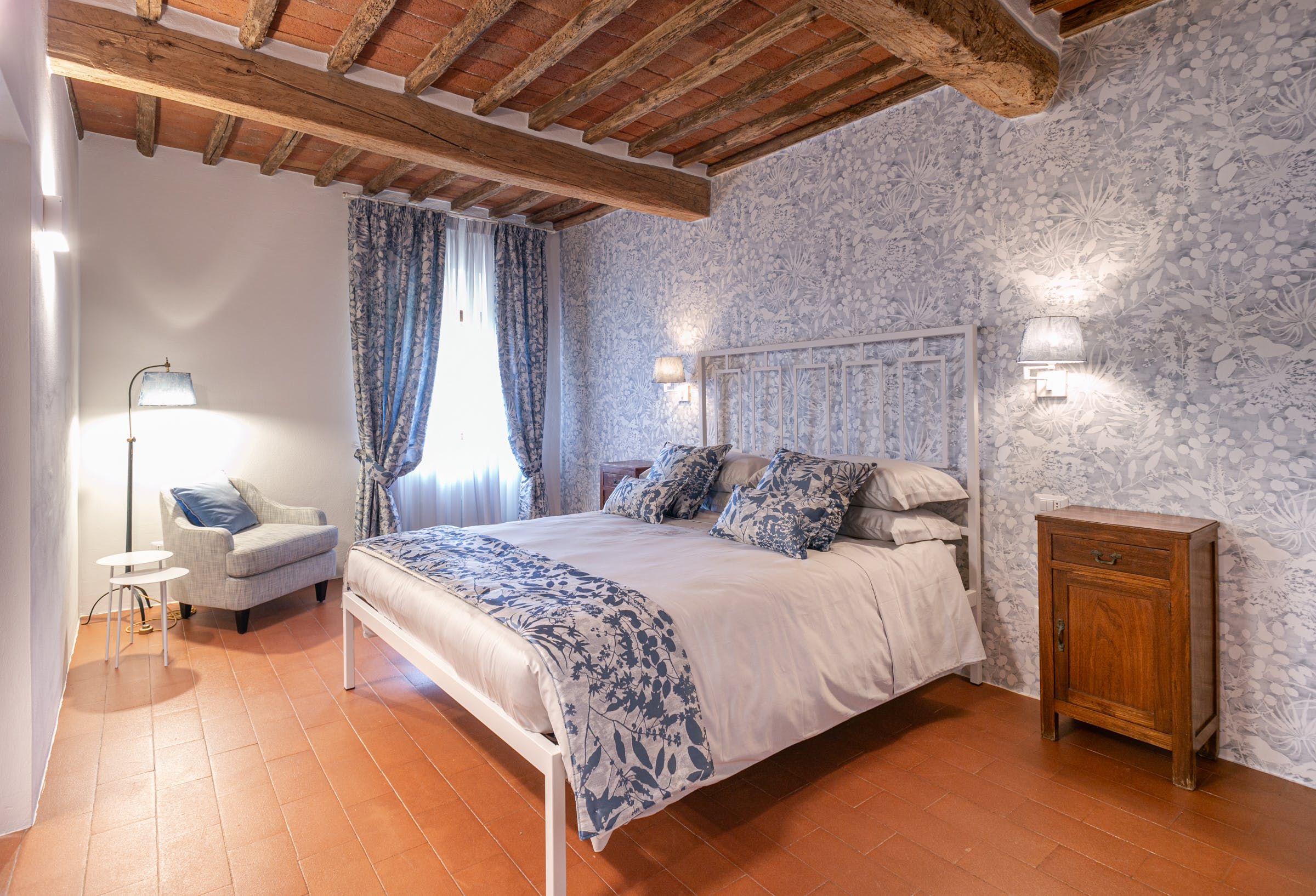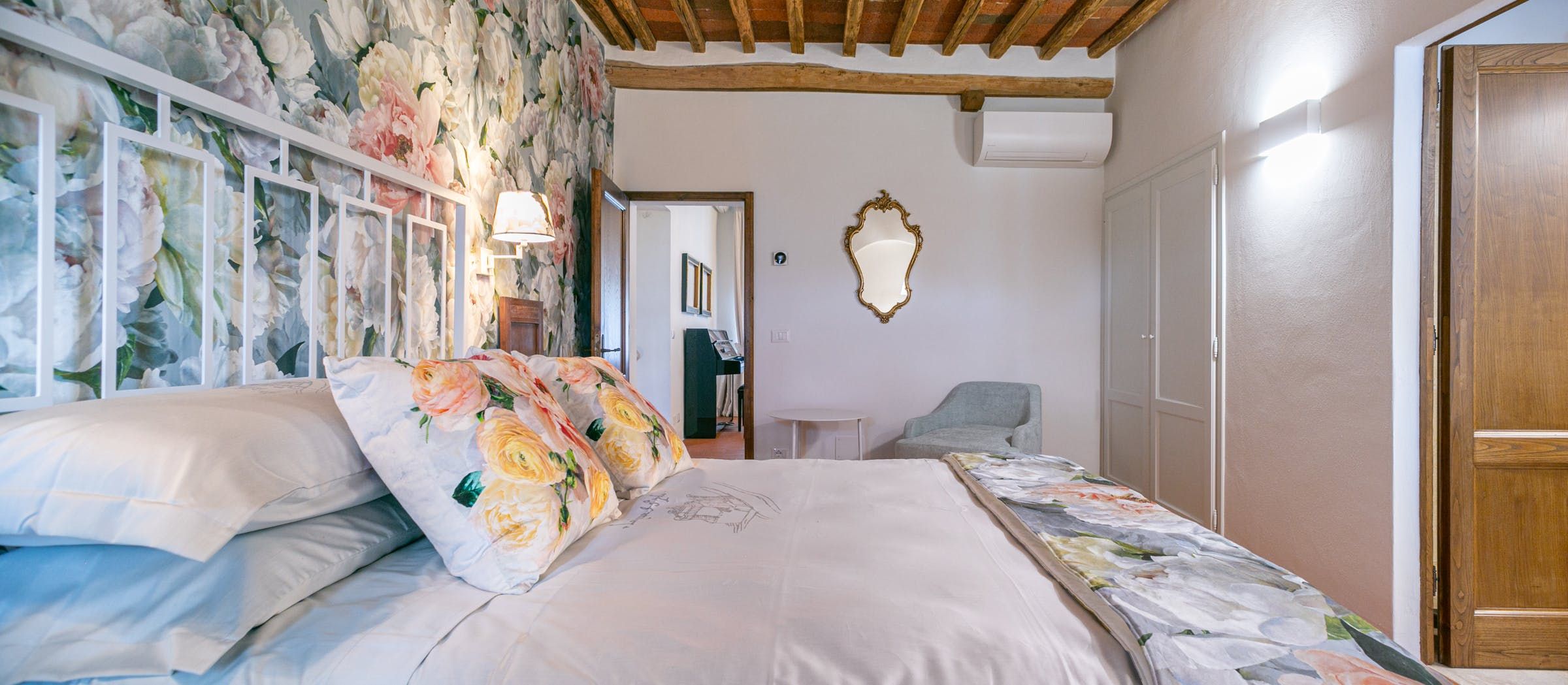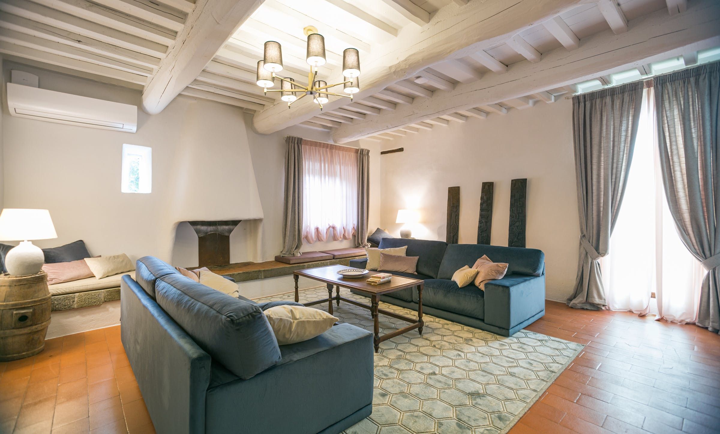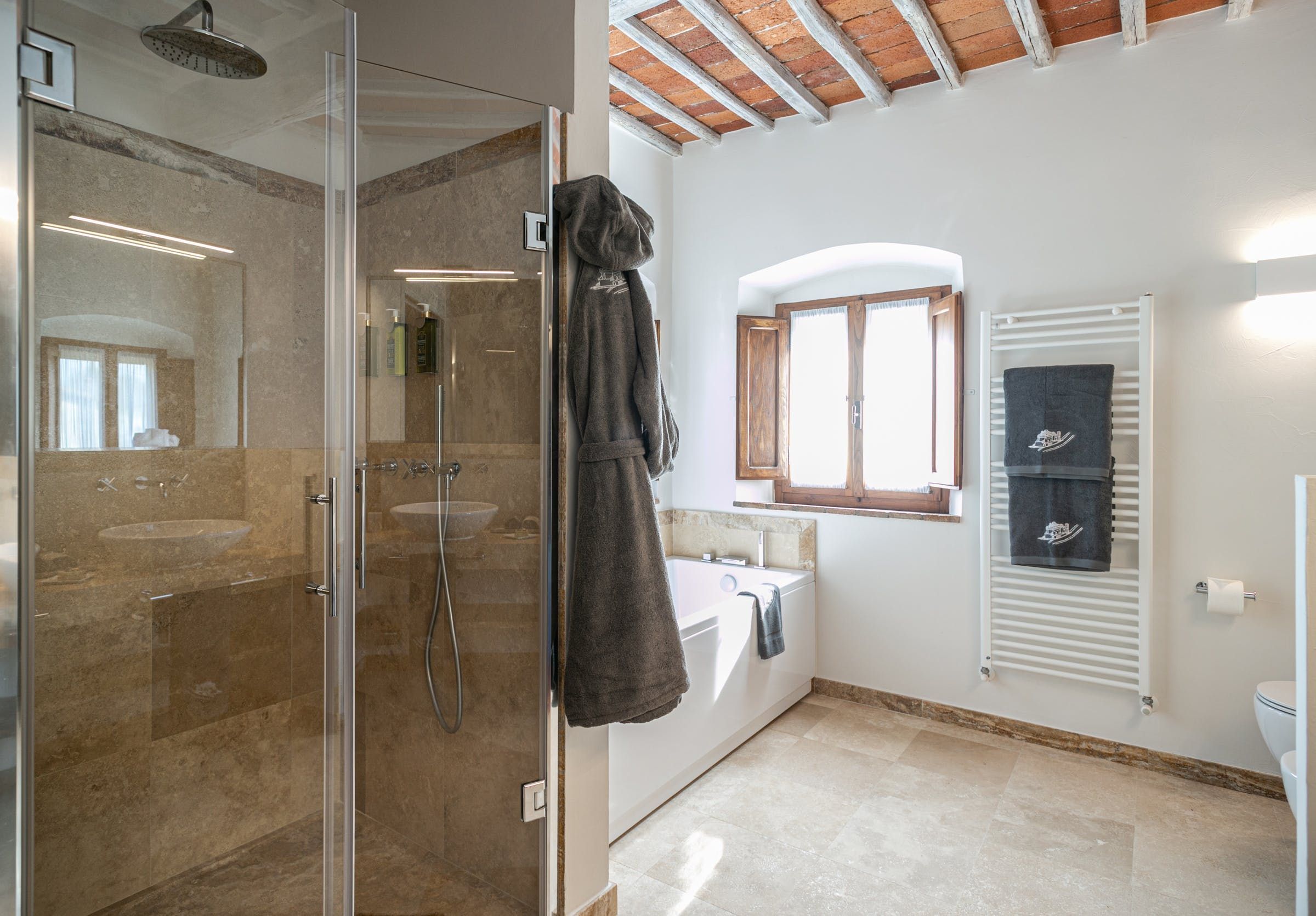 To say this luxury handcrafted stone villa took our breath away, well, that's an understatement. This place is enchanting with its vistas over a patchwork of Chianti Classico vineyards, olive groves, and oak forests. Relax by the pool or have a stroll around the vegetable garden and take in the fragrance of the Mediterranean herbs. Our favourite spot has to be the spa area with a sauna, Turkish bath, shower and relaxation zone to one side and pizza oven to the other.