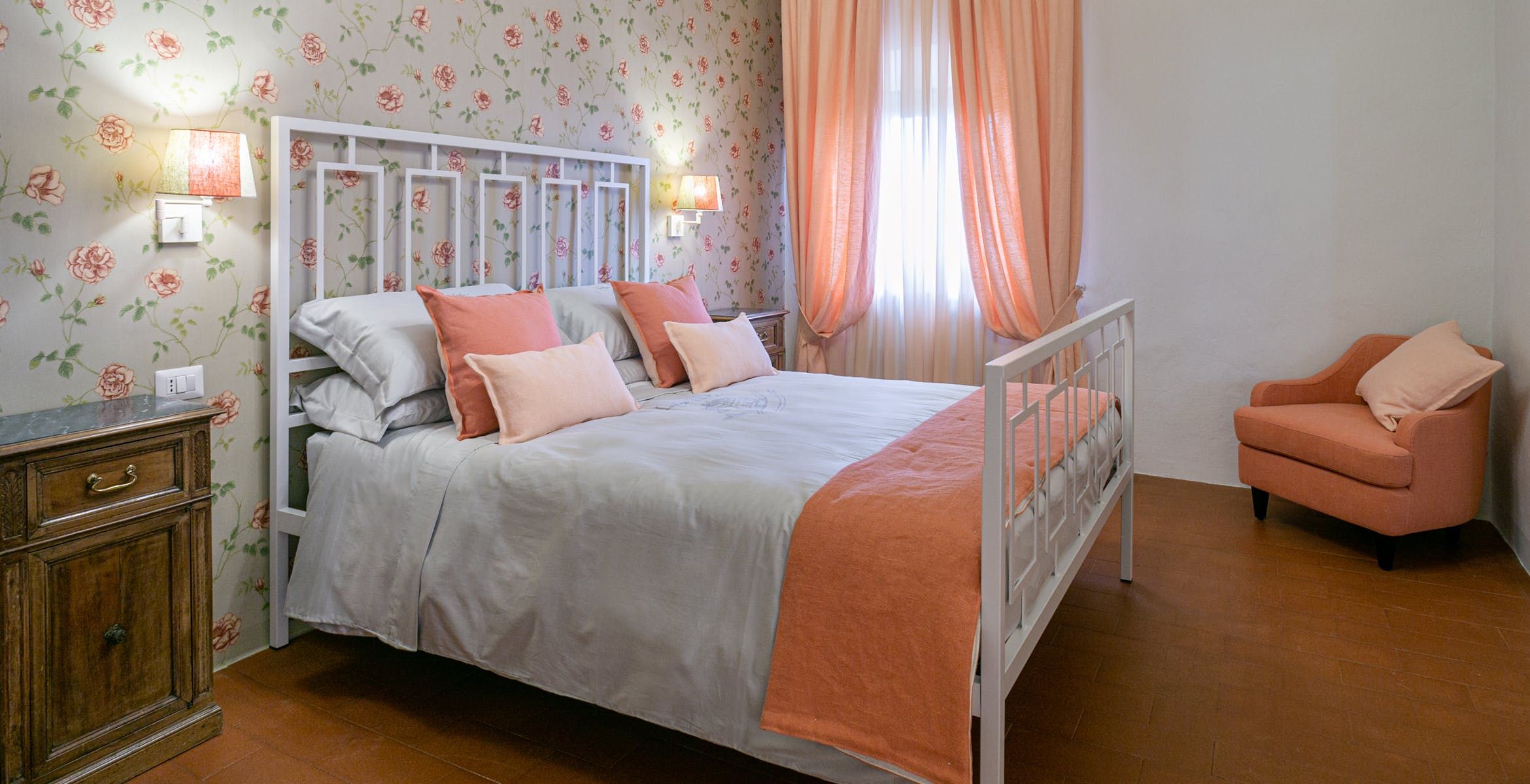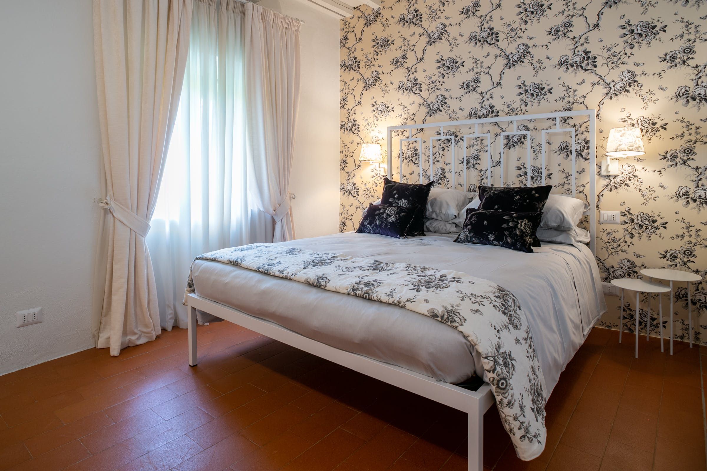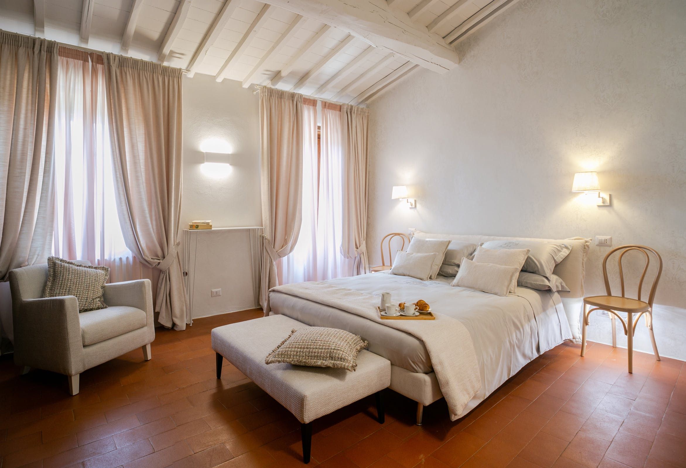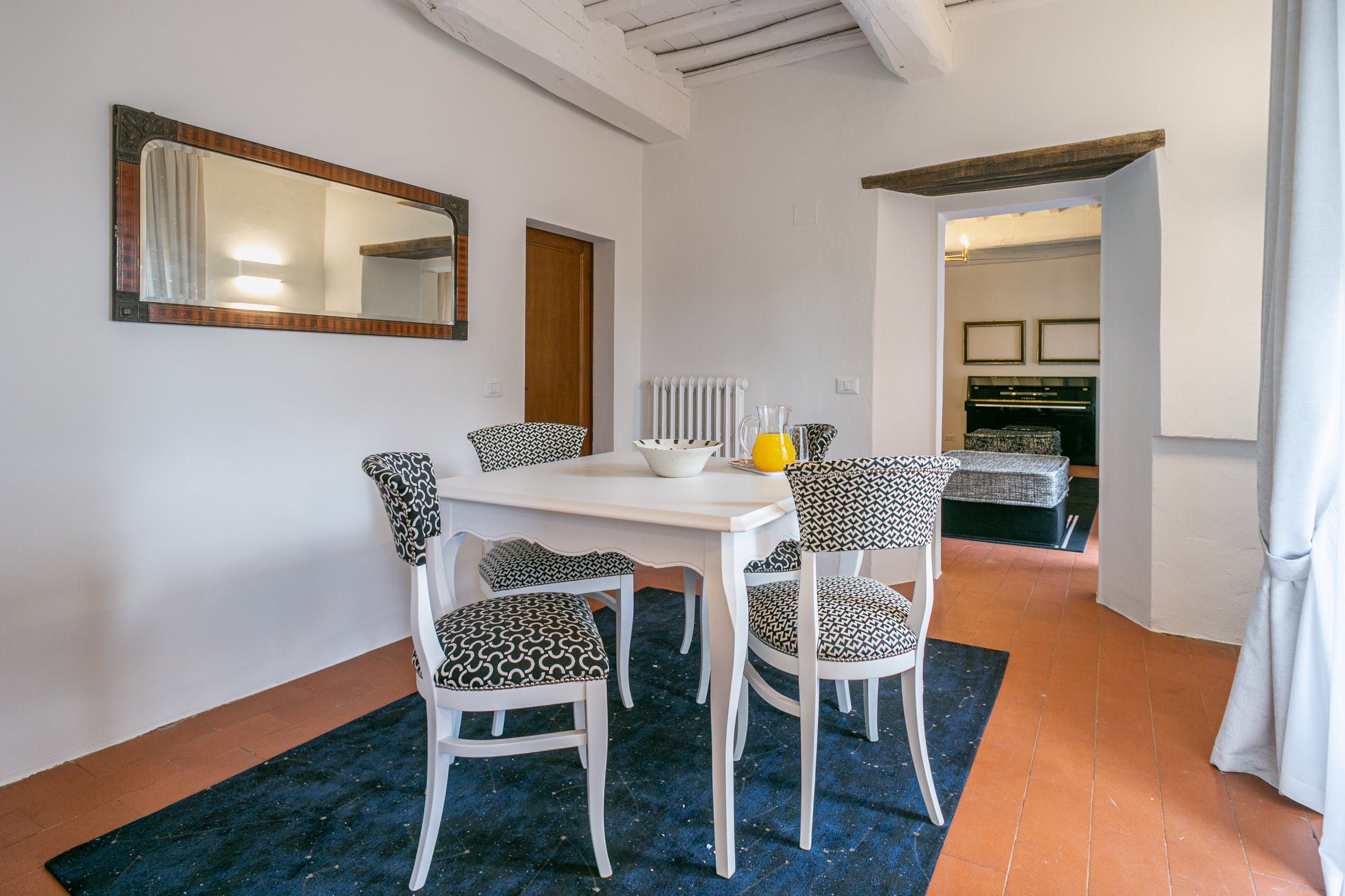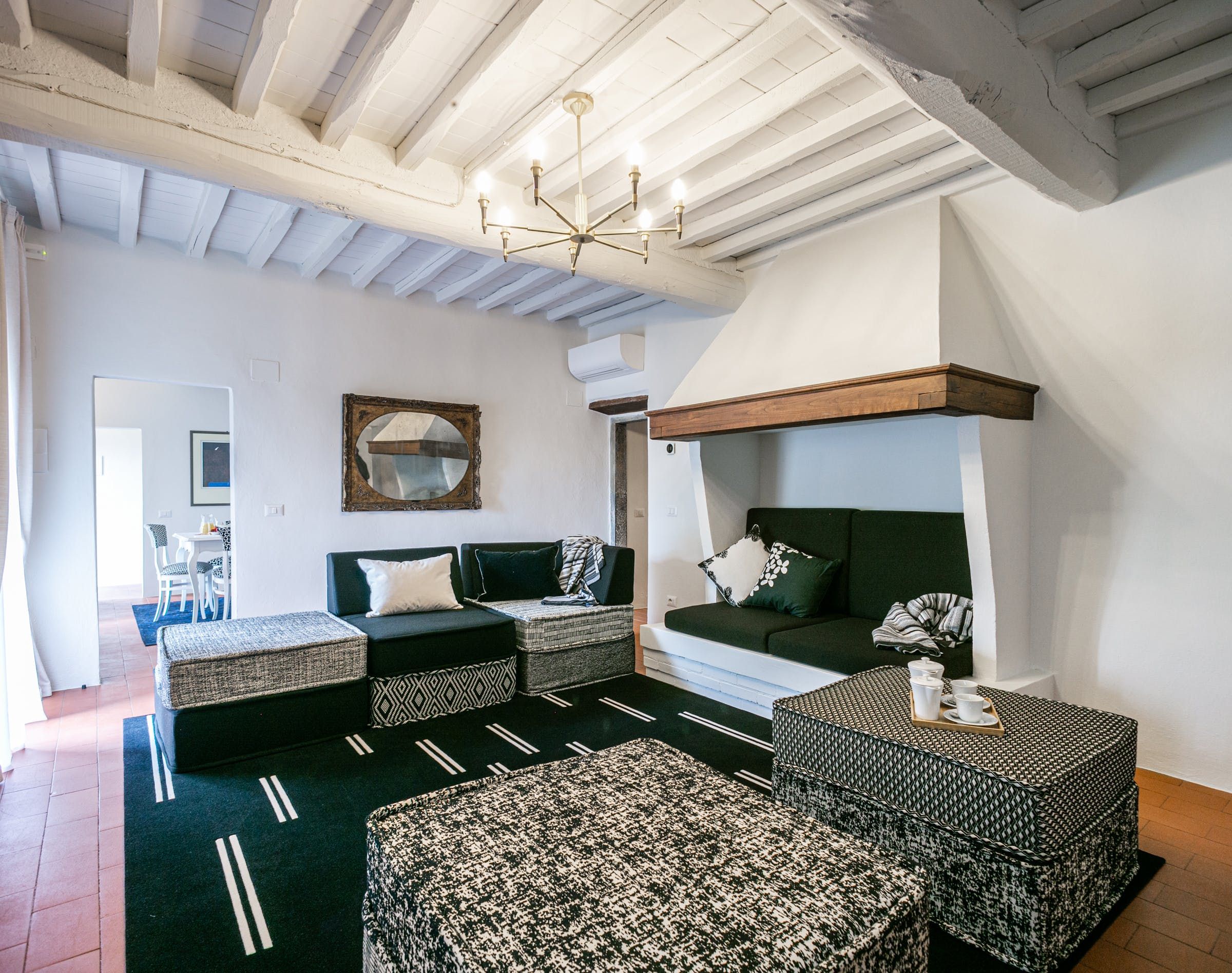 Inside, you'll find typical Tuscan features, such as traditional terracotta floors and a country-style kitchen. With its multiple living rooms, this home is perfect for a large family or group of friends. Off one of the dining areas is a snug that converts into a bedroom with an ensuite bathroom – ideal for guests with limited mobility. We adore the local travertine stone bathrooms throughout this villa too.