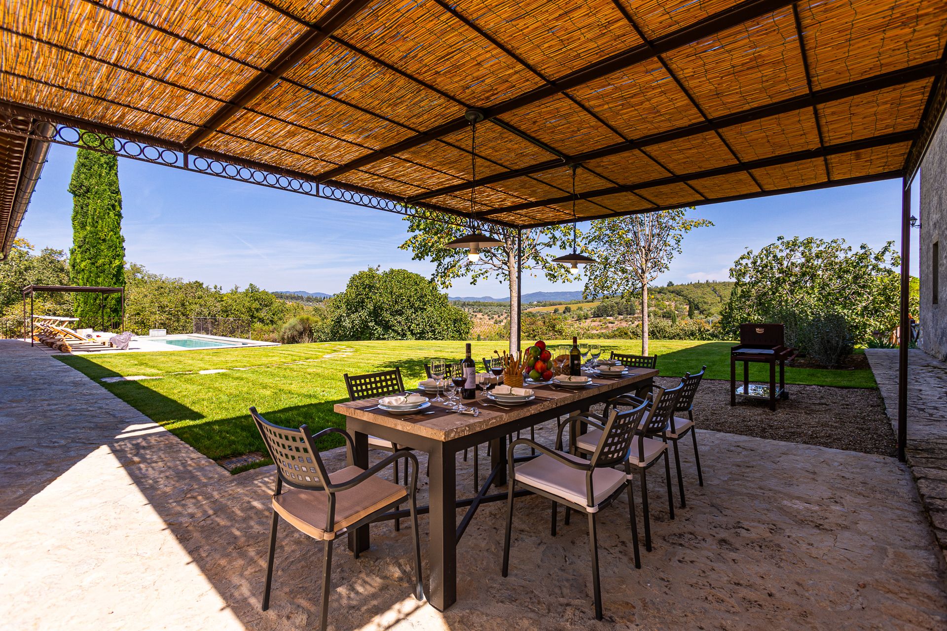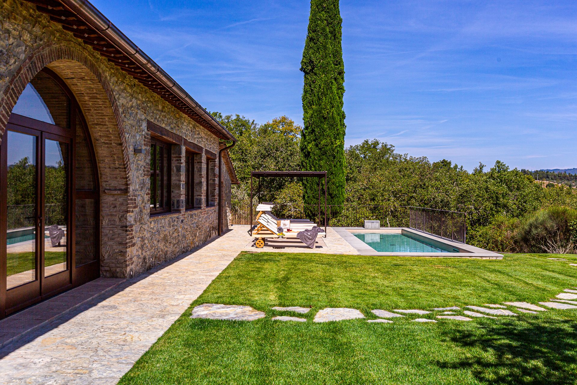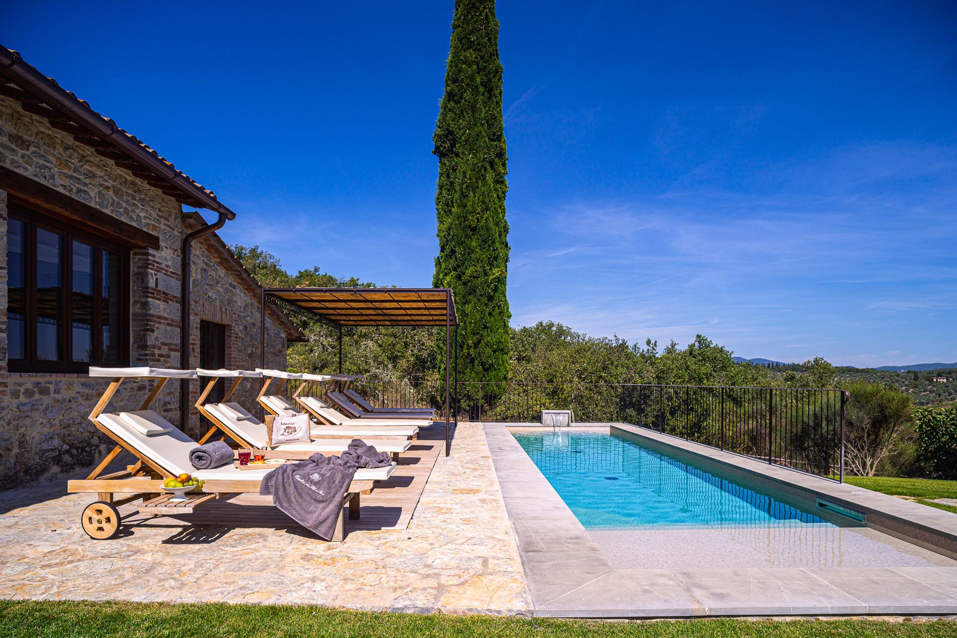 This beautiful home is a secluded base in Chianti. It’s surrounded by the hills and vineyards of the countryside and boasts 180-degree views. You can admire the vista from the private pool and the outdoor dining terrace, a splendid spot for an alfresco meal – speak to your host about hiring a private chef. Inside, you’ll find traditional Tuscan features including beamed ceilings and terracotta tiles. When you’re not lounging beside the pool or visiting nearby vineyards, you might drive forty minutes to Siena for a day trip.