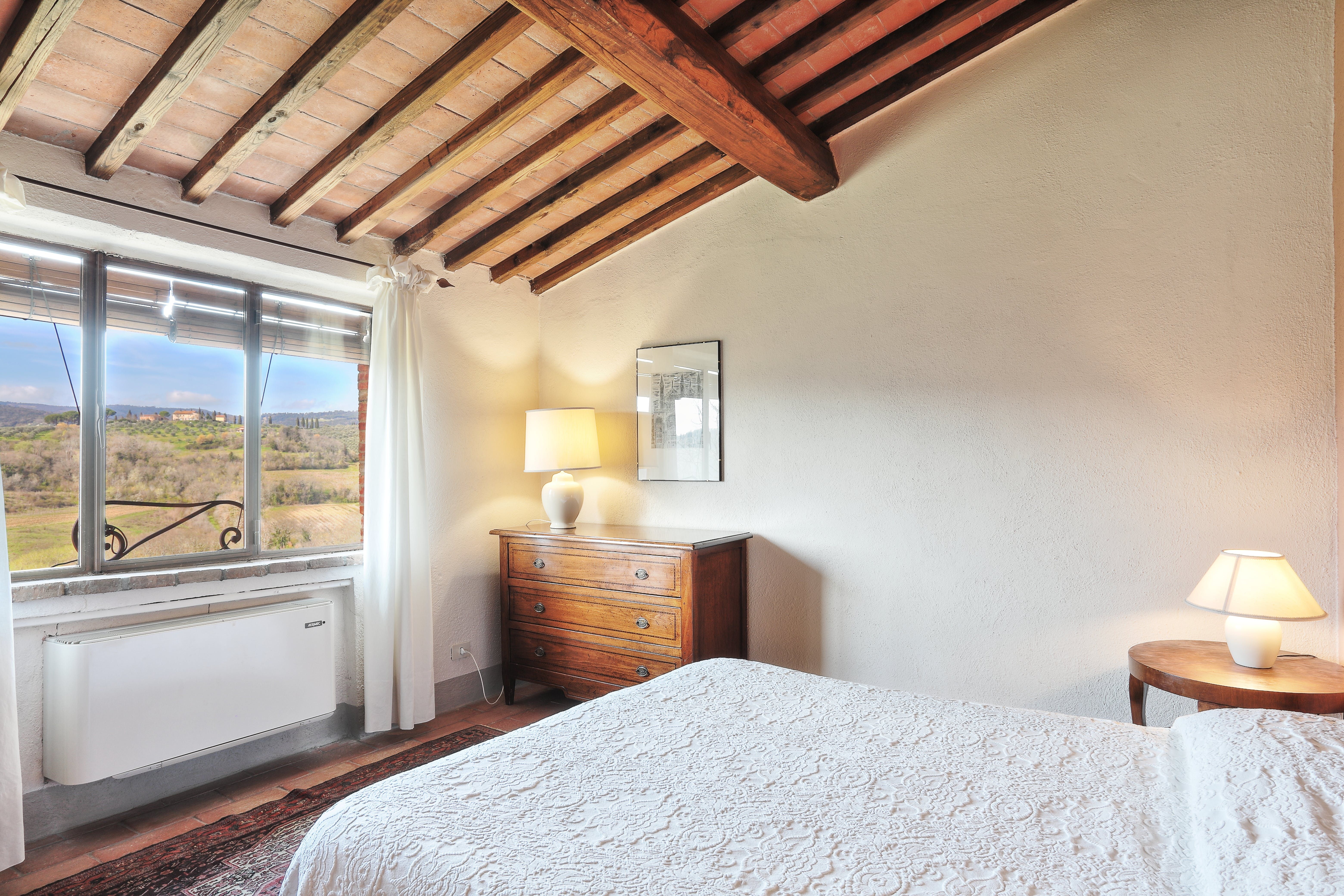 Set in the rolling Tuscan hillsides, with the towers of nearby San Gimignano in full view, the setting of this hilltop farmhouse is one-of-a-kind. Inside, the quietly elegant interiors allow the window's vistas to sing, and the mezzanine desk space will be handy for anyone planning to work. The other thing we love is the pool, and those established gardens and shady loggia for alfresco mealtimes are another perk. Location-wise, the medieval village of Certaldo Alto is a four-kilometre drive for evening meals and to pick up essentials. And when you're ready to hit the Tuscan city hotspots, jump on the train at Certaldo – you'll be there in no time.