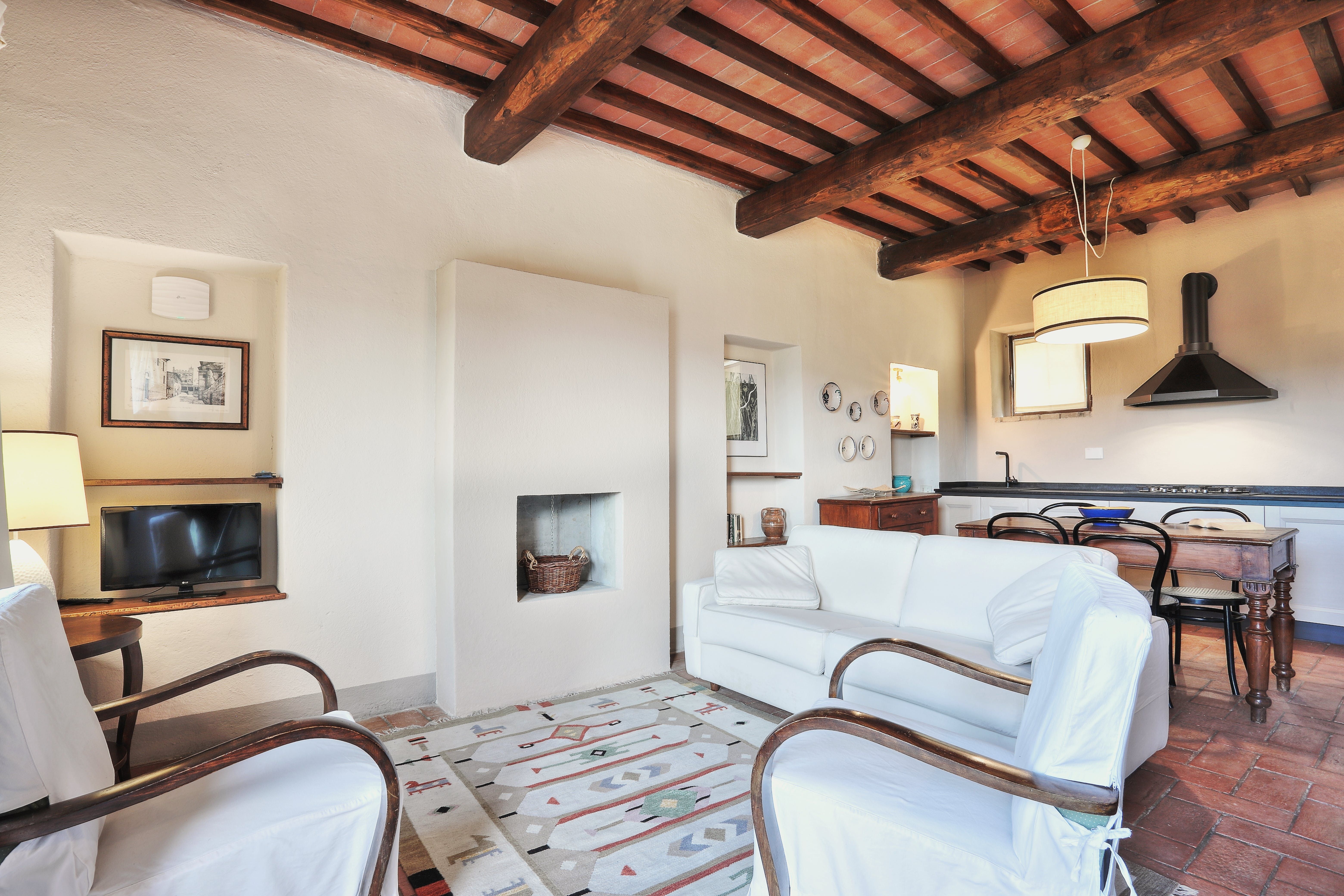If you’re seeking peace and quiet in the Tuscan countryside, this farmhouse surrounded by olive groves and vineyards is just the ticket. While the traditional interiors won’t be everyone’s cup of tea, we think they’re part of the charm. Outside, there’s a private garden overlooking the landscape, a shaded terrace for dining, and a small private pool. Although the rural location means having a car is essential here, you’re within easy driving distance of Certaldo and Emploi should you fancy embarking on a day trip.