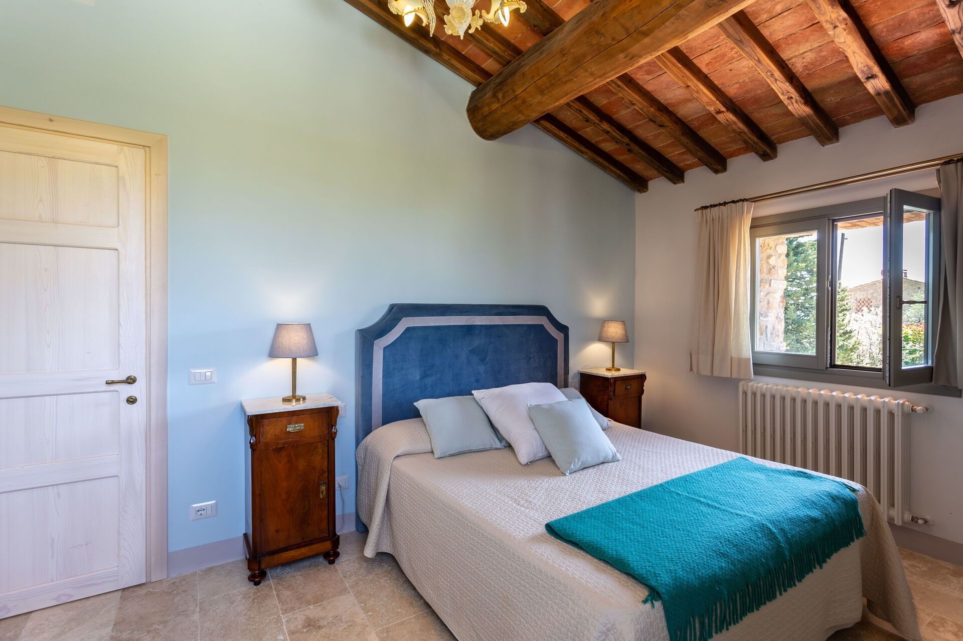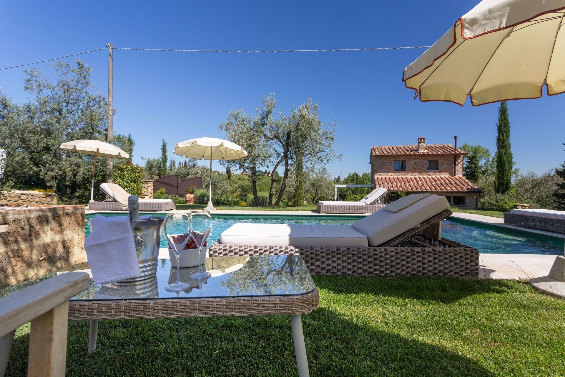 Set in the rolling countryside between Siena and Florence, this stone villa offers guests the opportunity to experience the ultimate Tuscan getaway. Recently, renovated, it blends rustic character and contemporary charm – from the antique accents to air-conditioned interiors. Spend lazy afternoons by the private pool, enjoy leisurely meals under the loggia, or book a chef or massage service when you feel like being pampered. The small fenced garden provides privac, while the surrounding hills invite exploration of nearby Certaldo, San Gimignano, and Chianti’s vineyards. A welcoming base for families or friends seeking both relaxation and authentic Tuscan life.