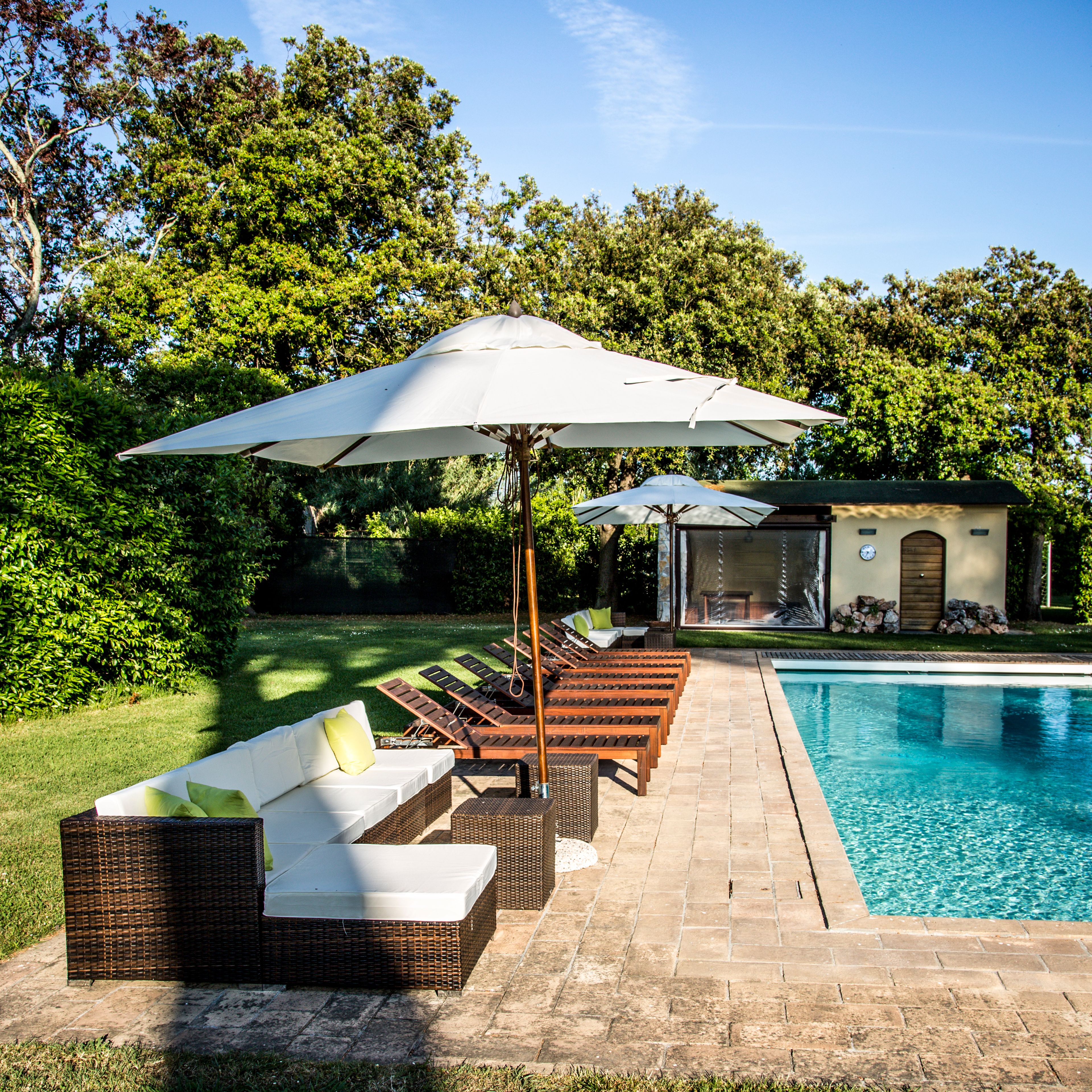 The glorious outdoor space matches whatever energy you want to bring on your Tuscan adventure. For lazy days underneath the summer sun, lounge around the pool with a glass of wine or cool beer. When you need a refreshing break from the heat, take a dip in the pool and soak in the stunning surroundings.