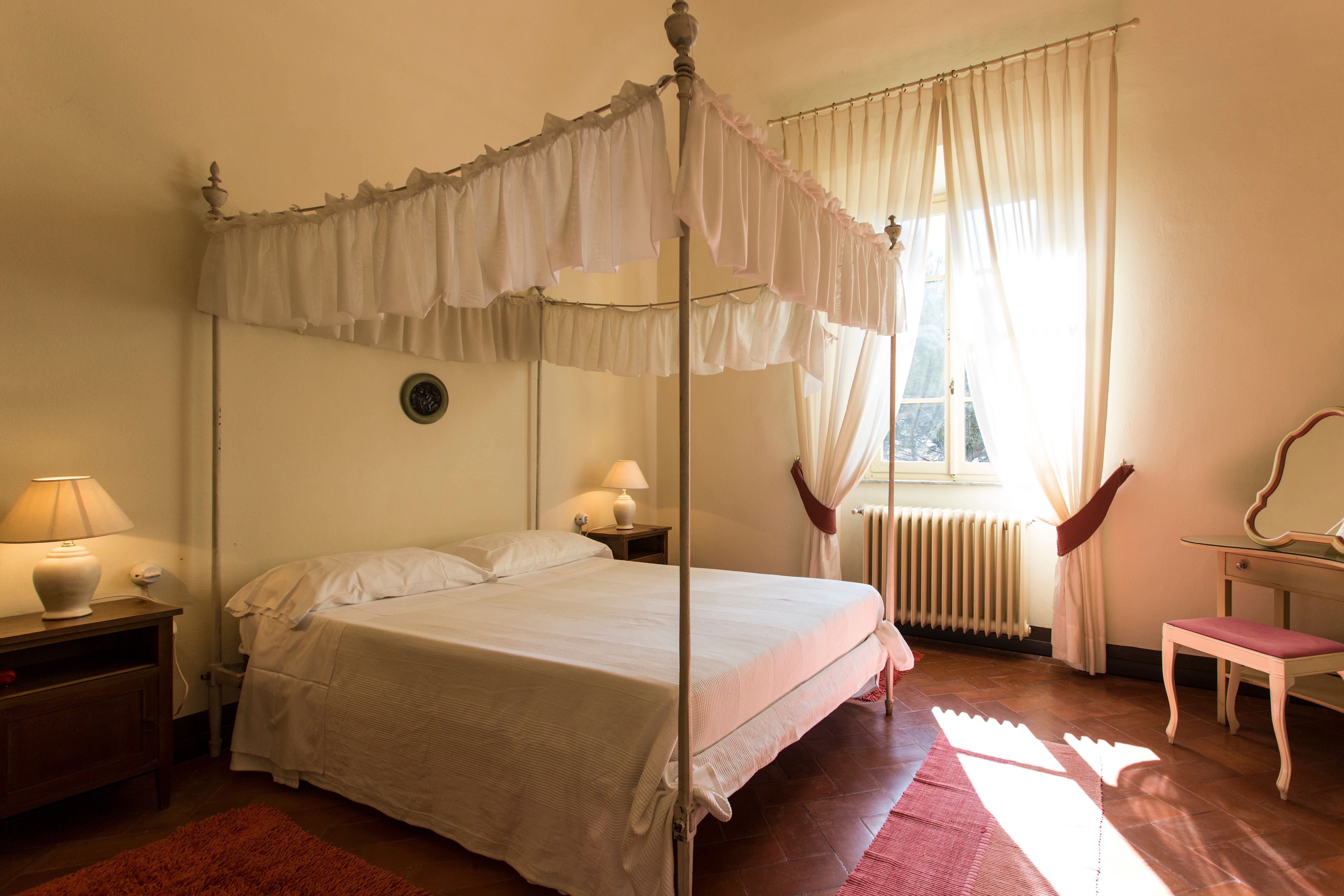 The light yellow walls of the mansion, punctuated by deep green windows, looks out onto one of the most beautiful gardens in Tuscany. The fresh greenery expands to 6000 square metres, exuding pure luxury in every inch. The grandeur of the home and size of the garden is perfect for large groups of friends or families.