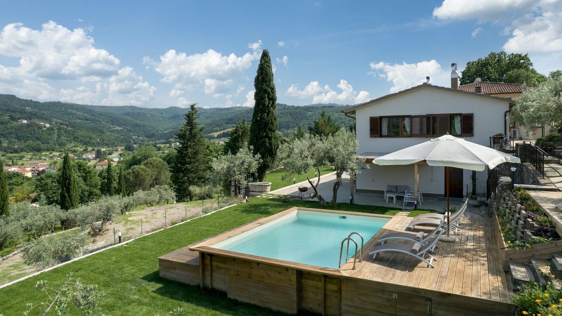 Giving way to sweeping views of the Arezzo hills, this villa's outdoor space is undoubtedly the main draw. With a swimming pool and ample seating for everything from alfresco dining to sunbathing, it's made for sun worshippers. Little ones will also adore the green back garden where they can let their imaginations and legs run free. Though it feels hard to beat the panoramic landscape, it does try. Starting with the indoors hot tub and sauna, where a large bi-fold door connects you to the outdoors. We also like the mix of modern and rustic elements here. As for location, you're a short drive from Arezzo.