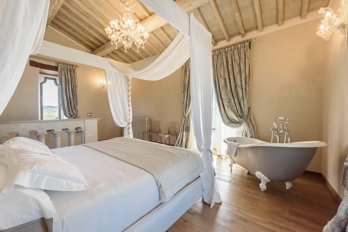 There are few more picturesque places in the world than the Tuscan countryside and this gorgeous stone villa in the Chianti hills is the ideal home from which to admire it in all its splendour. Guests will be treated to stunning views of the unspoilt landscape, regardless if they're reclining in a lounger by the 6x12m swimming pool, sitting in the huge covered alfresco dining area or wandering through the large garden. The interior is just as attention-worthy, too. Split into four separate apartments with their own kitchen and living rooms, there's terracotta tiling and wooden ceiling beams throughout that lend a rustic feel, but there are a few modern additions that are sure to be appreciated — not least the private spa complete with a sauna and a hot tub. It's the sort of property where relaxation is the order of the day, but if you ever fancy an excursion somewhere, the cities of Florence and Siena can both be reached in the car in an hour or so.