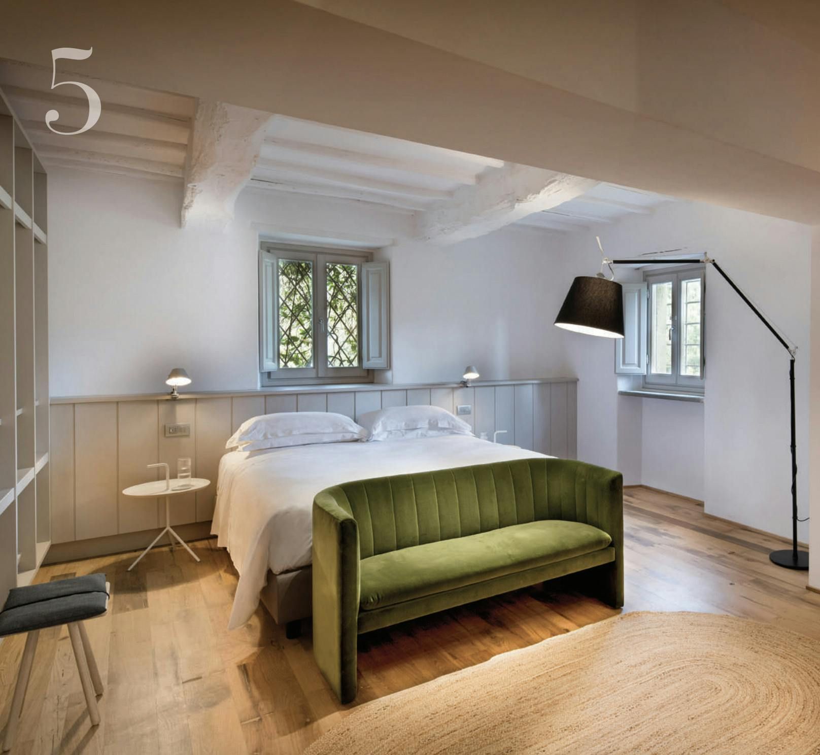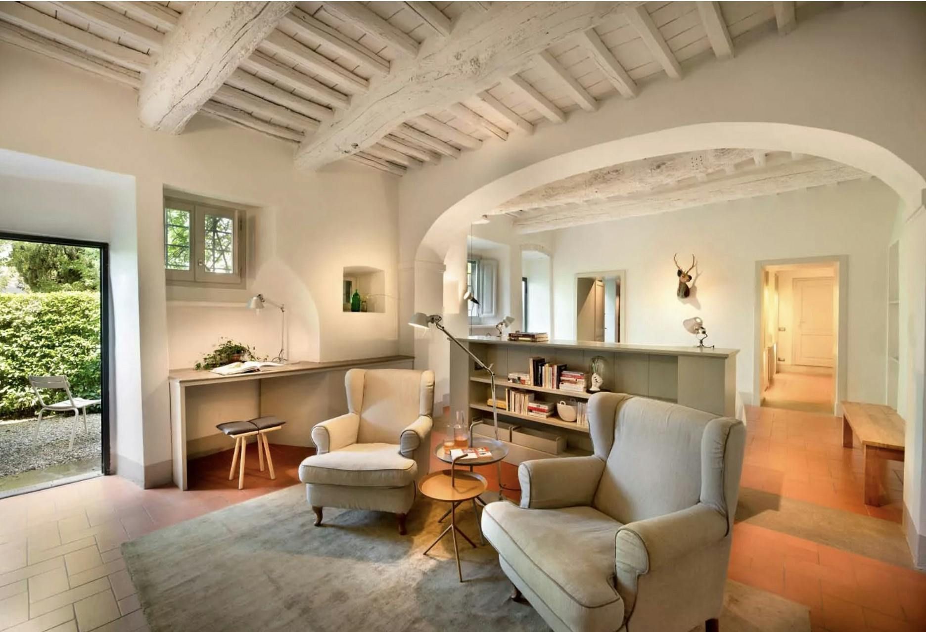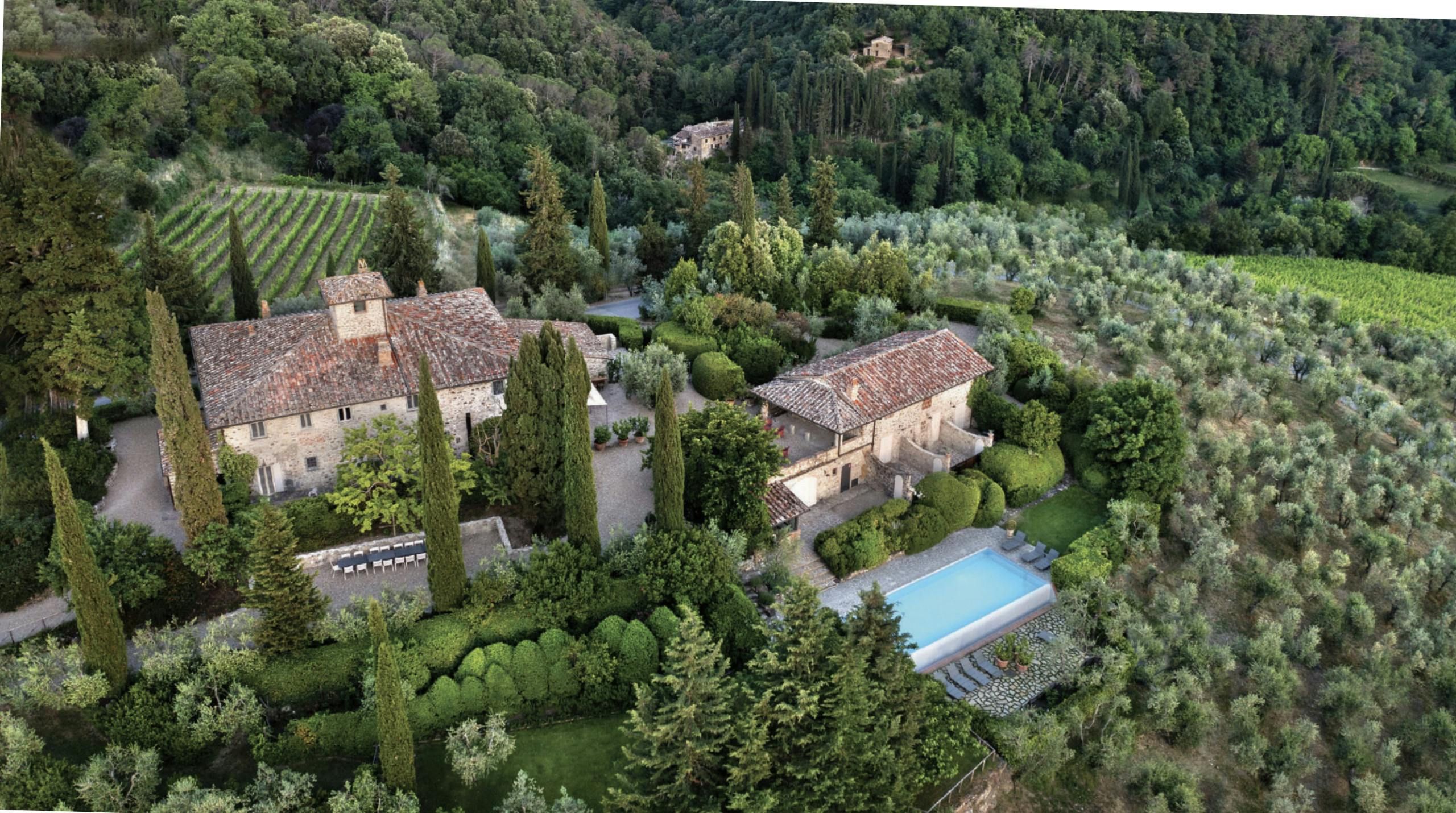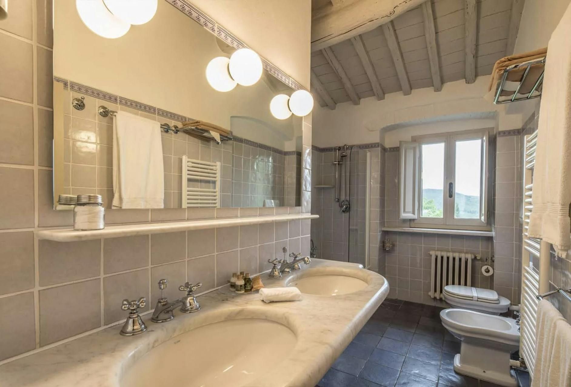 This stunning home boasts a wonderful location in the Chianti Hills between forests, streams, and vineyards. It’s halfway between Siena and Florence, and a ten-minute drive to Greve in Chianti. The villa is on an organic farm on an estate with lush gardens, olive groves, and a panoramic terrace shaded by an ancient mulberry tree. It’s an idyllic setting for a memorable getaway, perfect for a large group – this home is spread between two houses.