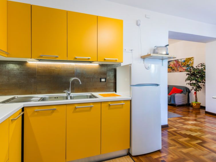 "Quiet place", 3-room apartment 80 m2, on the ground floor. Spacious, fully renovated, practical and modern furnishings: open living/dining room with dining table and air conditioning. 1 double bedroom with air conditioning. 1 room with 3 beds (80 cm), air conditioning. Open kitchen (Gas stove, 4 gas rings, toaster, kettle, electric coffee machine).