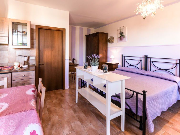 "Monolocale - Ranch Hotel", 1-room apartment 31 m2, on the ground floor. Practical and cosy furnishings: living/sleeping room with 1 double bed, dining table and TV. Exit to the terrace. Open kitchen (4 gas rings, toaster, electric coffee machine). Shower/bidet/WC. Heating. Terrace roofed.