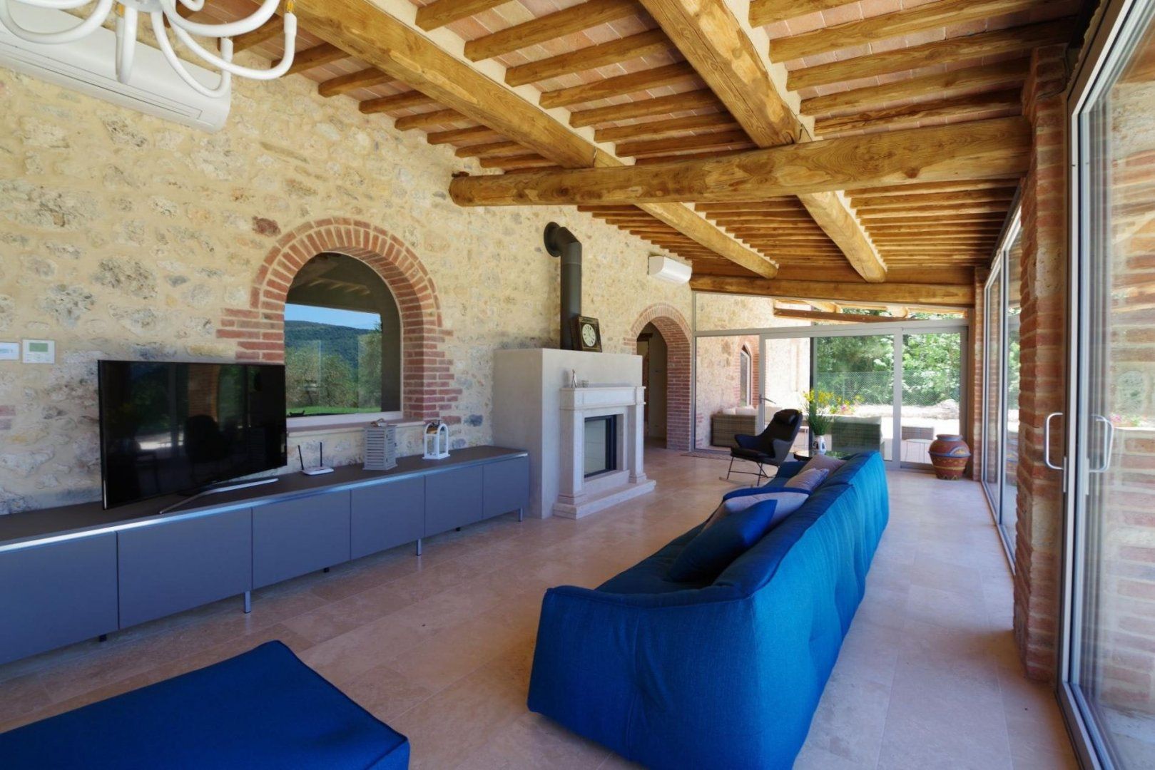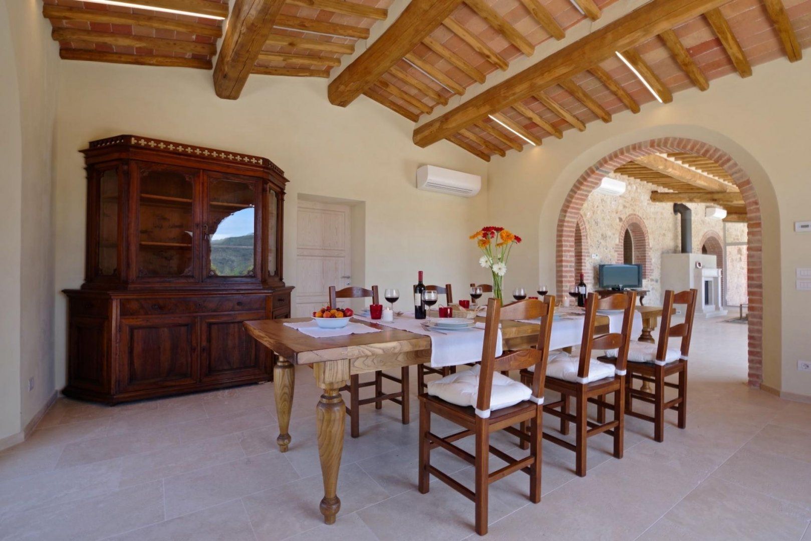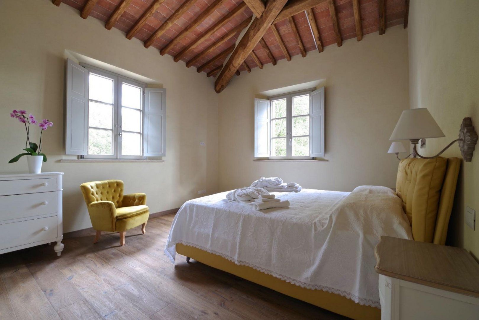 Formerly an olive mill, this Tuscan villa combines rustic charm with modern design elements. Just outside the small hamlet of Iesa, the villa is nestled in the serene Tuscan hills, surrounded by verdant countryside. Downstairs you will find the original stone olive mill, alongside chestnut beams, exposed stone, and terracotta tiling across the house. This preserved charm is compounded by contemporary bathrooms, and a sunroom with floor to ceiling windows, where you can admire the oil painting of a view. On cooler nights, gather here with a drink in hand for a movie or to play some music. Outside there is a table which seats ten, for al fresco dinners before a spot of stargazing.