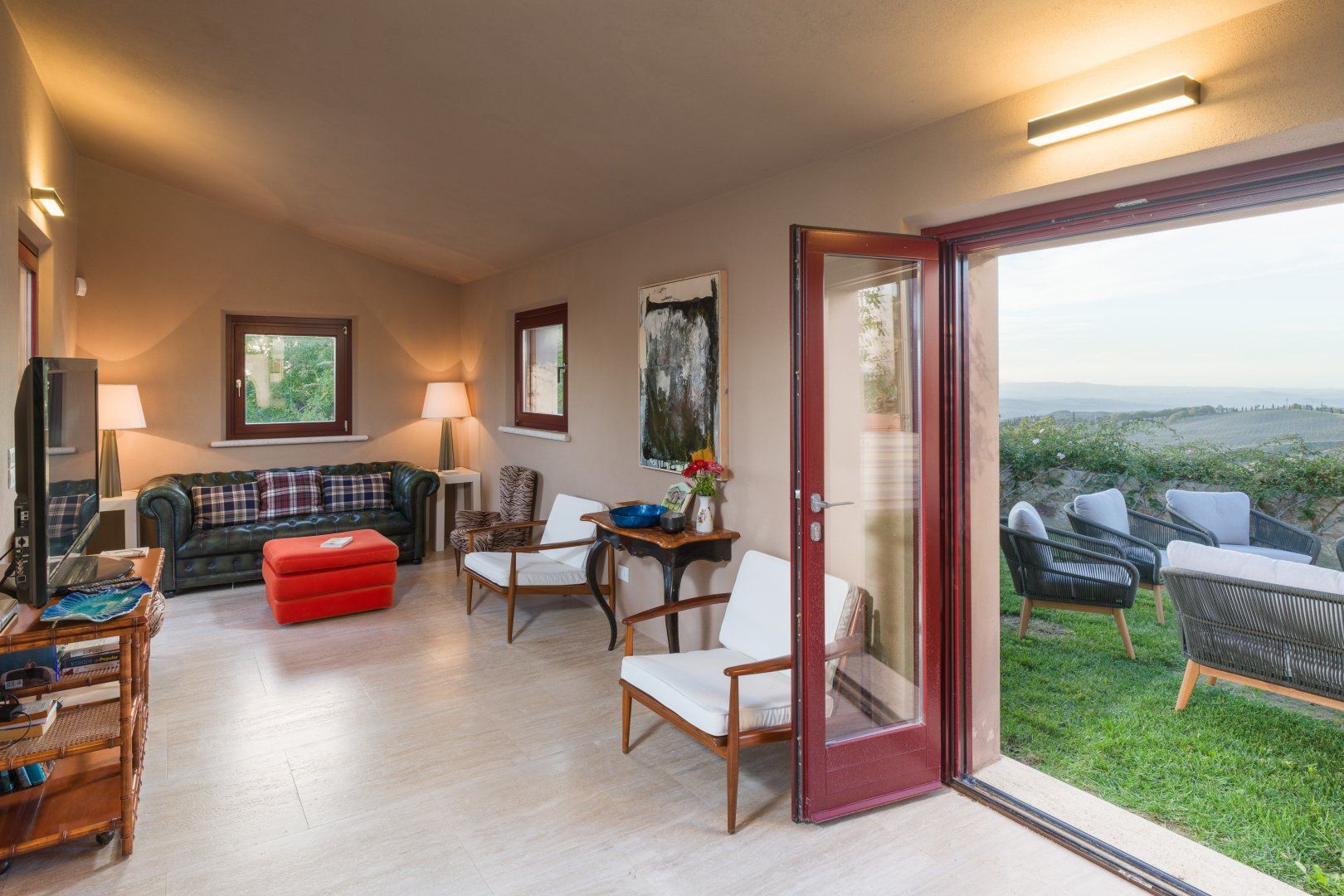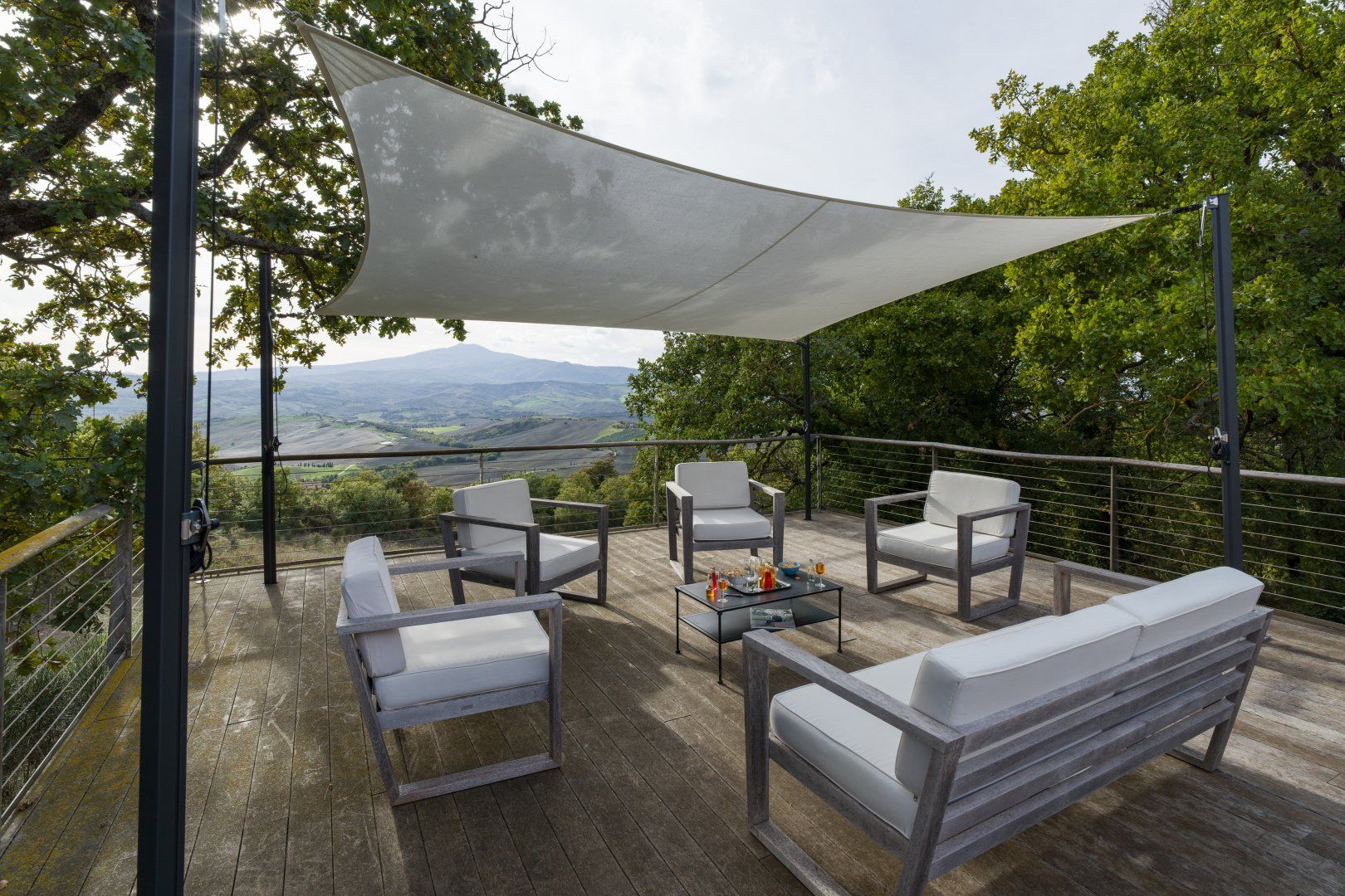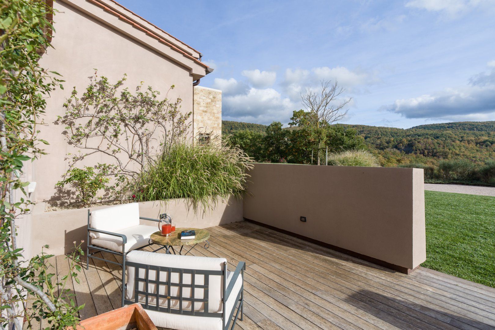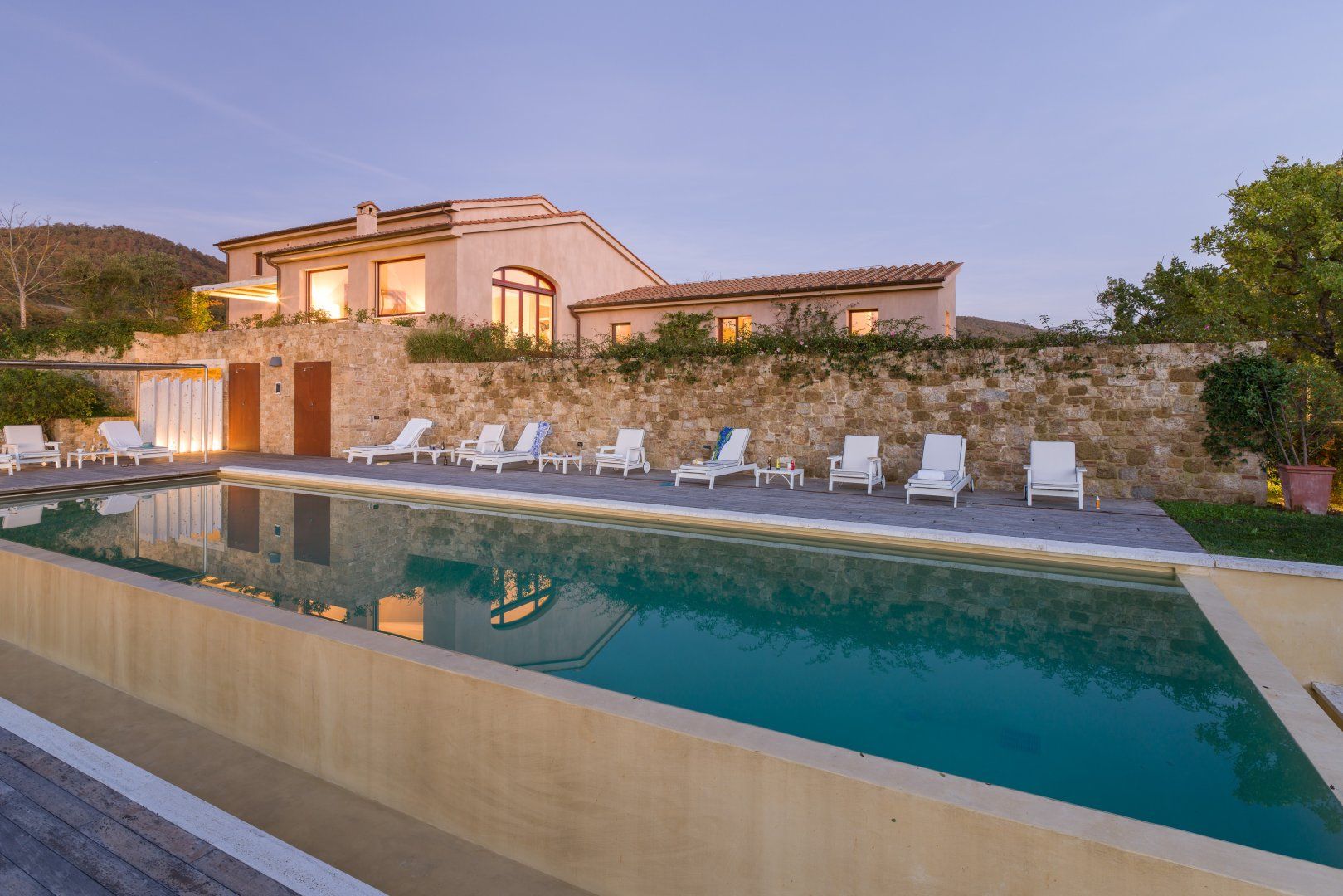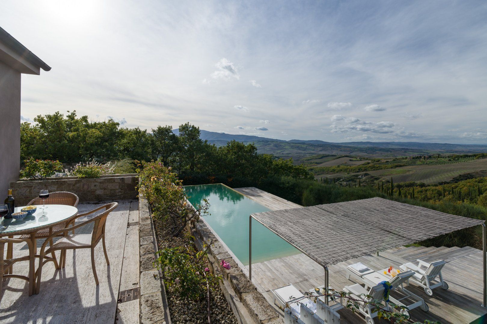 You can't beat the views of the beautiful Val D'Orcia, itself a UNESCO World Heritage Site, from this Tuscan farmhouse lying in the Siena Province on a private two-acre estate. Tear yourself away from the vistas, and you'll find a deft renovation, combining contemporary interiors and historic charm. An excellent choice for a large group of friends or family, there's plenty of space to spill out and feel at home here. Cool off from the Tuscan sun in the infinity pool. Put to use the vast, chef-worthy kitchen (we're talking two dishwashers, two ovens, and some) for a big dinner party – a private chef is bookable for fine dining. Or keep things easy and fire up the barbecue or pizza oven outside as breath-taking views of the valley spread out before you – best seen beneath the pergola at sunset with a glass of something chilled. And on chiller nights, hunker down beside the fireplace with a good book – there are two living rooms to choose from. When it's time to lay your head, hop in the home's elevator and take your pick from the many bedrooms, boasting king-sized beds and separate bathrooms. We'll let you decide who lucks out on that ground floor suite with bi-folds opening onto the lawned gardens. Should you ever wish to leave this idyll, you'll find you're in an excellent base to uncover Tuscany's vineyards and historic villages, starting in Sarteano, just a ten-minute drive away. With its tempting trattorias and beguiling historic charms, you'll be off to a flying start.
