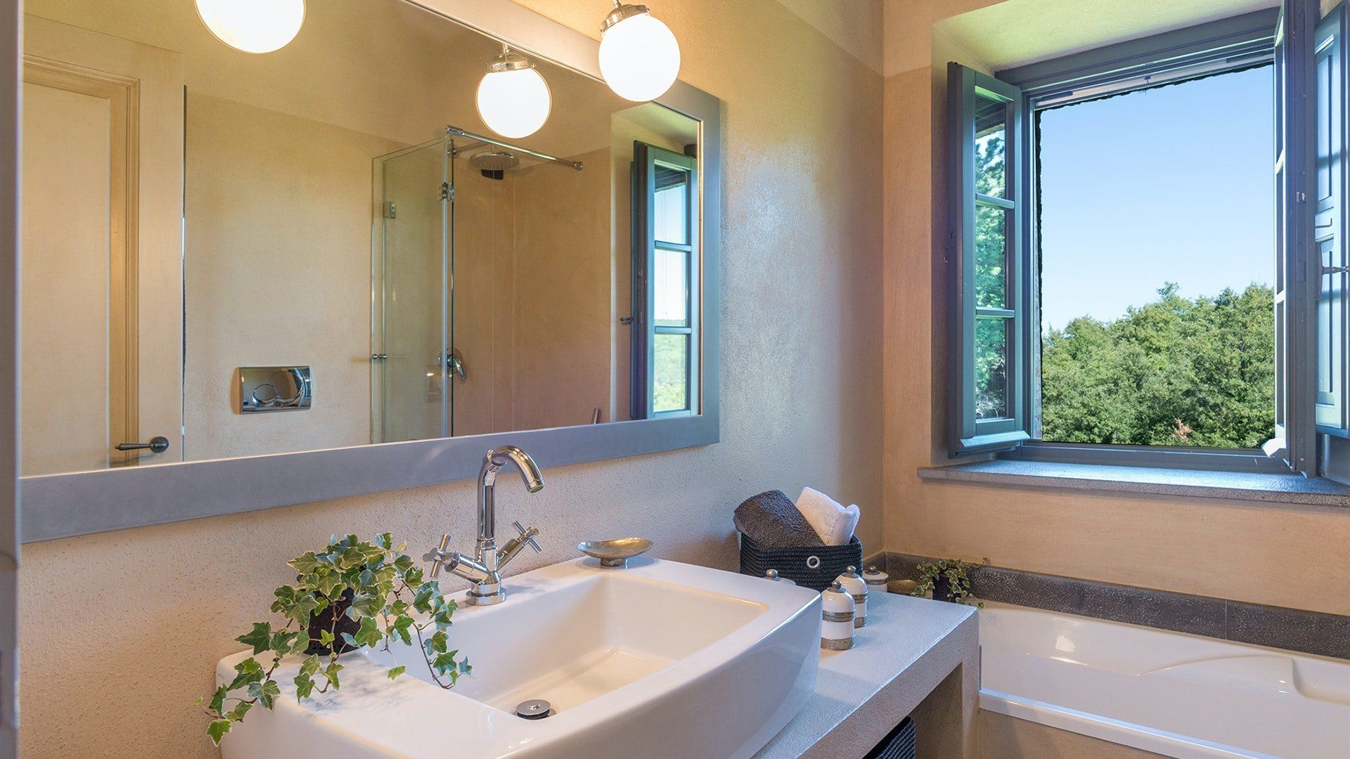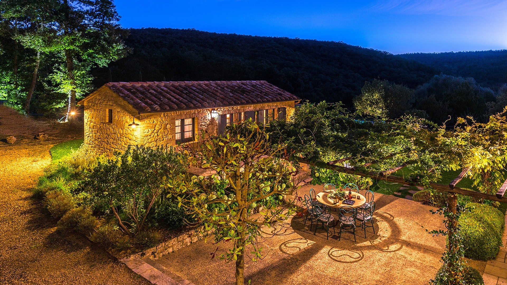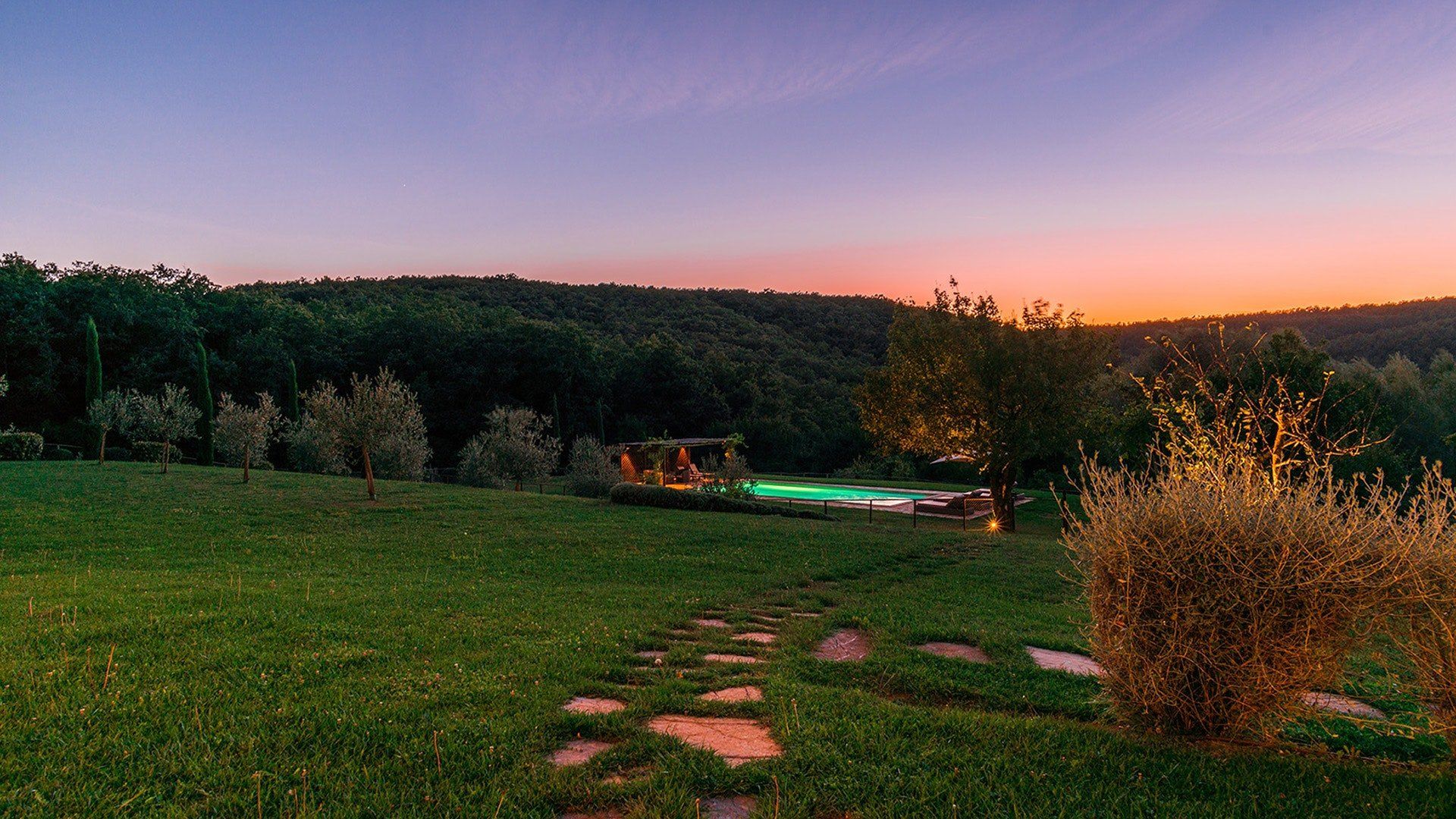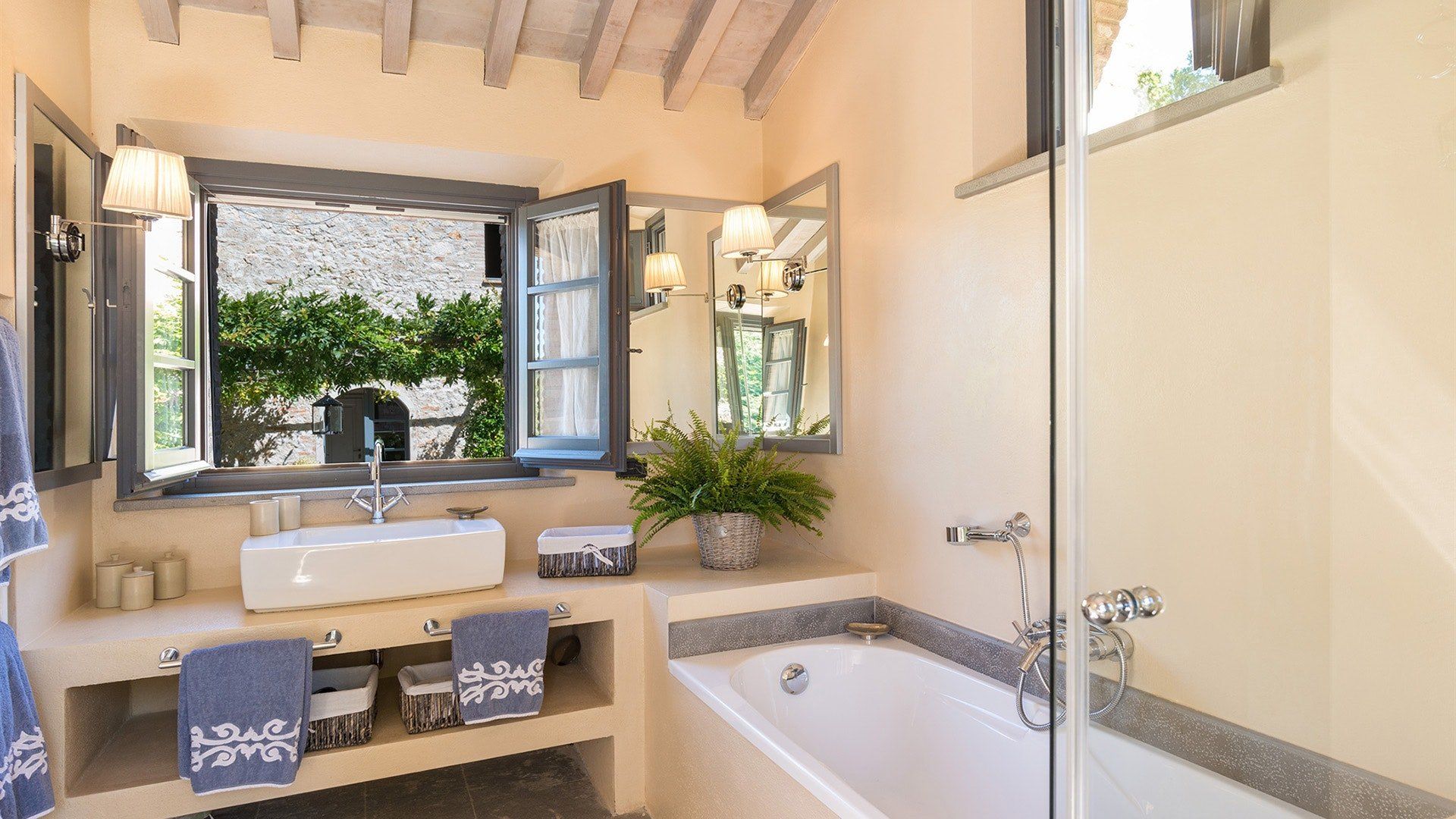 Just outside the charming village of Sarteano, this cosy villa is surrounded by woodland and rolling Tuscan countryside. We love the arched window looking out over the garden – the perfect spot to curl up on a plushy sofa with a good book. To cool down, take a long swim in the pool before drying off for an aperitif on the terrace, just one of the many outdoor lounging areas. Indulge in long lunches under the shade of the greenery before a round of table tennis on the lawn. If you’re looking to add a touch of luxury to your holiday, the spa resorts of Chianciano Terme, Bagno Vignoni, and Bagni San Filippo are just half an hour away. Wine connoisseurs might enjoy a trip to Montepulciano to wash down a cheese tasting in Pienza. Art lovers will no doubt take the hour’s drive to Siena or Arezzo for a day drip. No matter what little adventures you decide to go on, be sure to stop and smell the flowers in the garden and feel the soft grass between your toes.