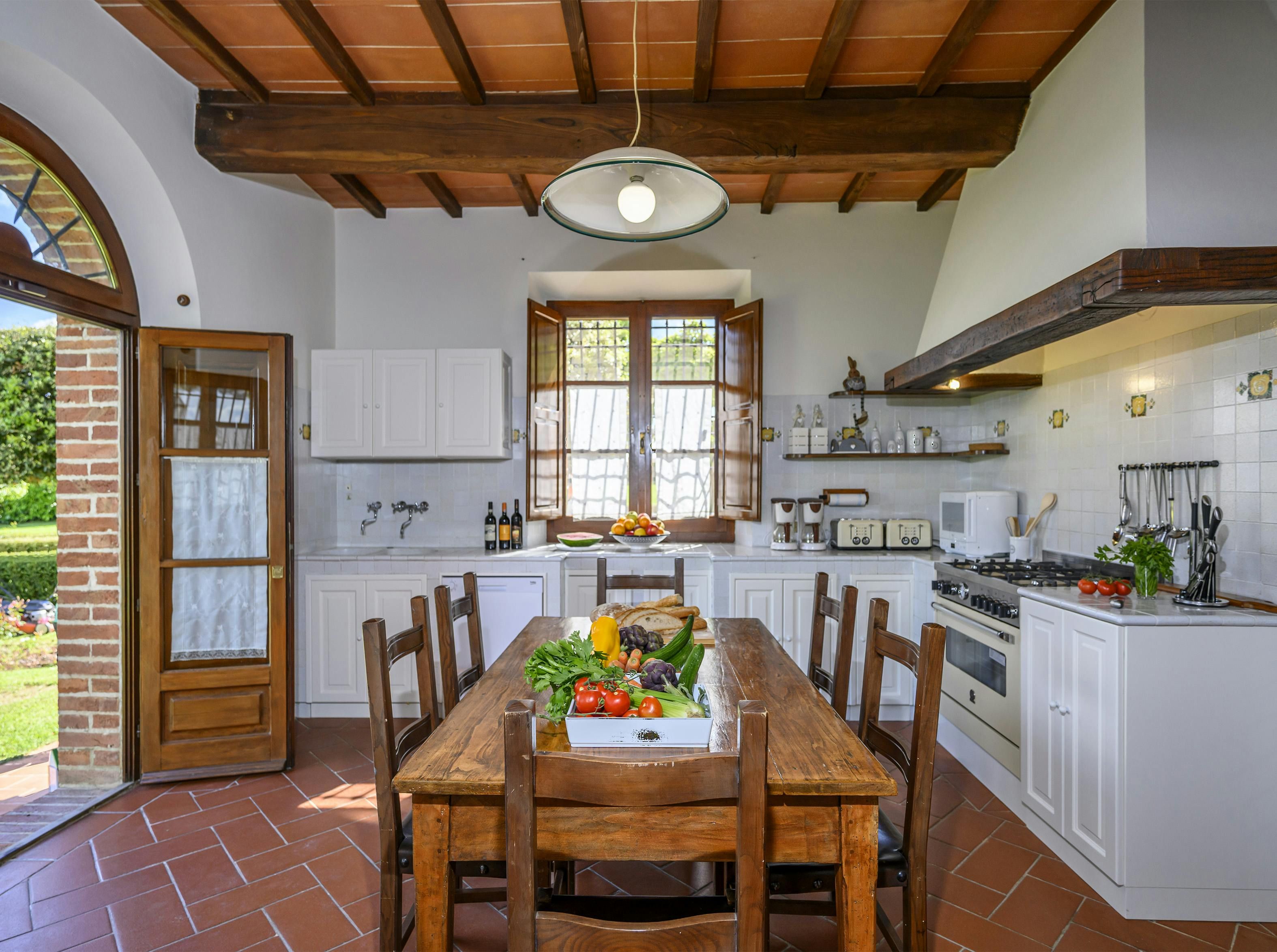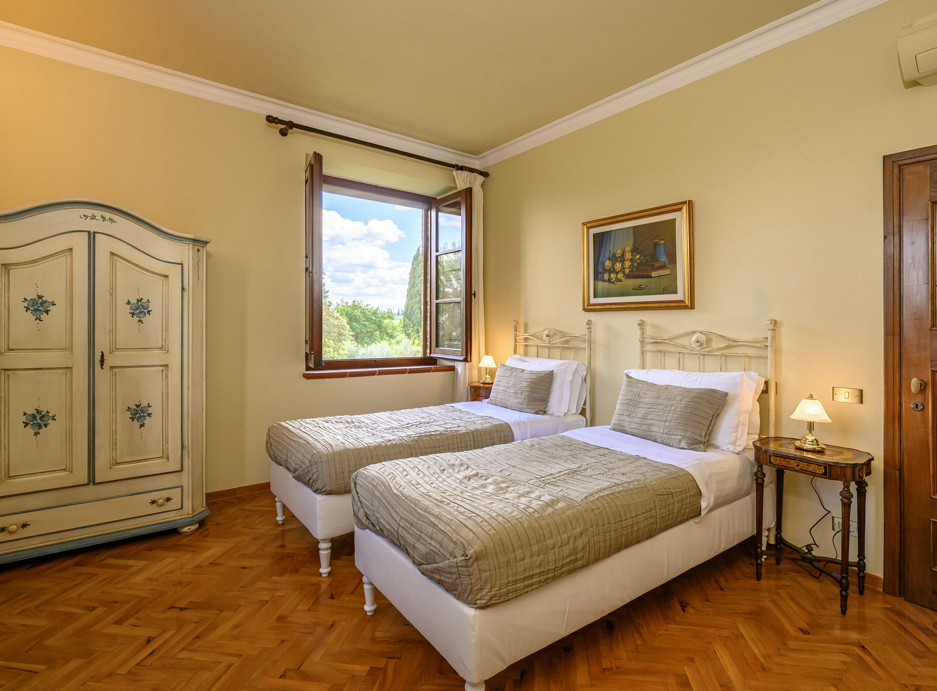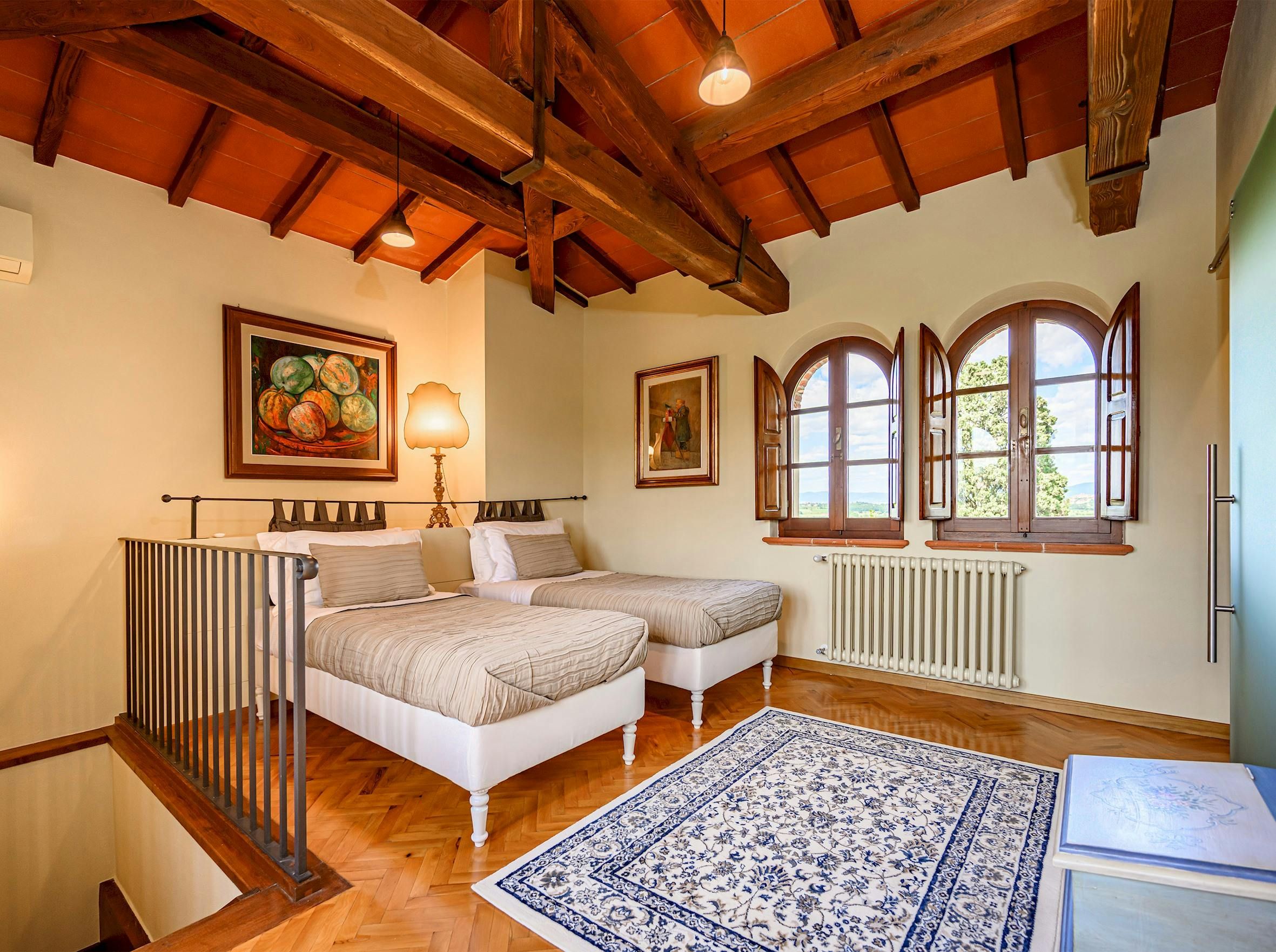 This Tuscan farmhouse dates back to the 16th century. It’s been restored to maintain its historic charm, with a Leopoldine tower and the original stone and terracotta. The villa and annex – you won’t all be sleeping under the same roof here – sit within 2.6 hectares of parkland in the Tuscan countryside. Admire views of the town of Sinalunga from beside the swimming pool and in the oak-, olive-, and vine-filled garden. There’s an alfresco dining area in the shade of a pergola, with a barbecue and wood-fired stove to cook on. You can easily visit Montepulciano, Siena, and Florence from this rural Tuscan base.