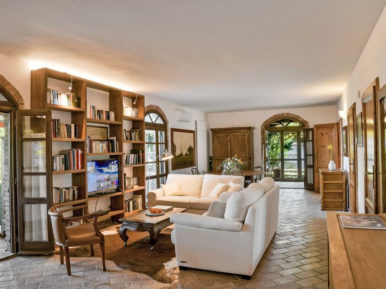 10-room house 300 m2 on 2 levels. Spacious, comfortable and tasteful furnishings: large living room with dining table and TV. Exit to the garden. Studio. Exit to the garden. 2 double bedrooms. 1 double bedroom. Exit to the garden. Kitchen (oven, dishwasher, Gas stove, 4 gas rings, toaster, kettle, microwave, electric coffee machine).