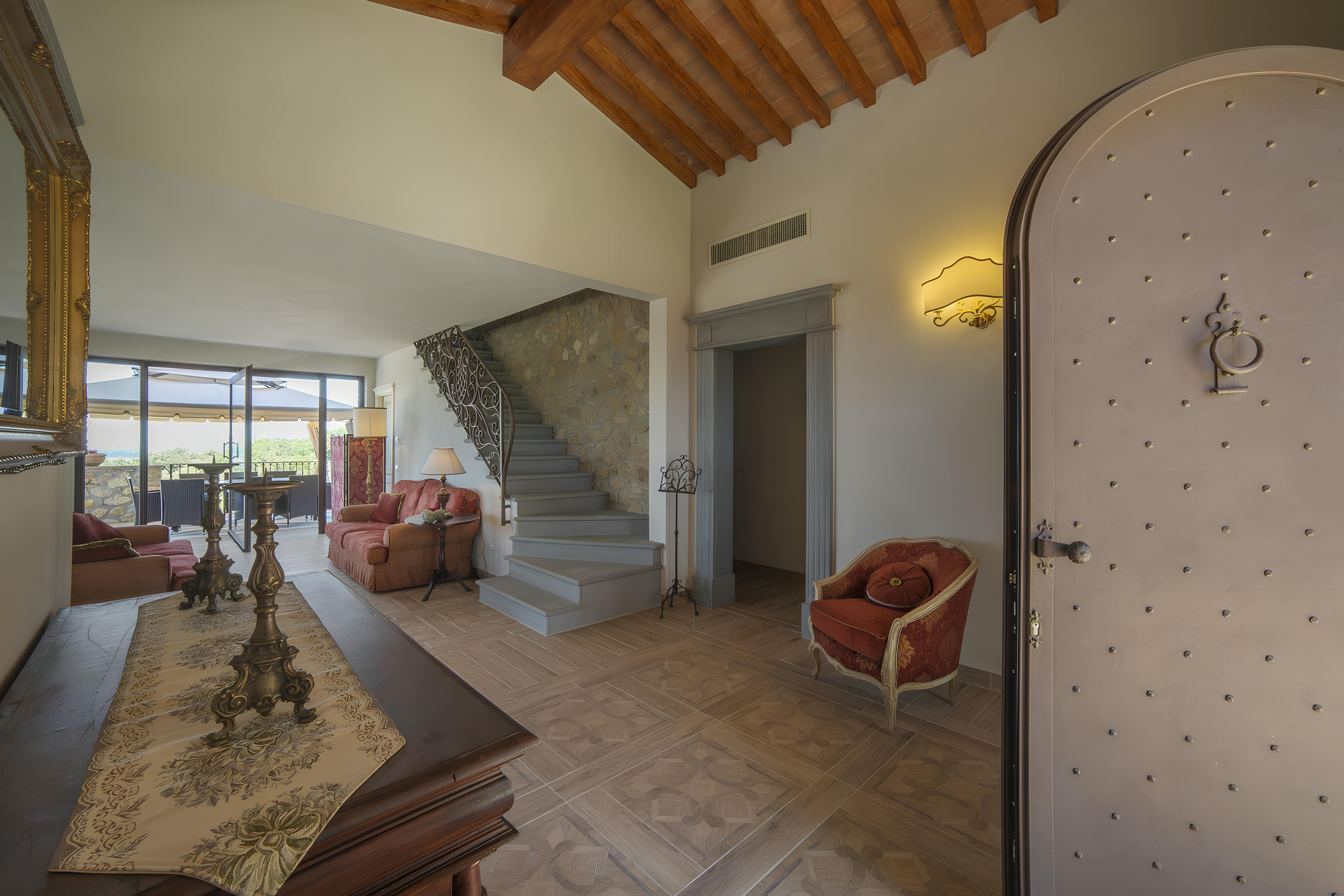 Amid scenic landscapes on the Tuscan hillside, the façade of this home resembles a countryside castle. Meanwhile, the interiors and amenities are just as impressive. With huge expansive terraces and a private swimming pool, taking in views across the valley can be enjoyed at every opportunity. Inside, antique furniture lends a historic lived-in atmosphere that, despite a traditional aesthetic, offers comfort and practicality. From here, you can easily walk into the village of Lano. Meanwhile, the picturesque walled mountain town of Volterra is just over half an hour away by car.